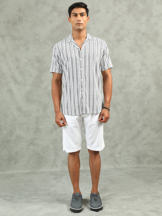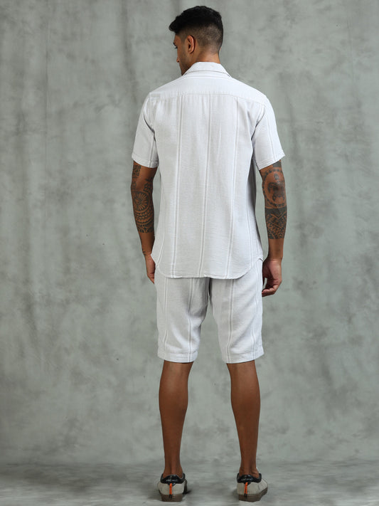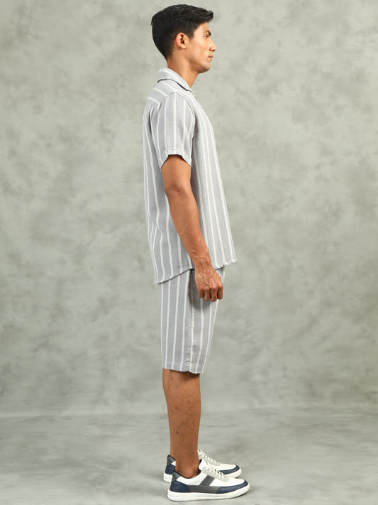 Striped Grey Regular Fit Knee-Length Casual Co-ord Set