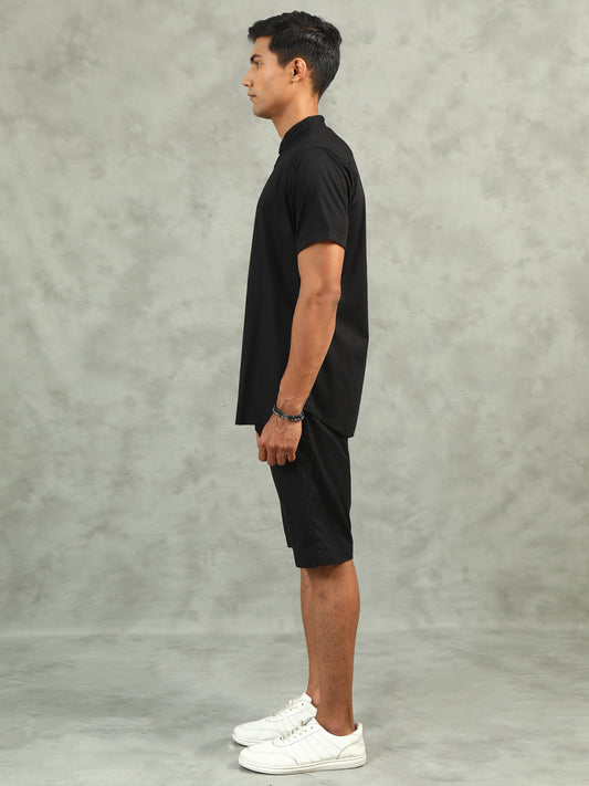 Black Regular Fit Half Sleeve Solid Casual Co-ord Sets