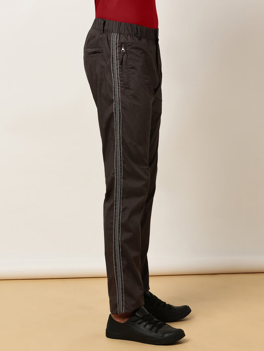 Elasticated Waist Zip Pocket Stretchable Grey Lounge Pants with Side Tape