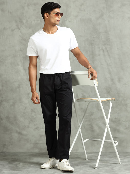 Elasticated Waist Zip Pocket Stretchable Black Lounge Pants