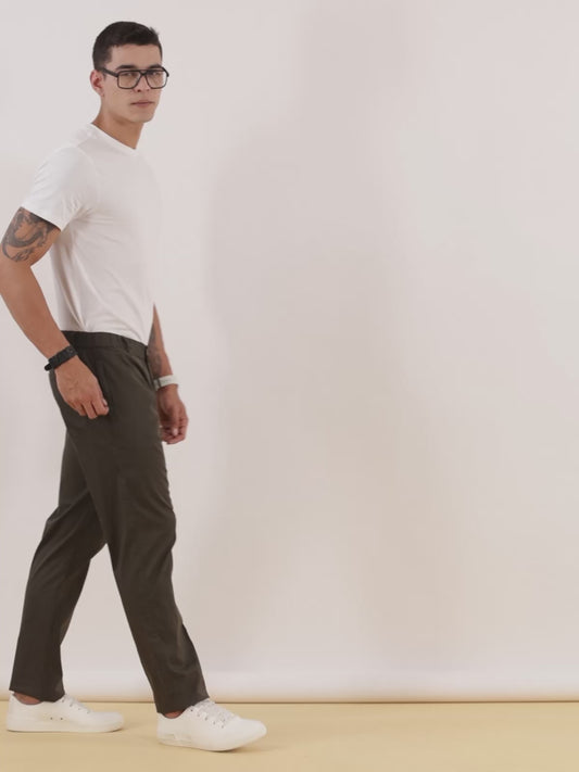 Elasticated Waist Zip Pocket Stretchable Olive Lounge Pants