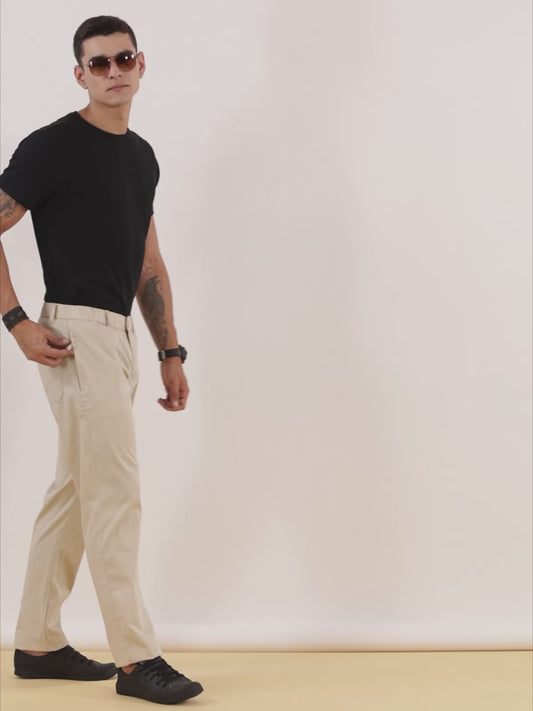 Beige Elasticated Waist Stretchable Jogger Lounge Pants With Side Tape
