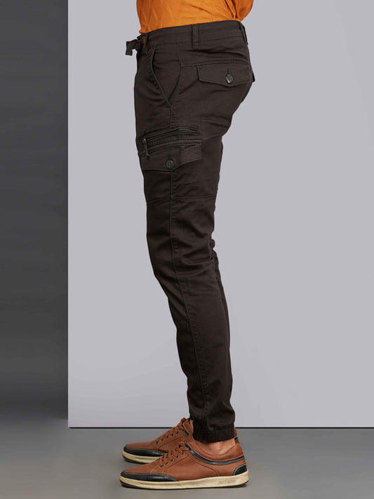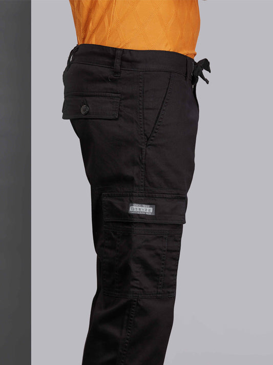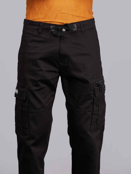 Zip Pocket Stretchable Black Cargo