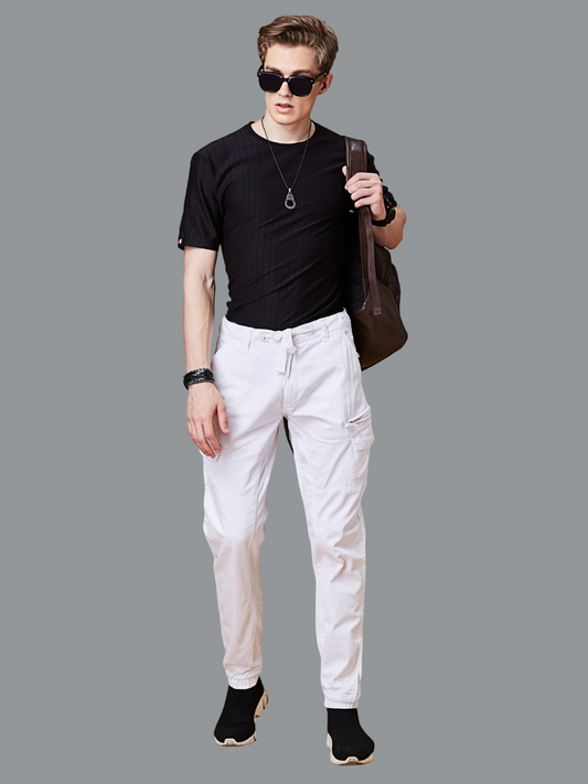 Multi Pocket Stretchable White Cargo