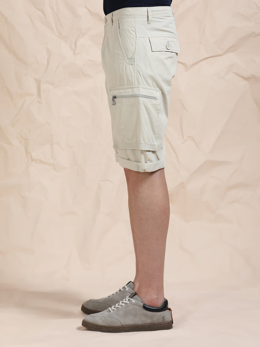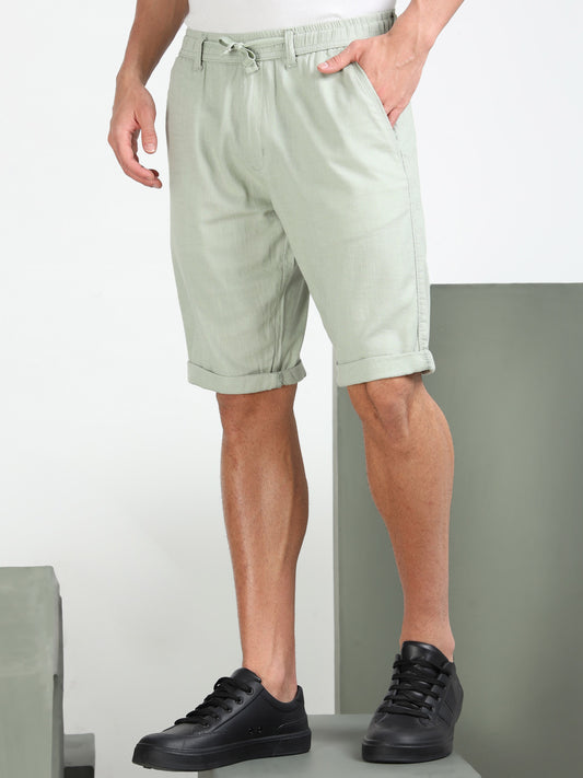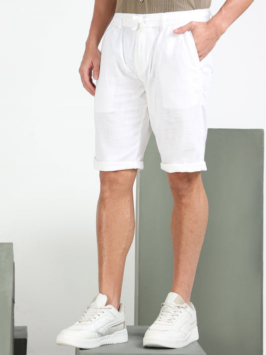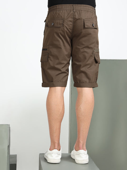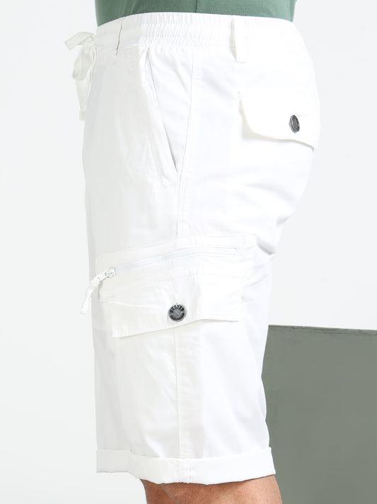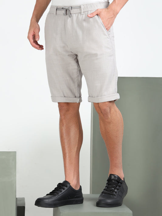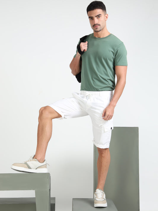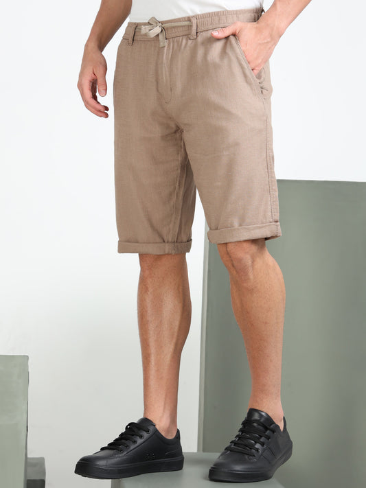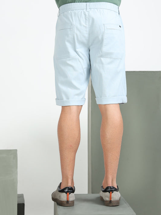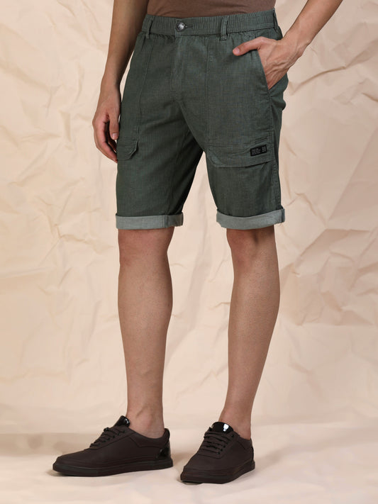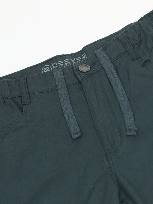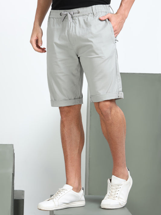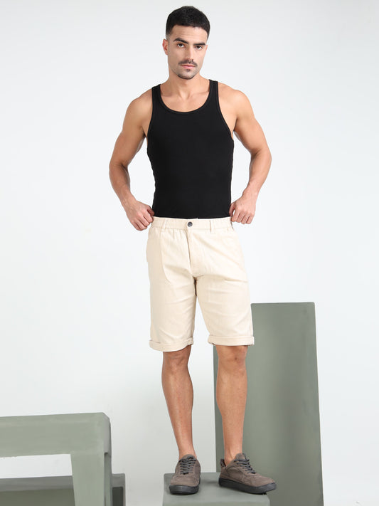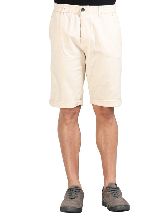 Men’s Casual Cotton Lycra Solid Shorts | Regular Fit, Elasticated Waistband with Button Closure, 3 Pockets