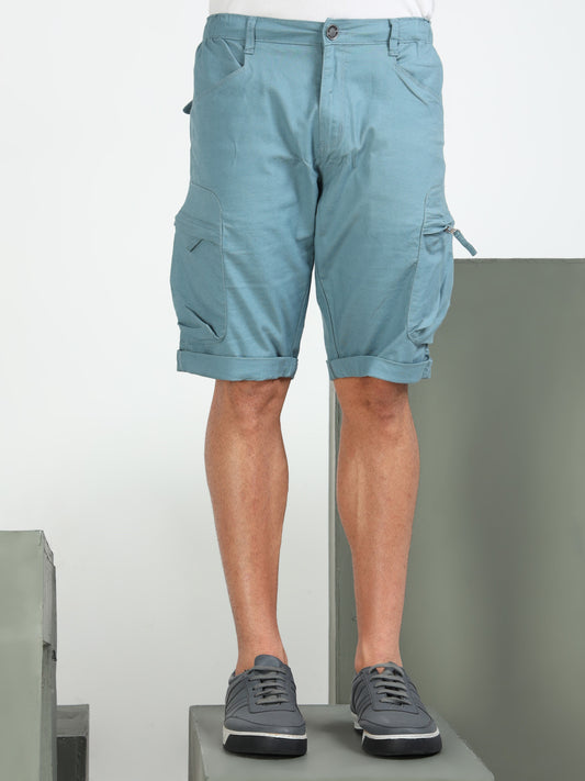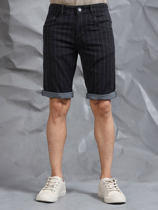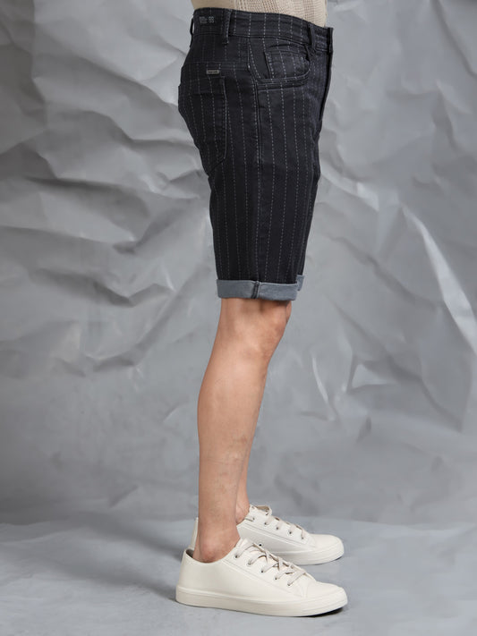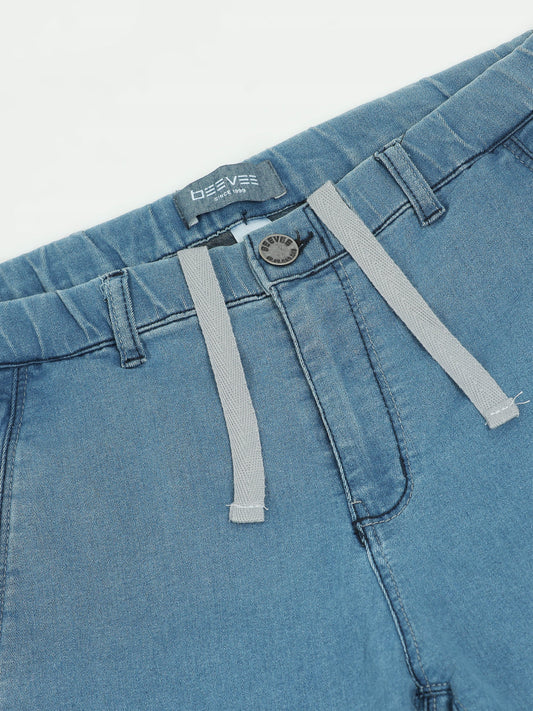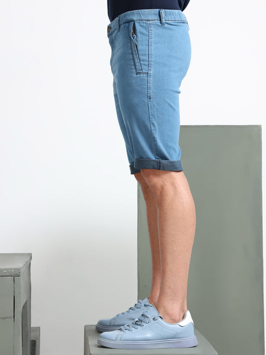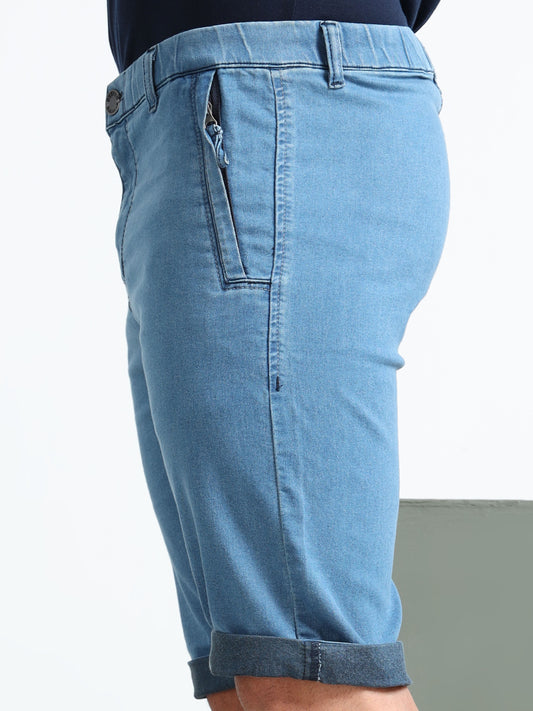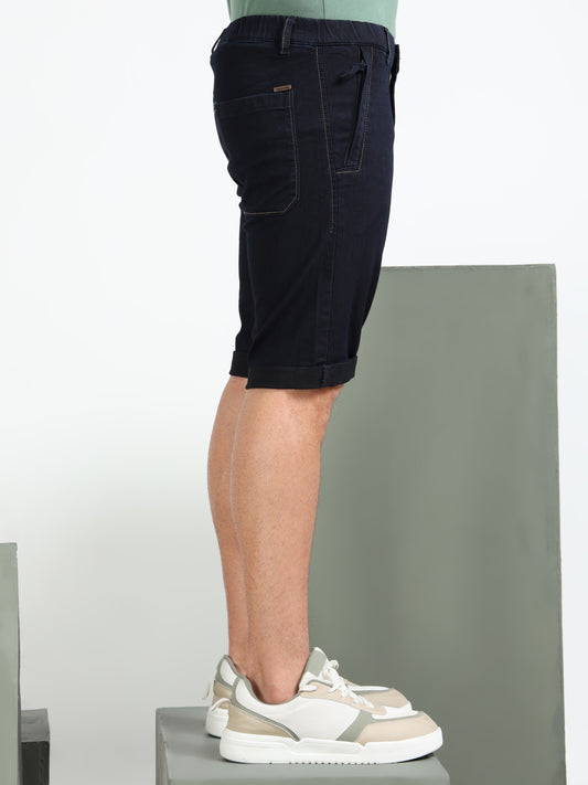 Men’s Washed Cotton Lycra Mid-Rise Denim Casual Shorts