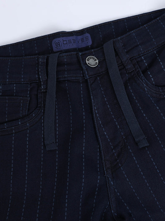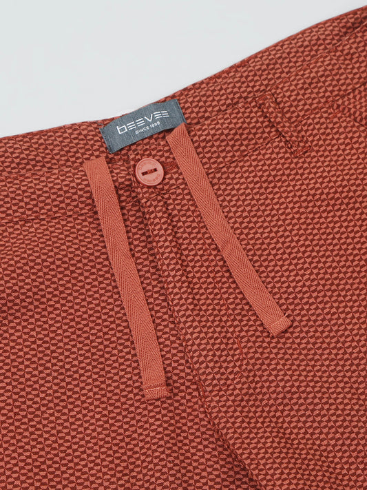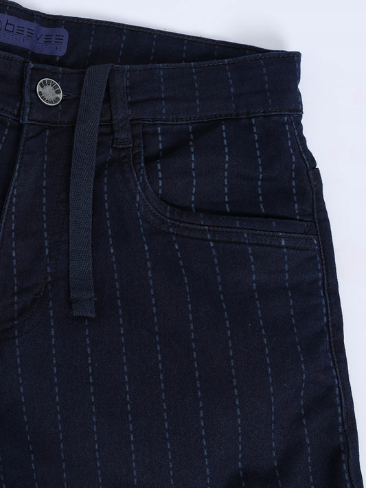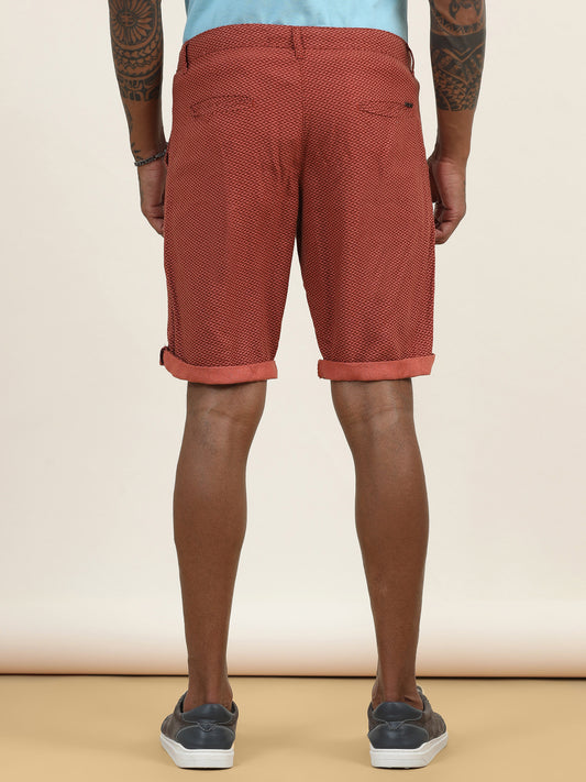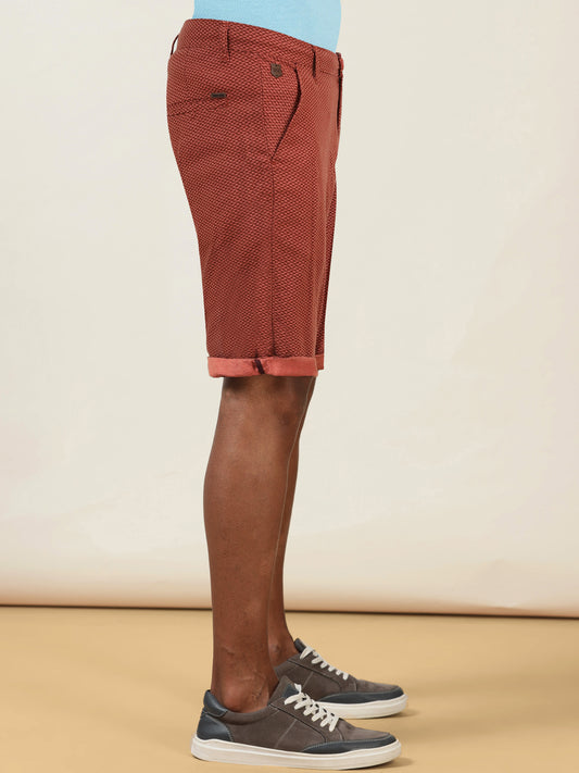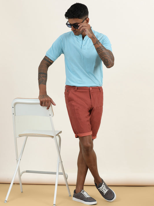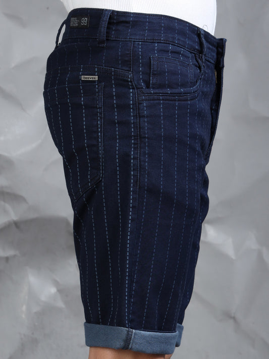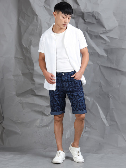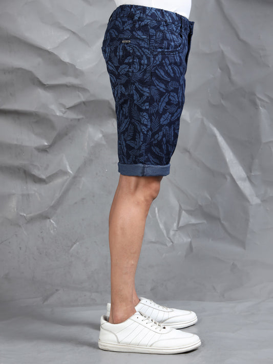 Men's Indigo Printed Cotton Lycra Mid-Rise Casual Shorts