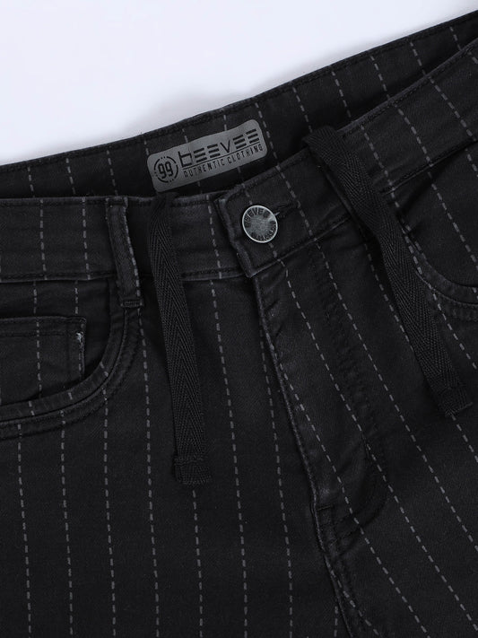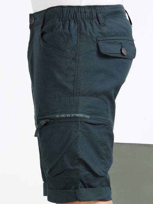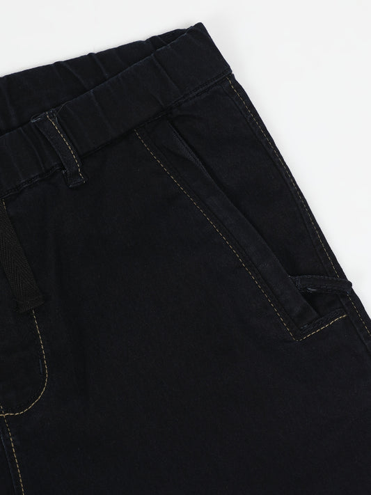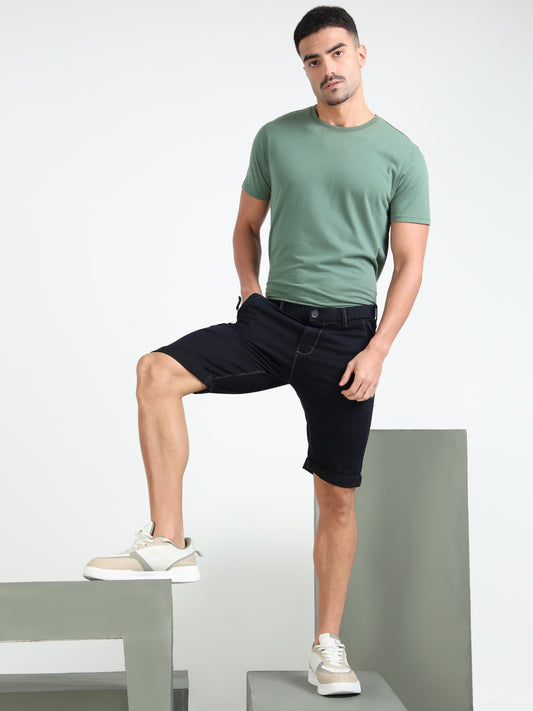Men's Black Solid Cotton Lycra Mid-Rise Casual Shorts