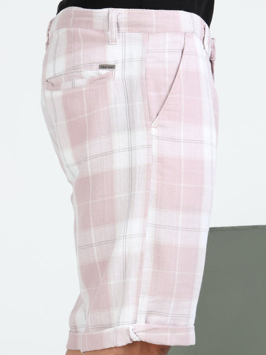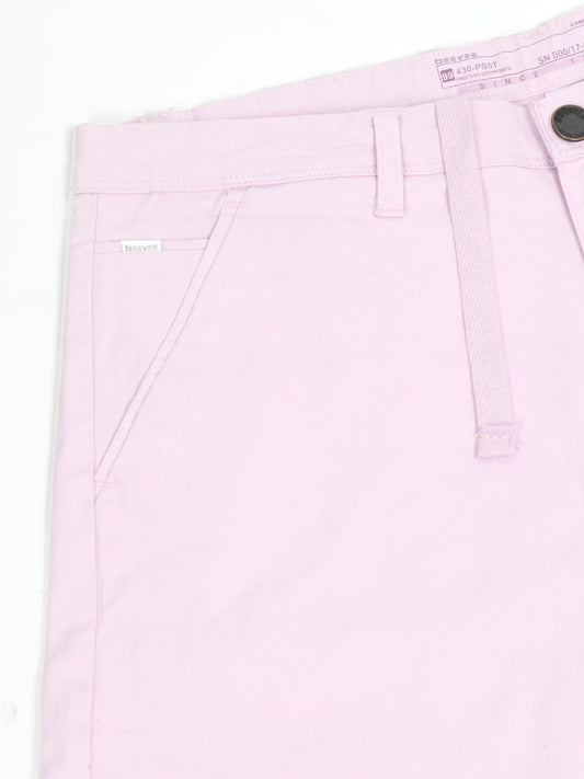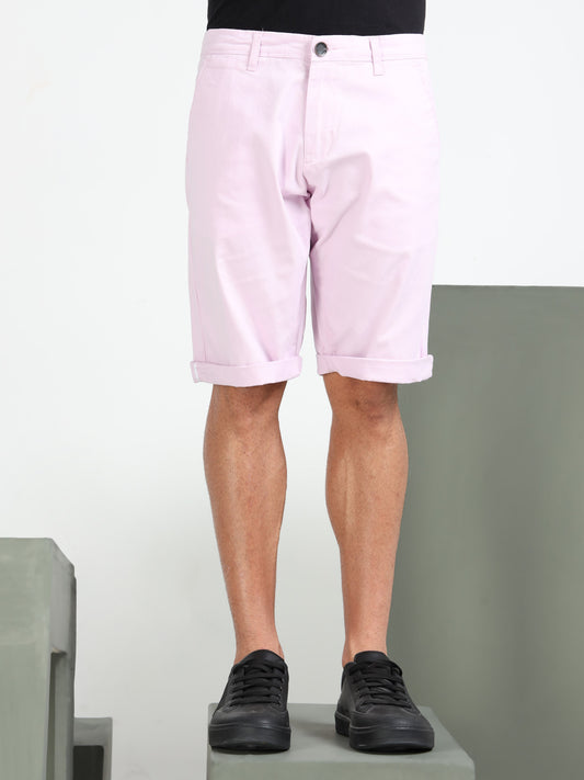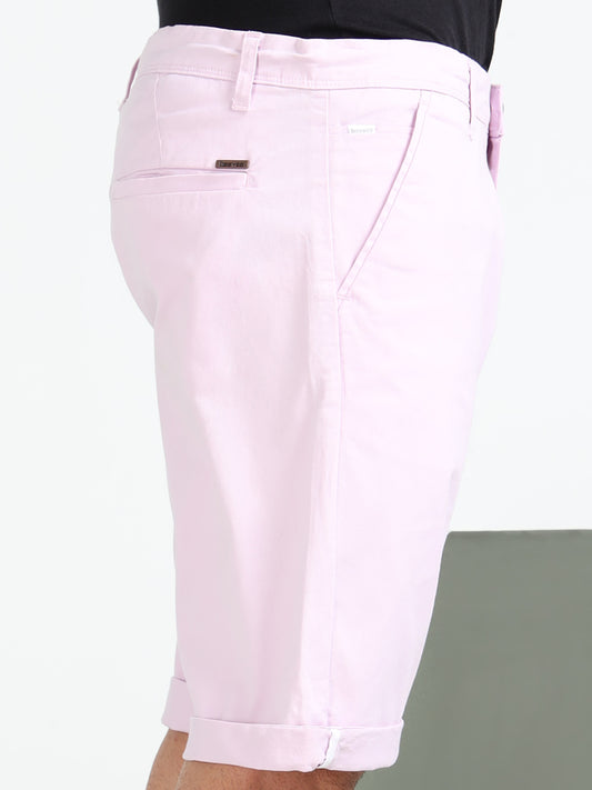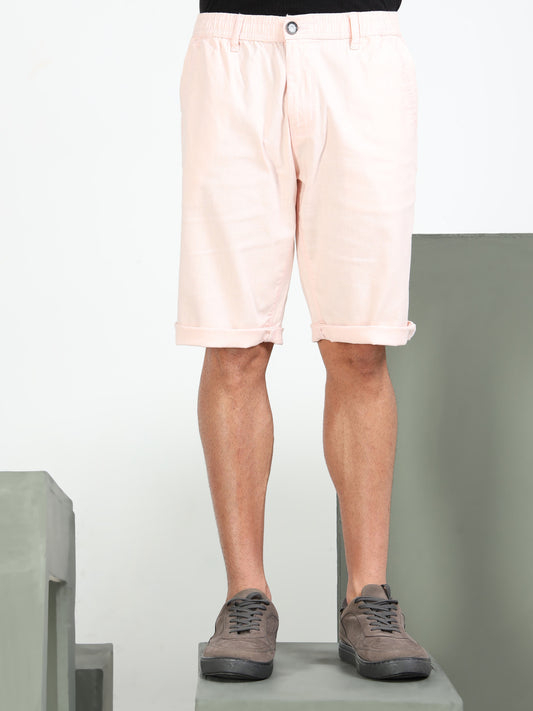 Men's Light Pink Solid Cotton Lycra Mid-Rise Casual Shorts