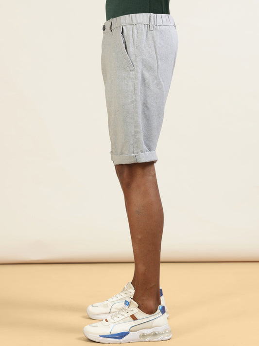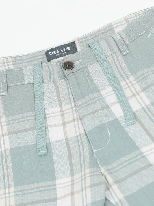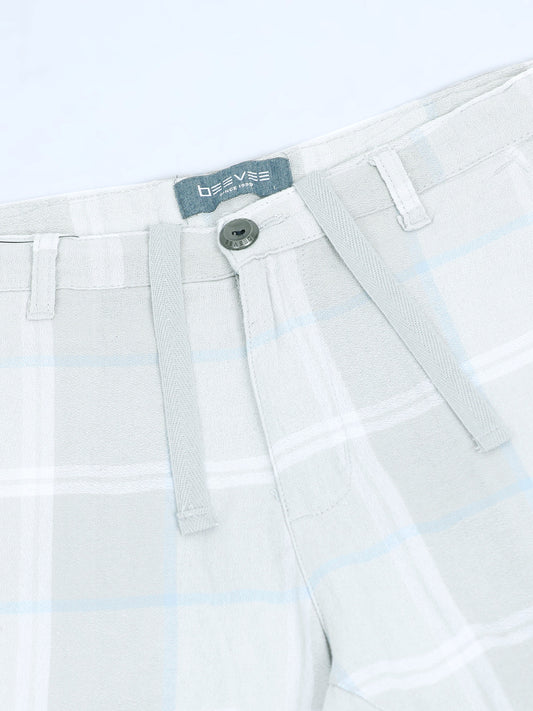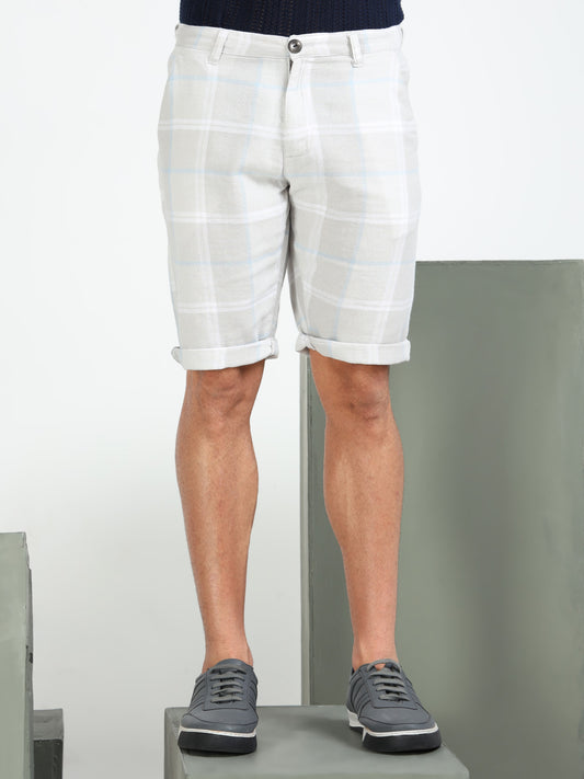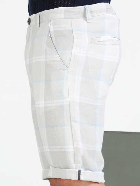 Grey Yarn Dyed Cotton Checkered Shorts.