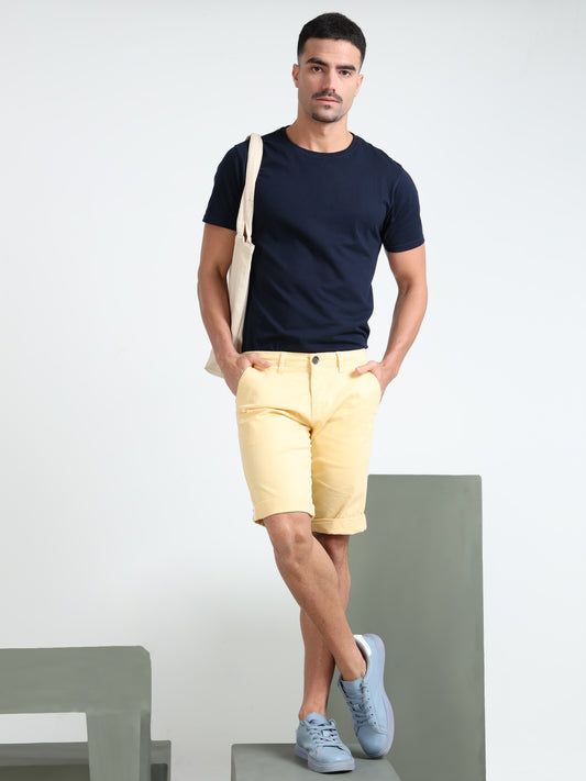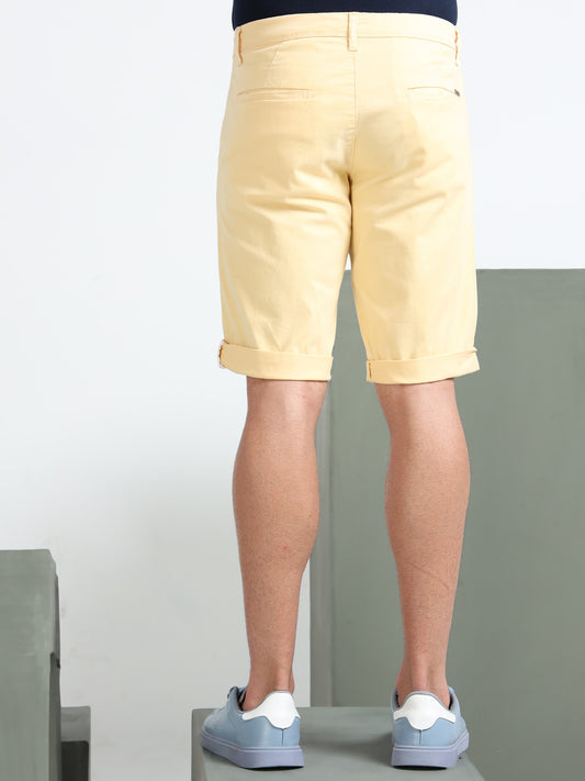 Cotton Lycra Casual Light Yellow Printed Shorts