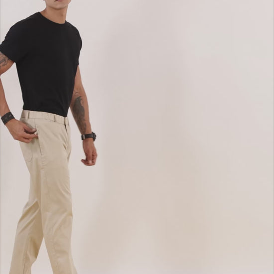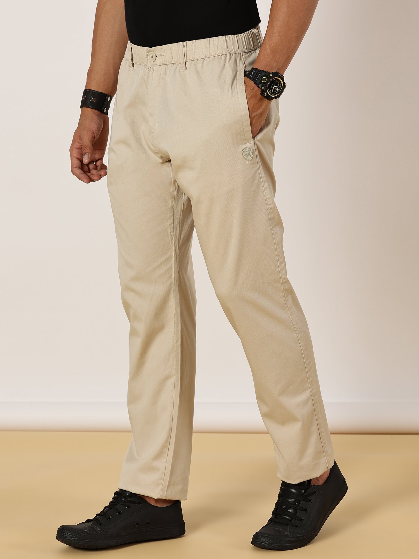 Light Weight Elasticated Waist Zip Pocket Beige Lounge Pants
