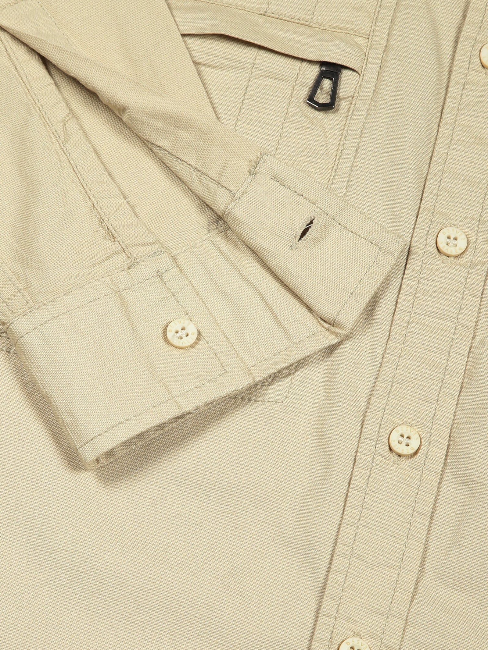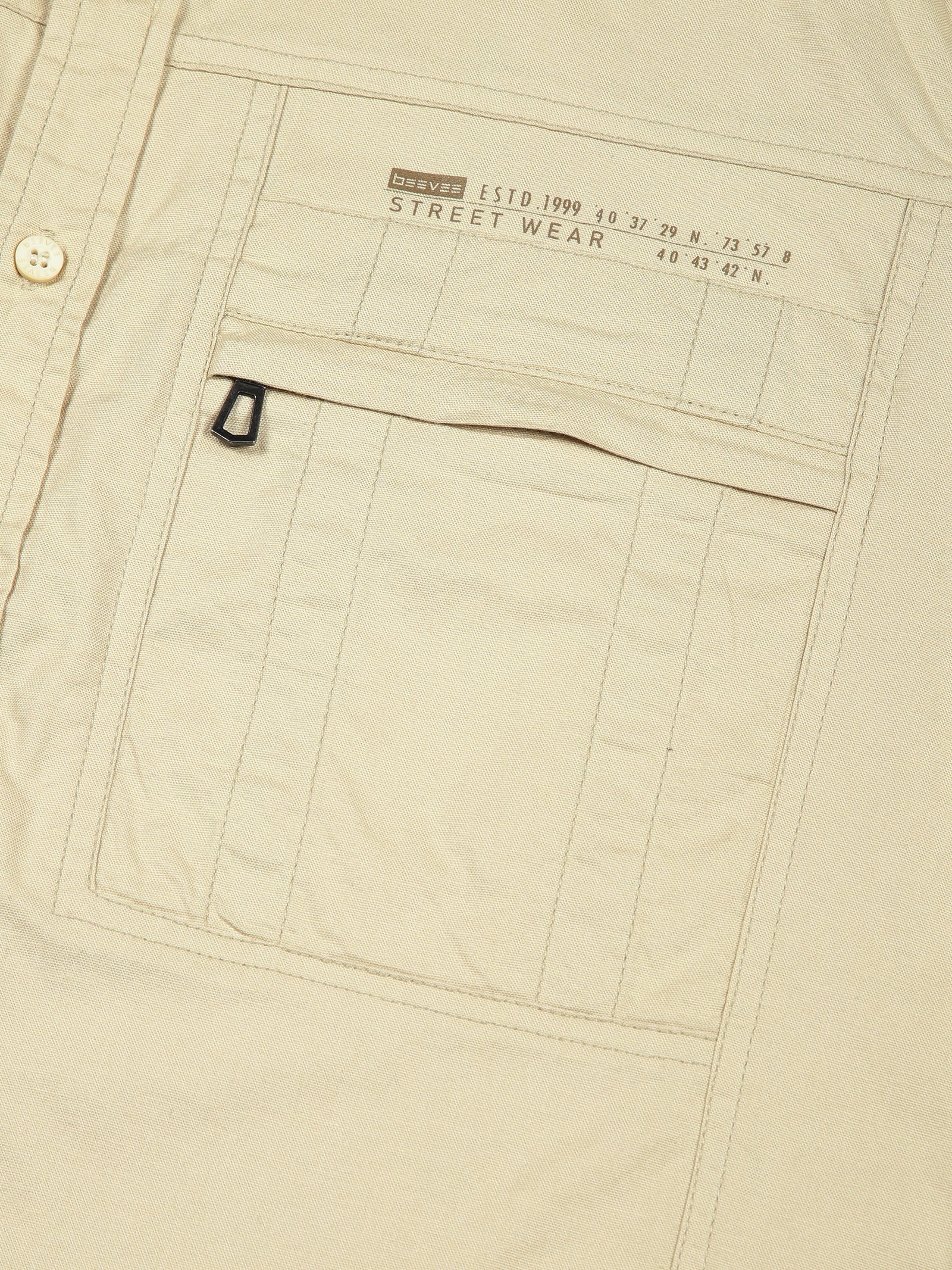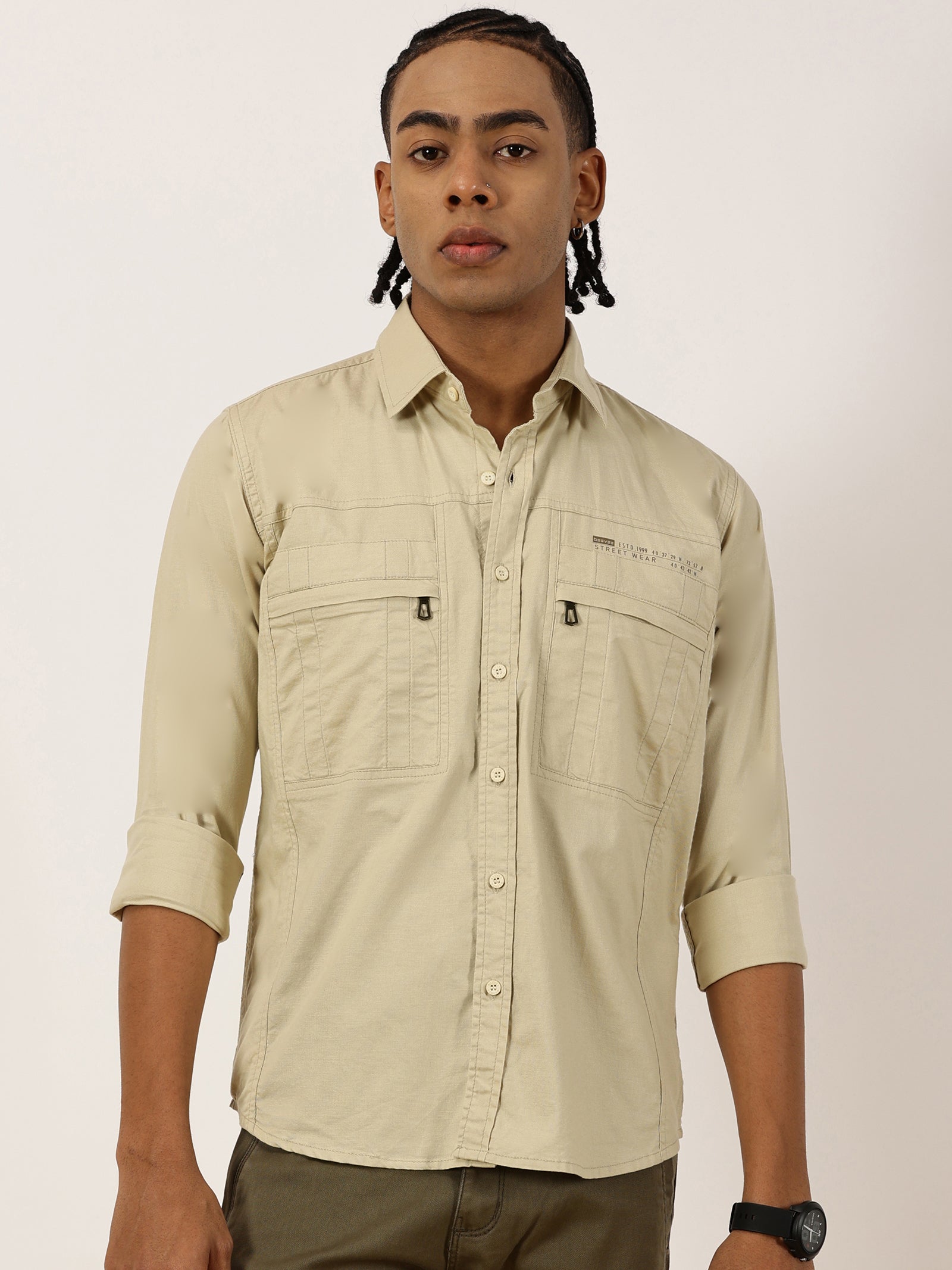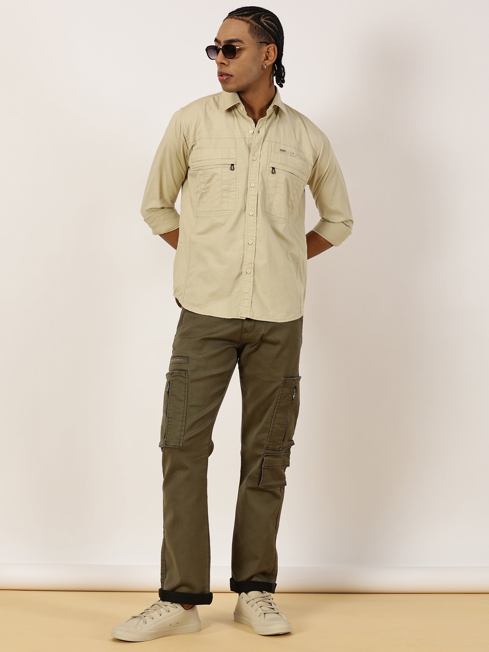 Multi Pocket with Zip Stretchable Beige Cargo Shirt