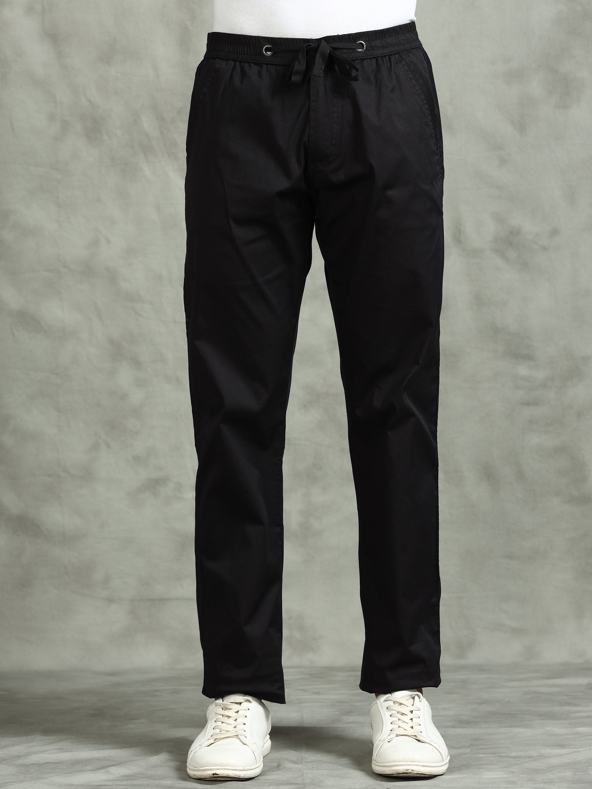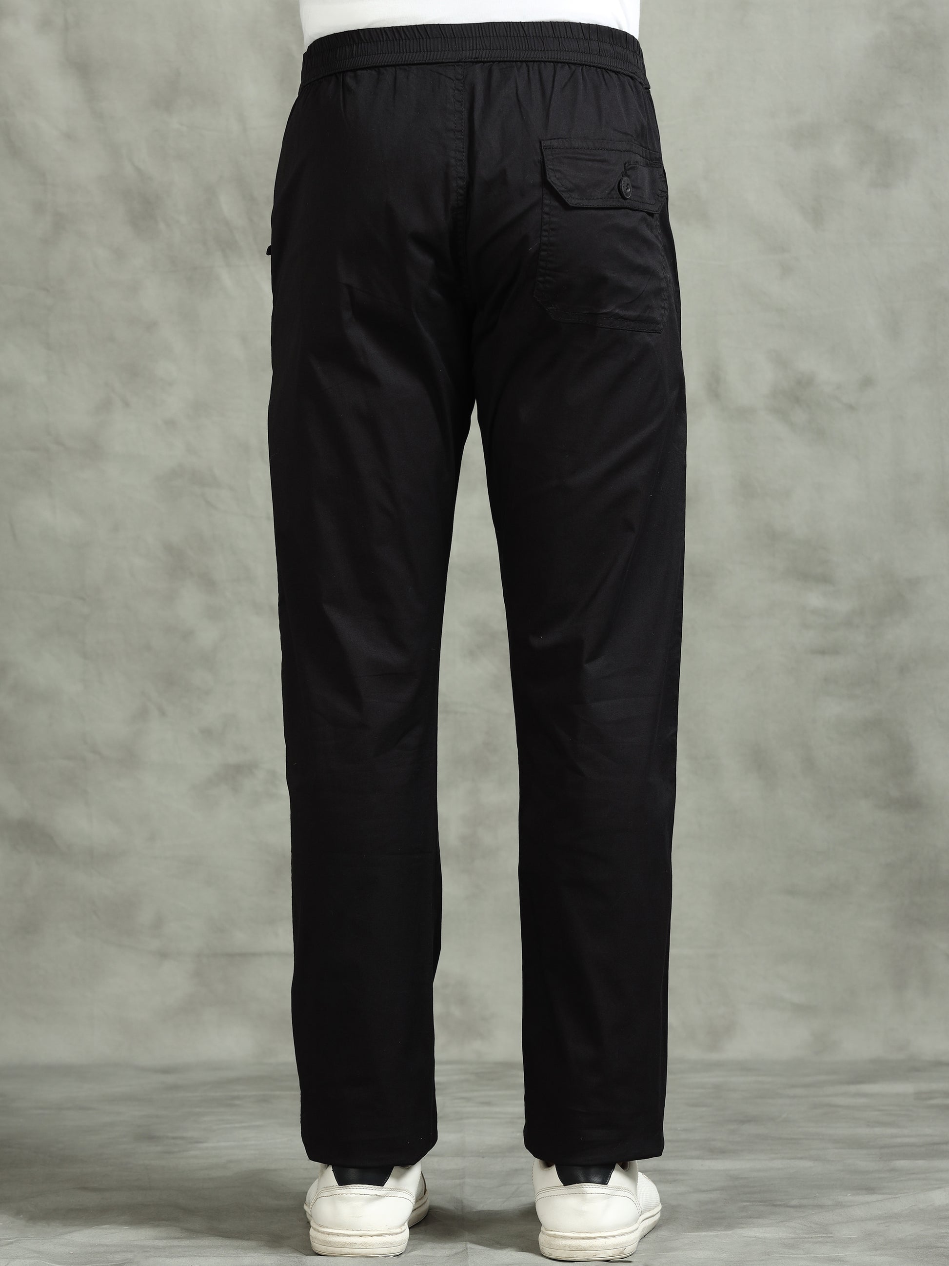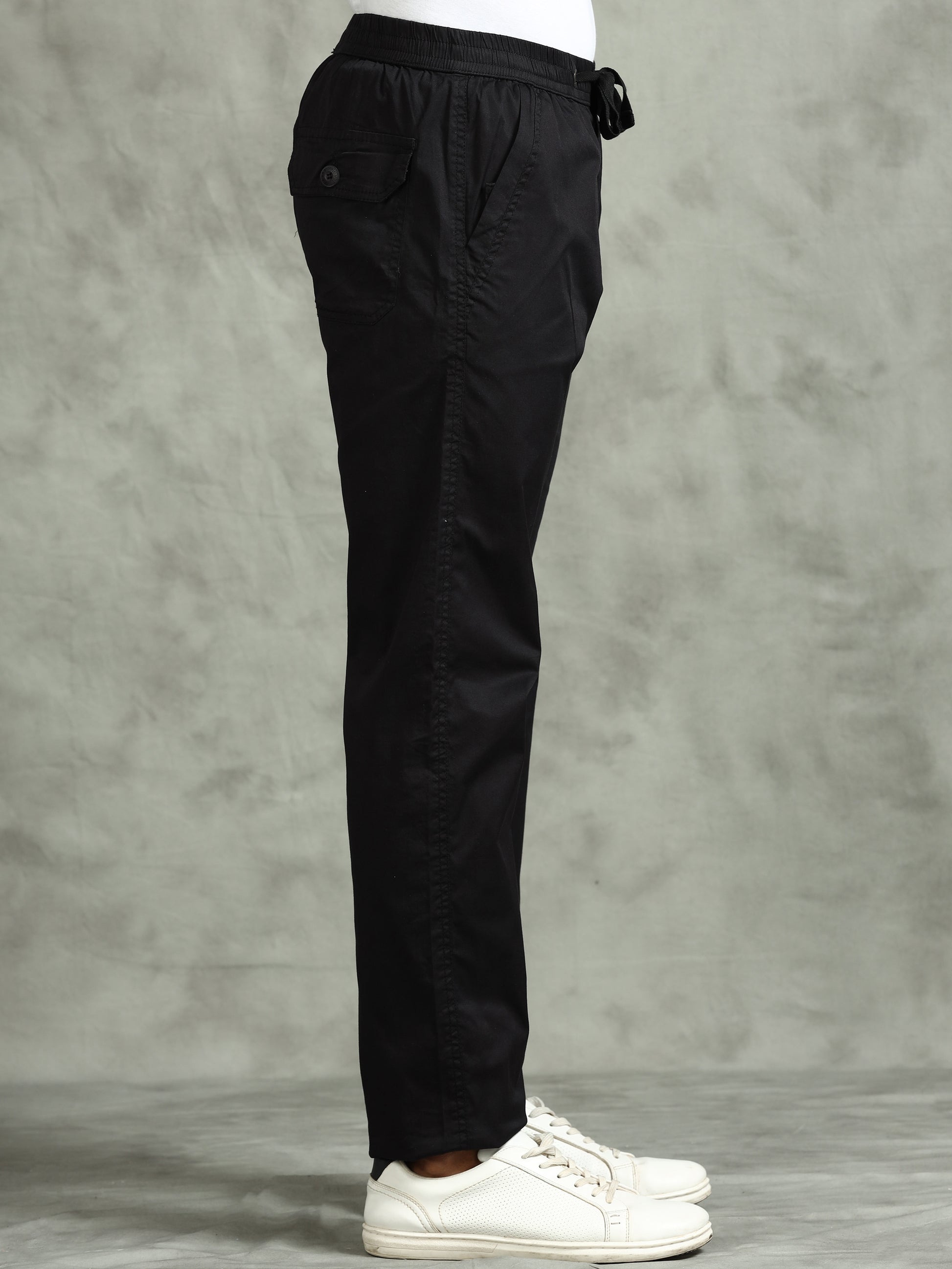 Elasticated Waist Zip Pocket Stretchable Black Lounge Pants