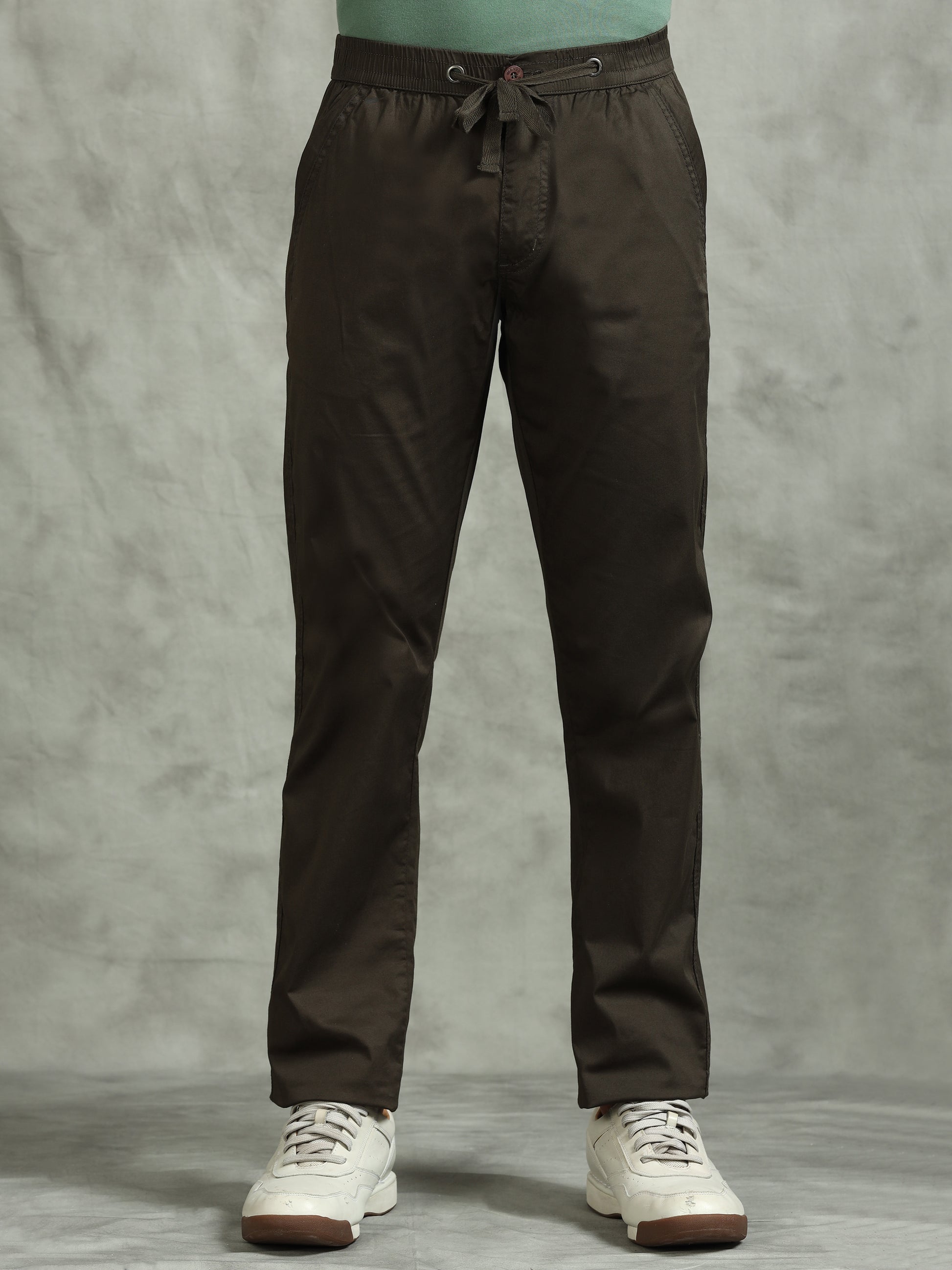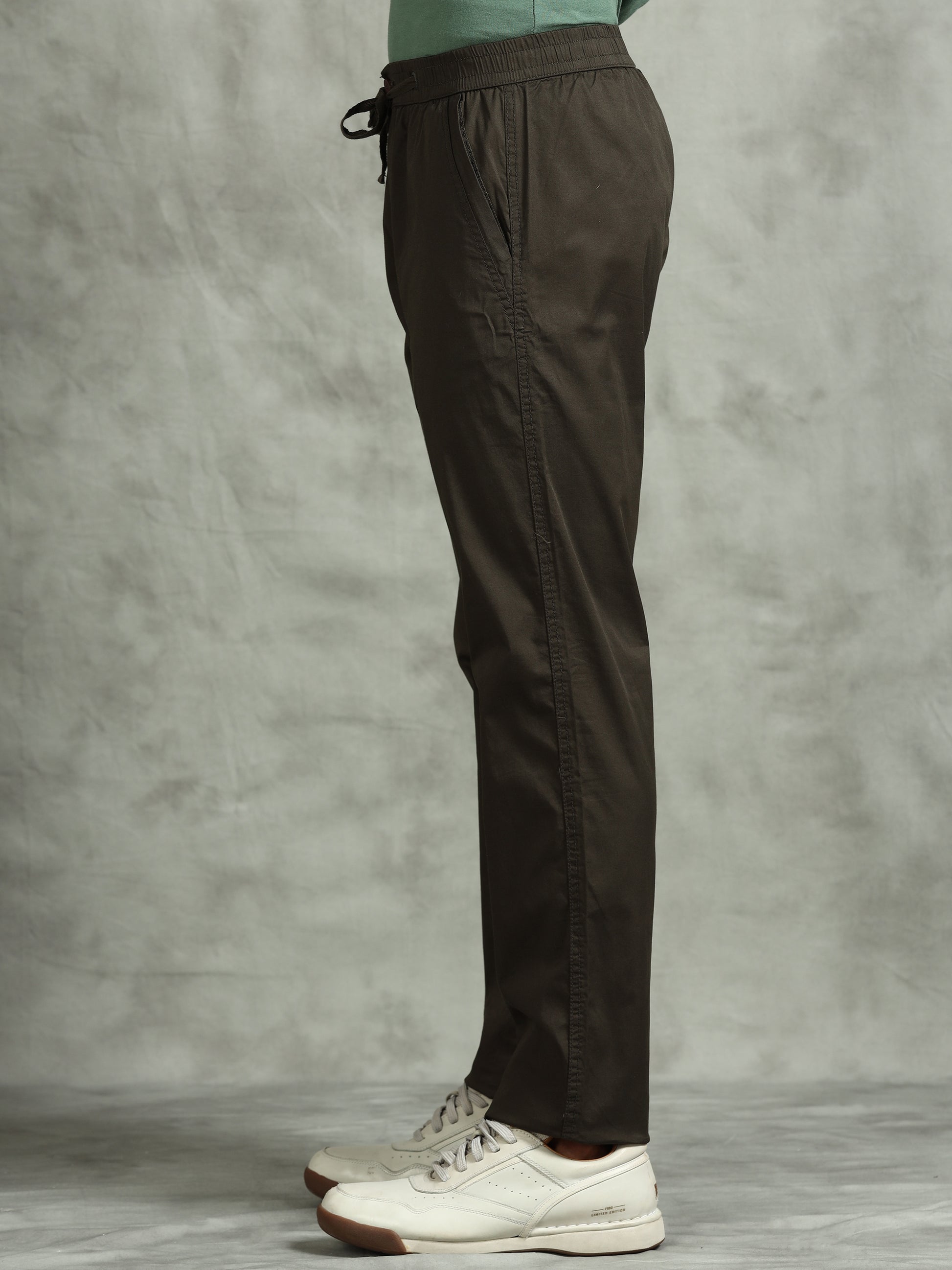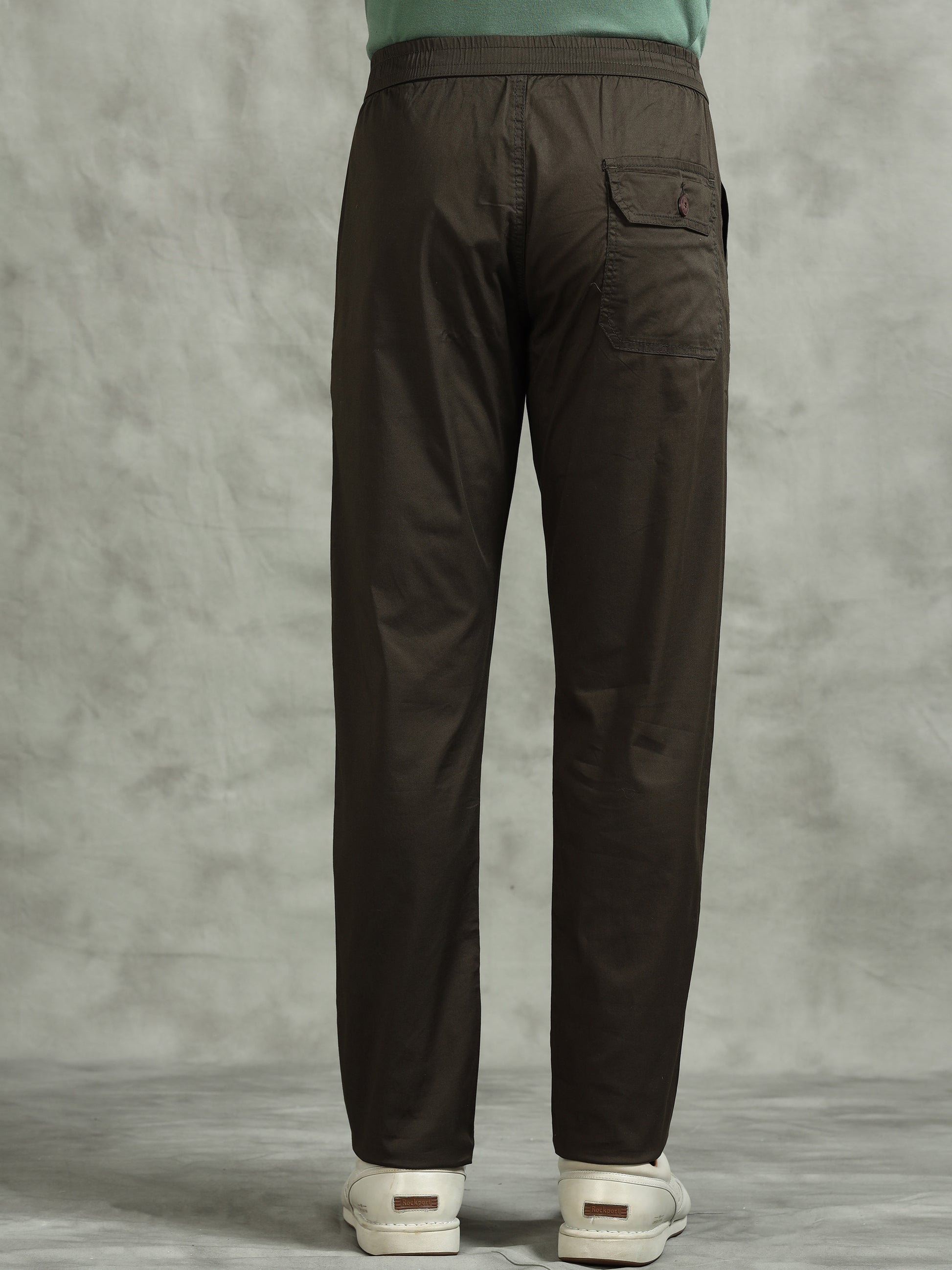 Elasticated Waist Zip Pocket Stretchable Olive Lounge Pants