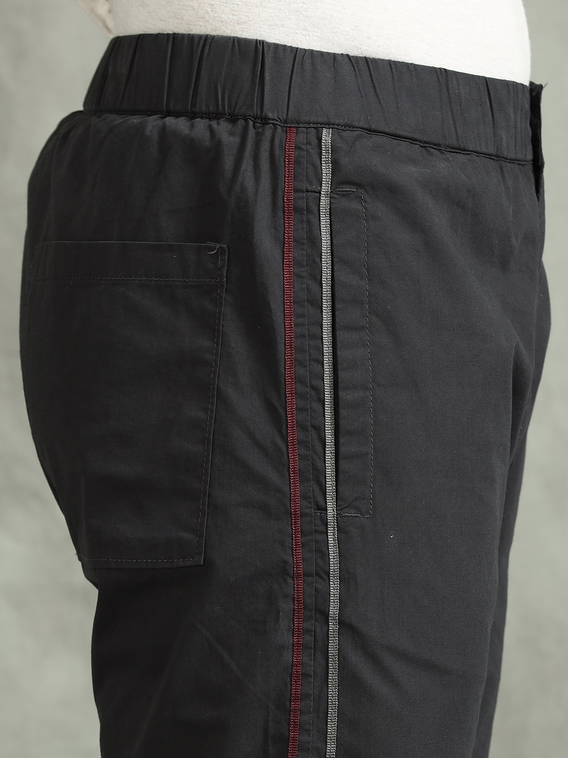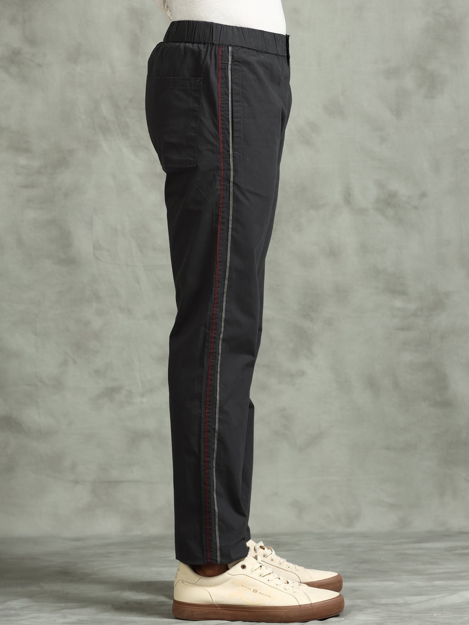 Elasticated Waist Zip Pocket Dark Grey Lounge Pants with Side Tape