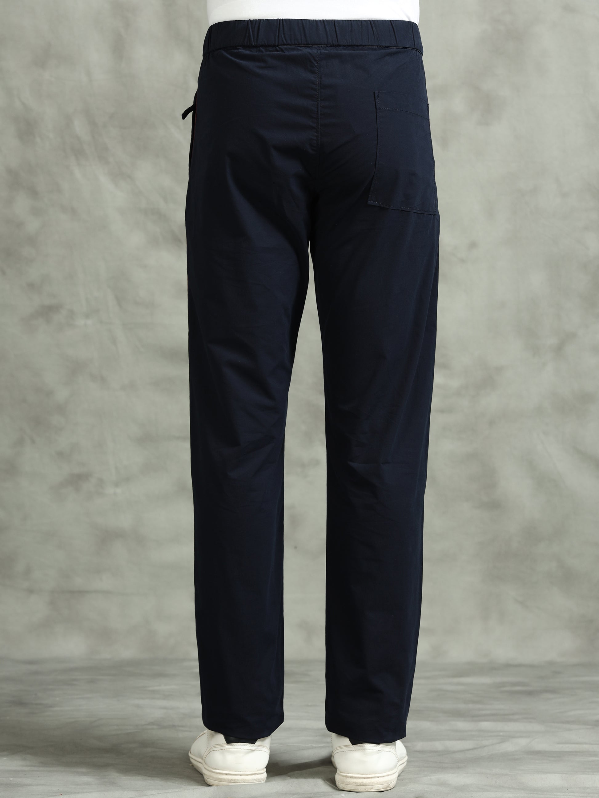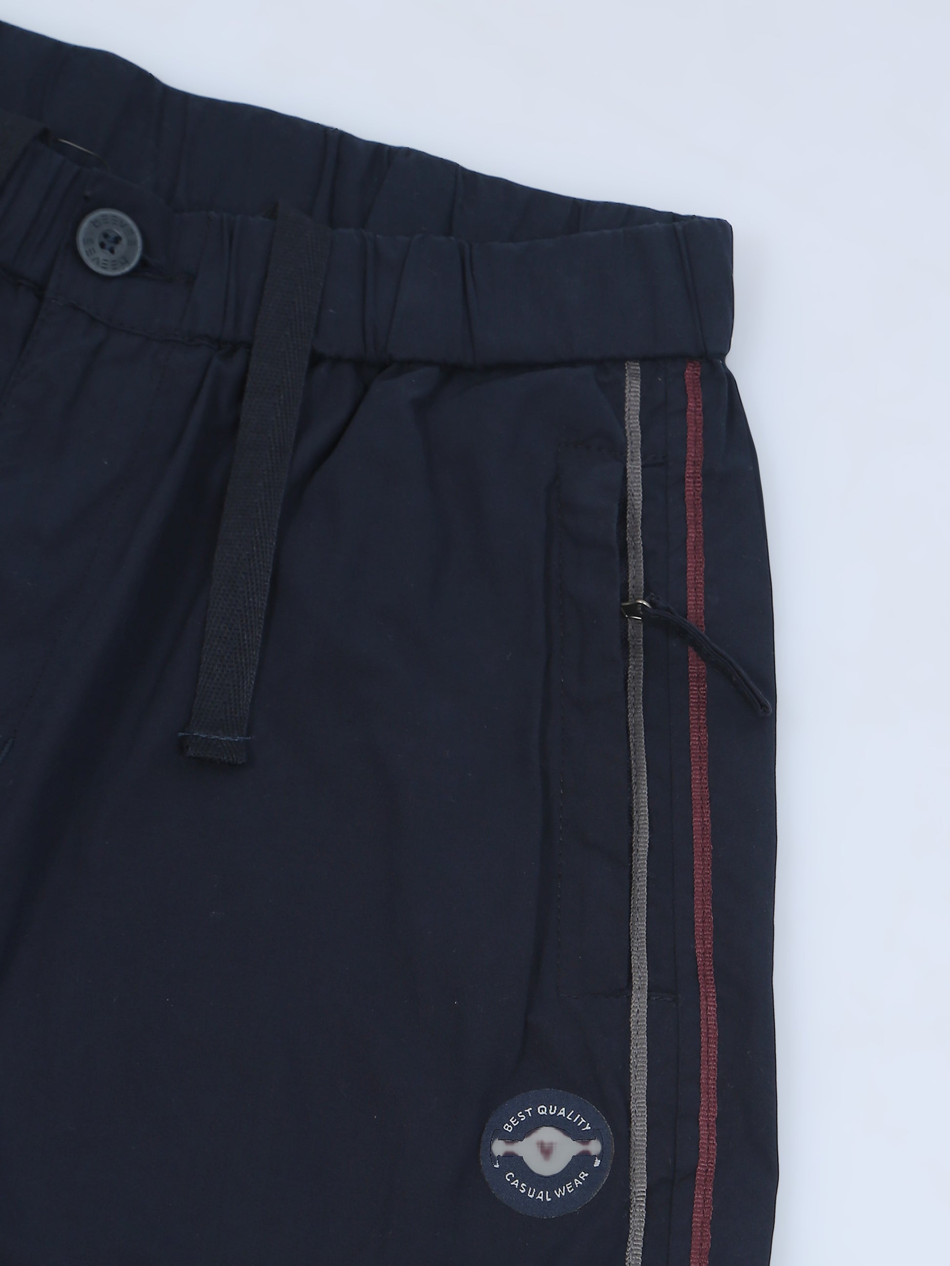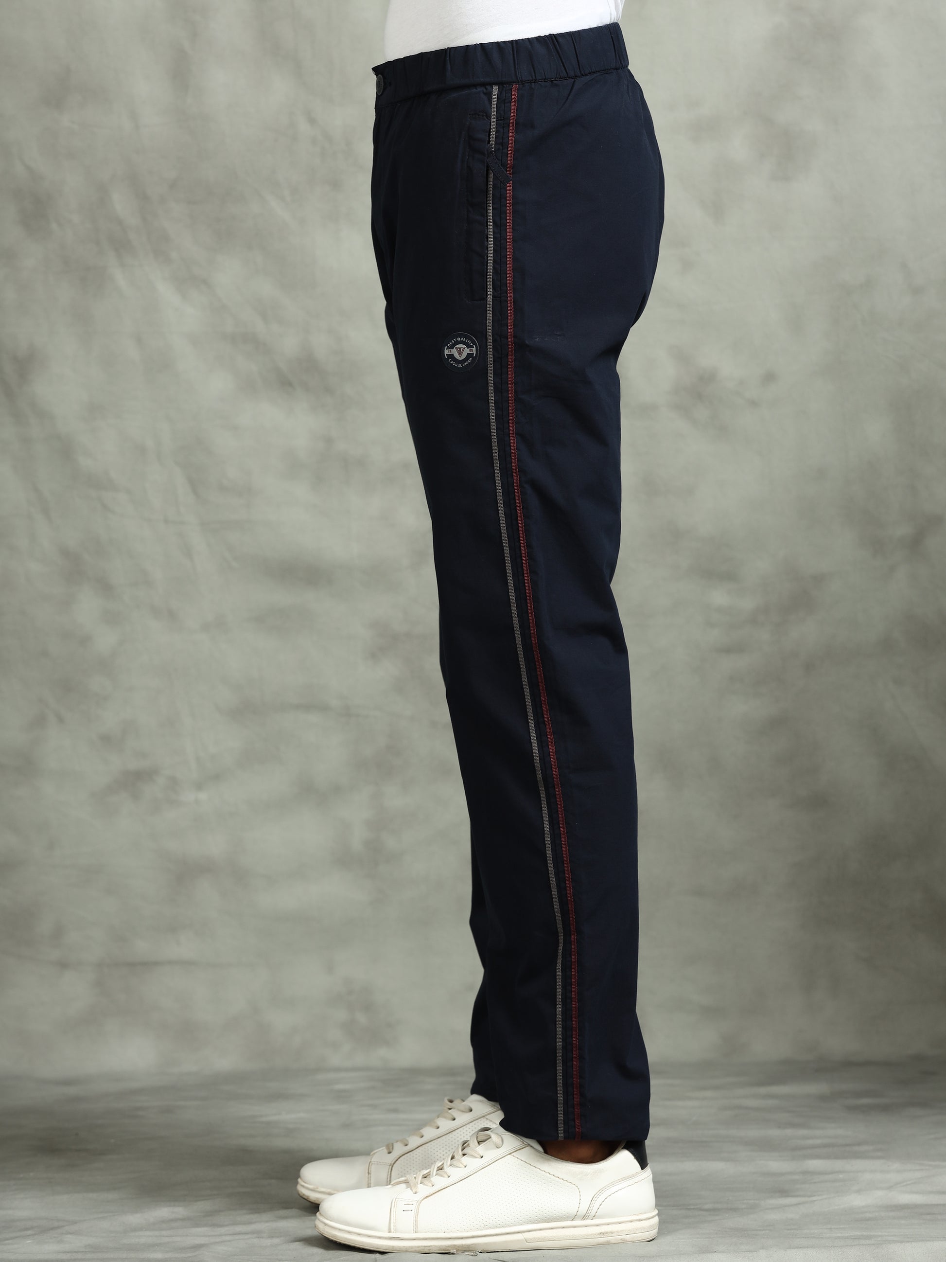 Elasticated Waist Zip Pocket Navy Lounge Pants With Side Tape