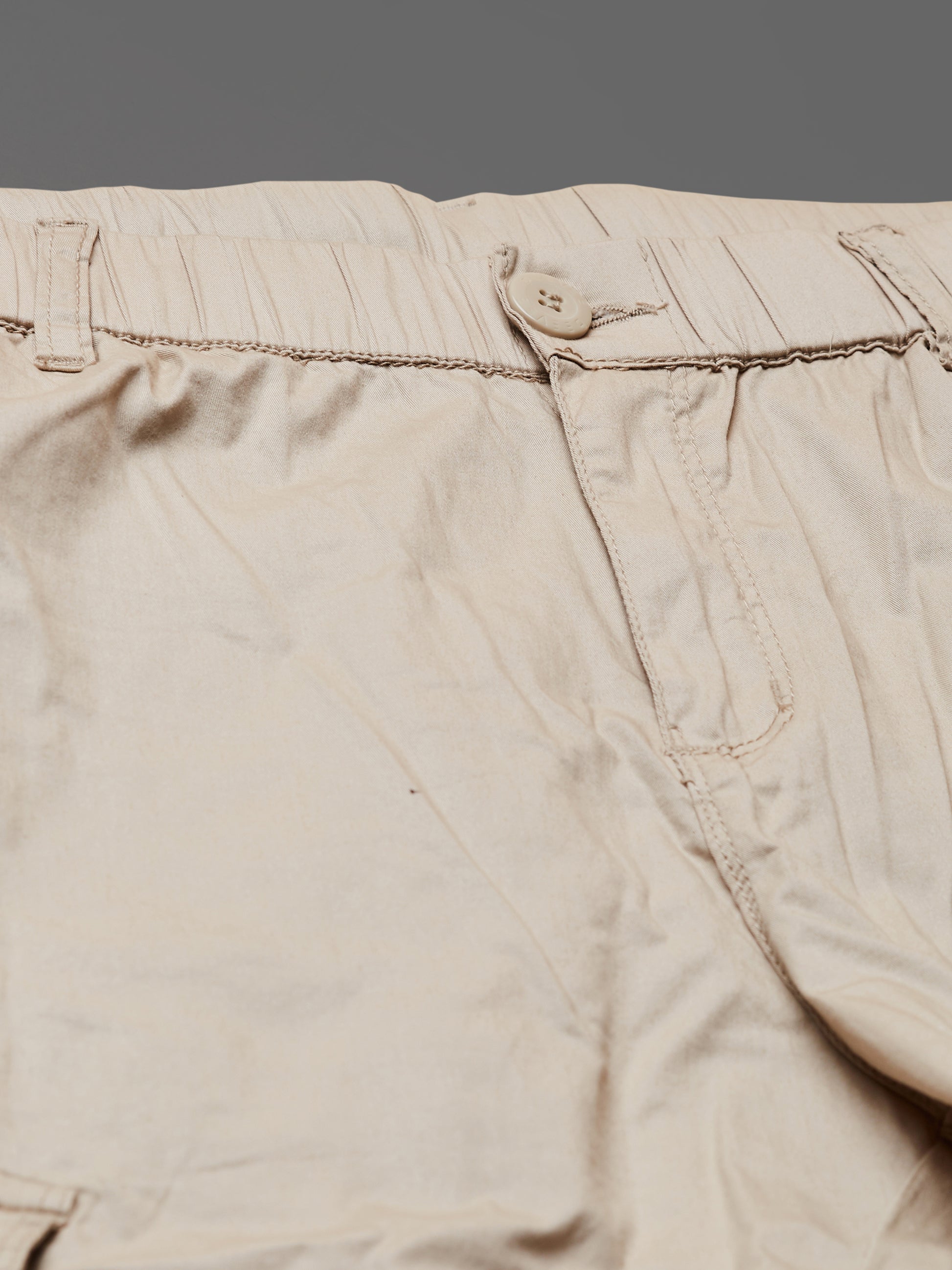 Elasticated Waist Multi Pocket Beige Jogger Lounge Pants