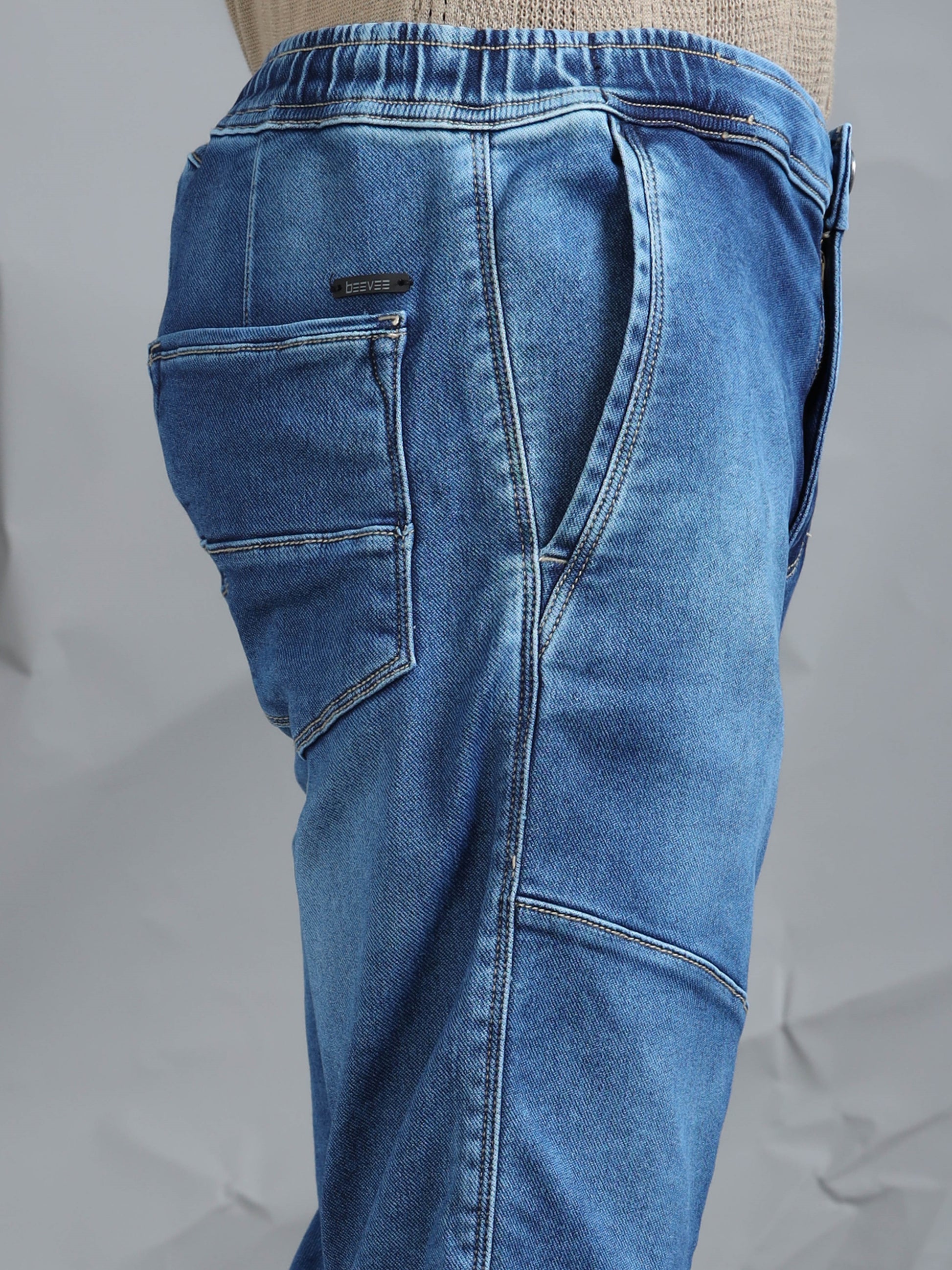 Dark Blue Stretchable Cut & Sew Denim Shorts