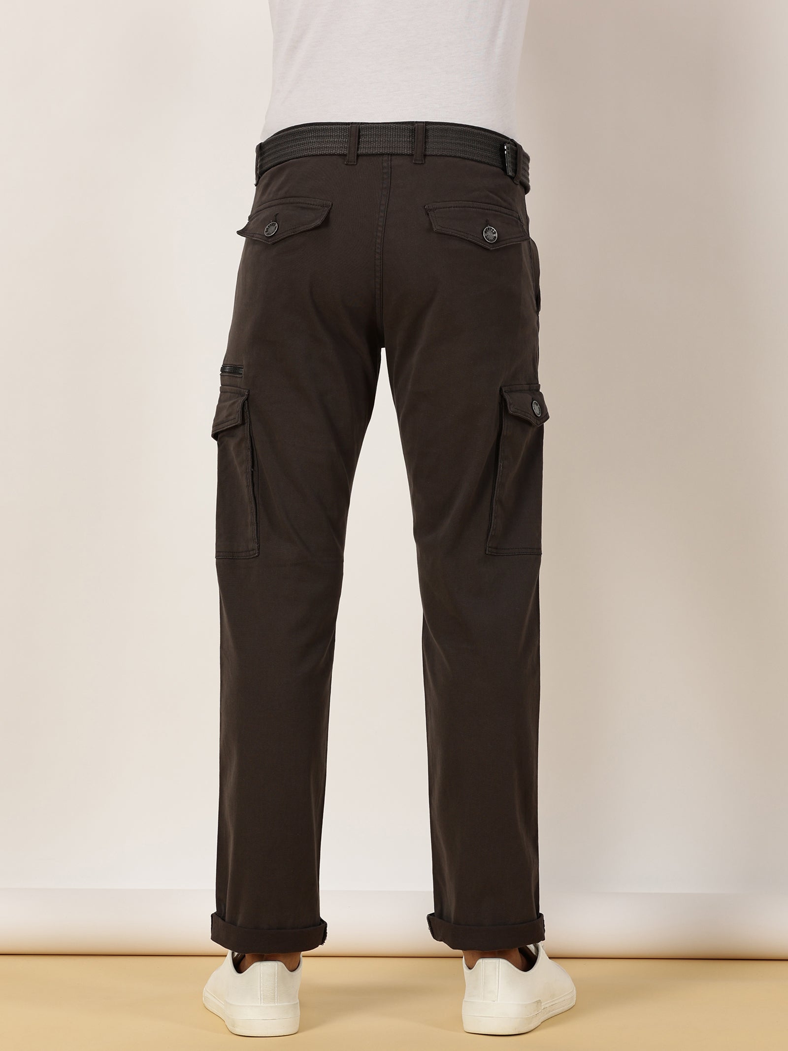 Zip Pocket Stretchable Grey With Belt