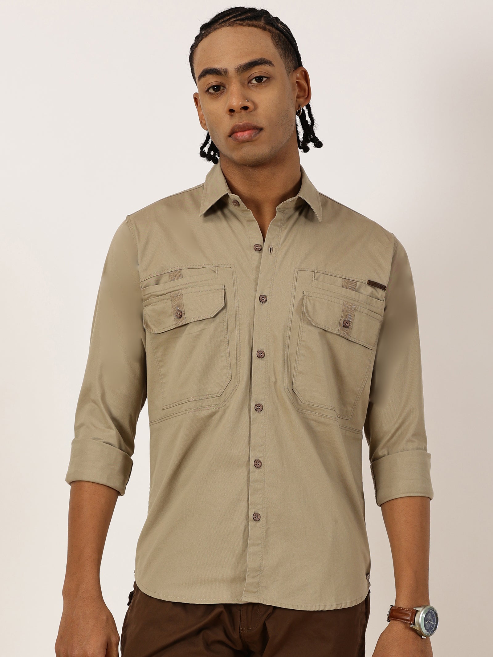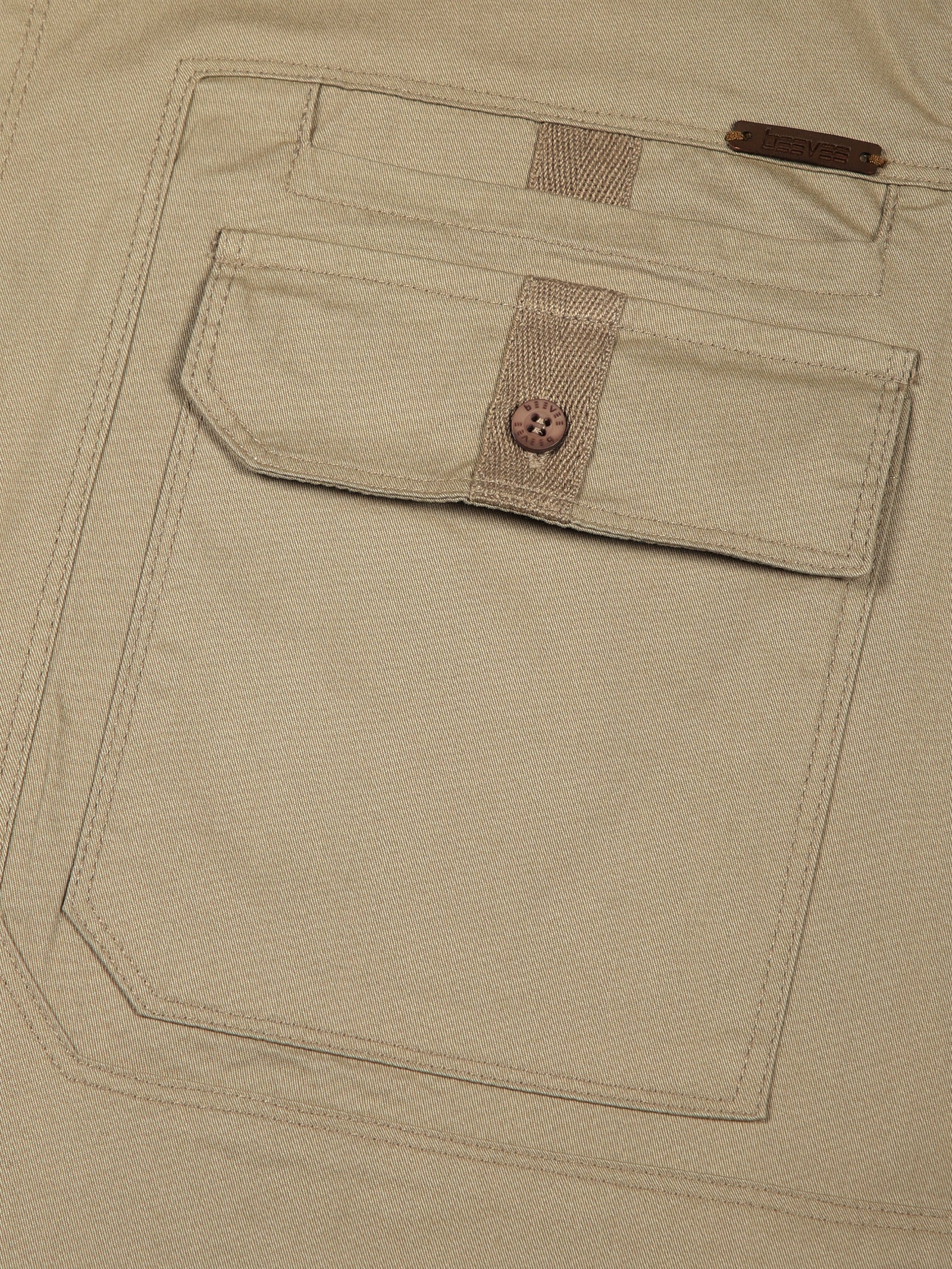Double Pocket Stretchable Beige Cargo Shirt