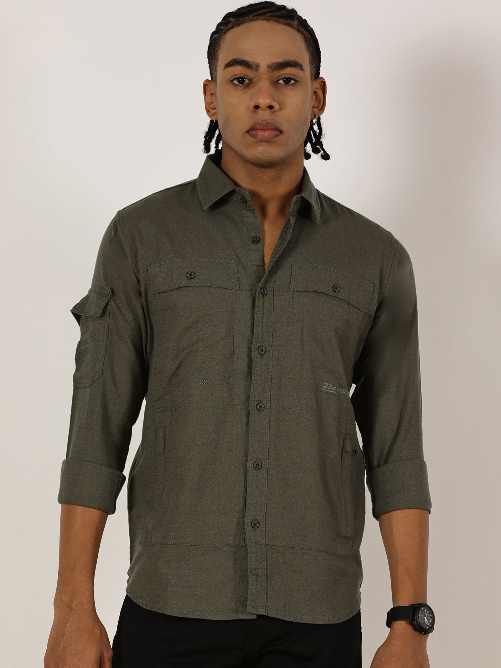Multi Pocket Olive Cargo Shirt