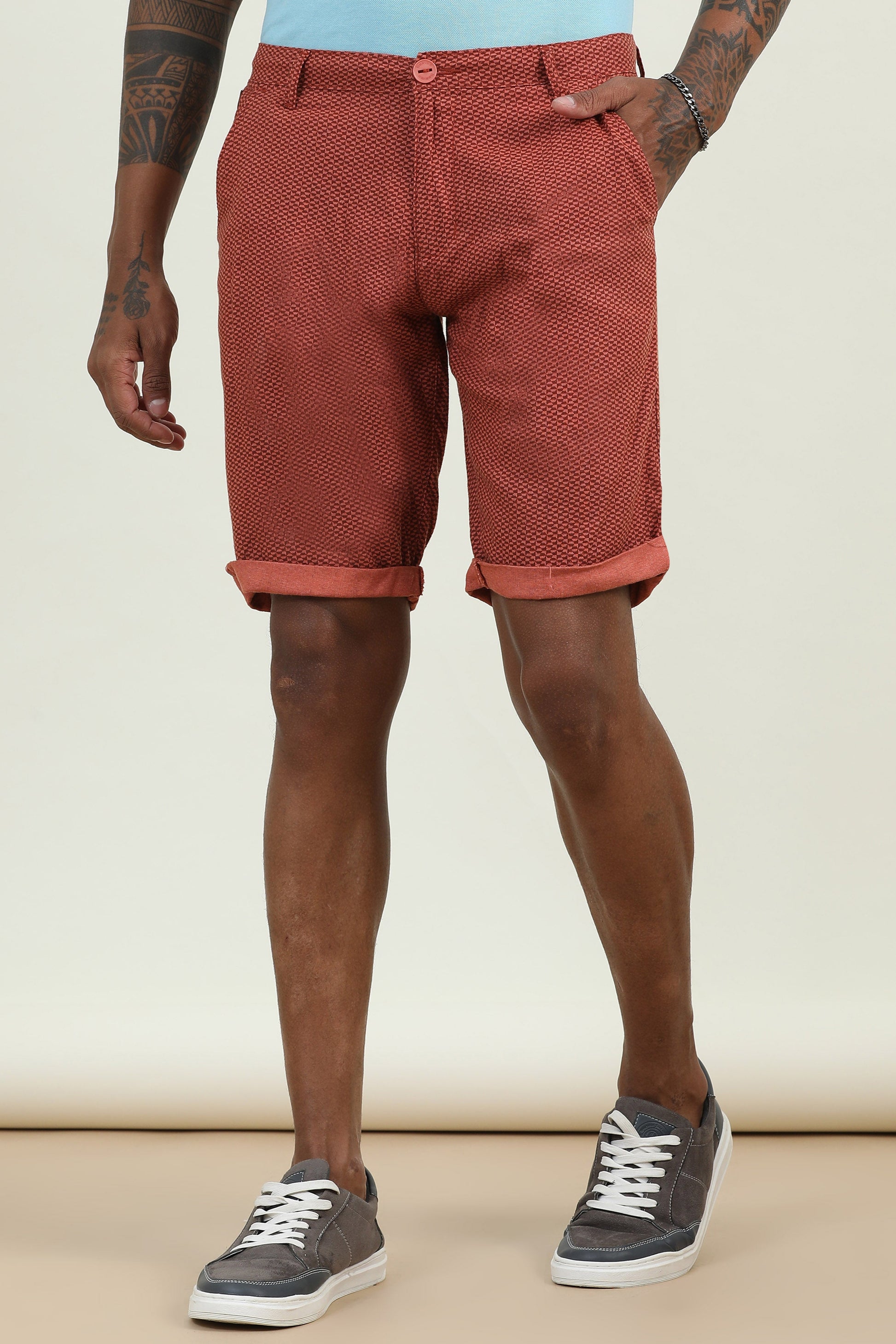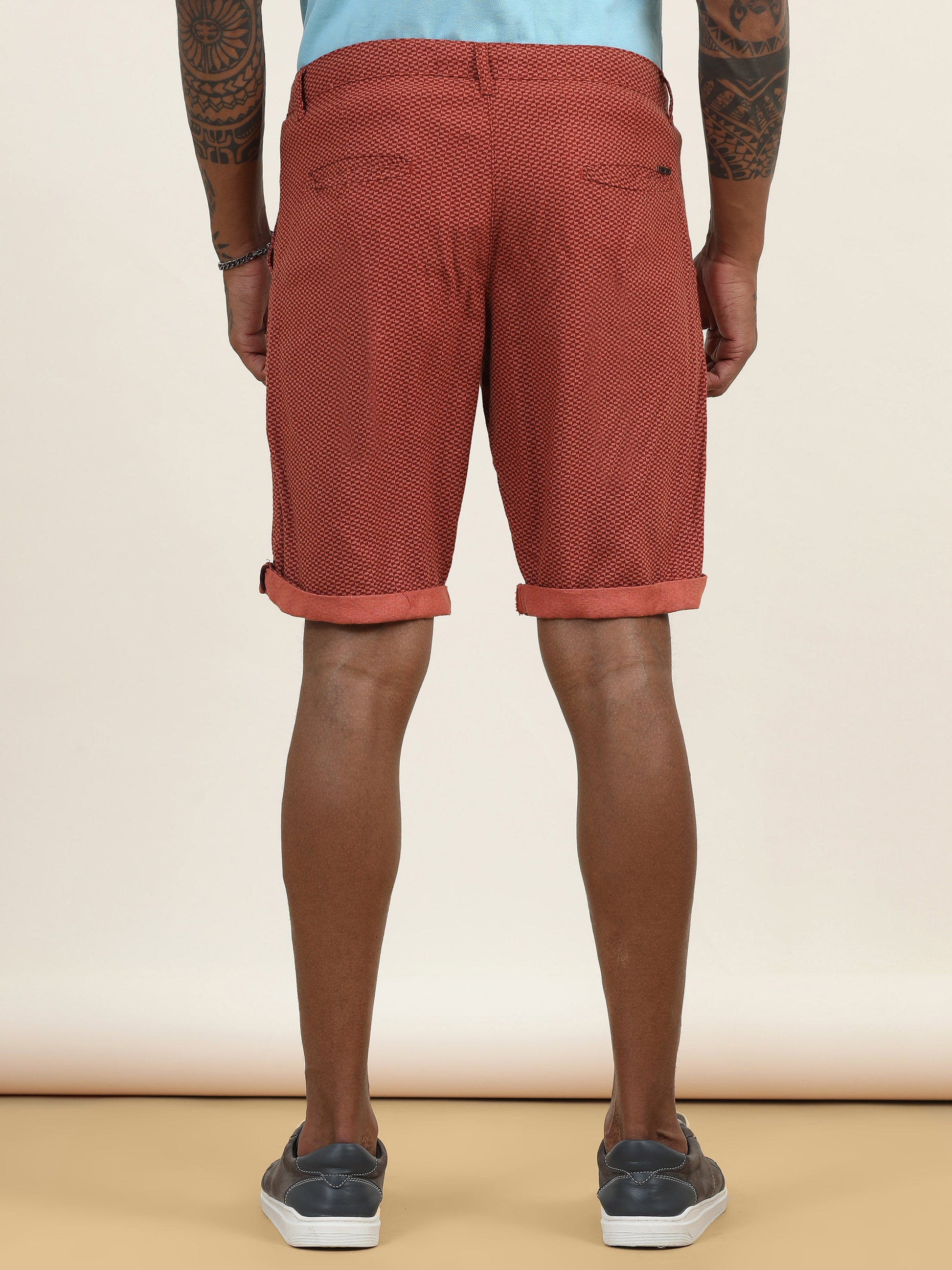 Printed Linen Rust Shorts