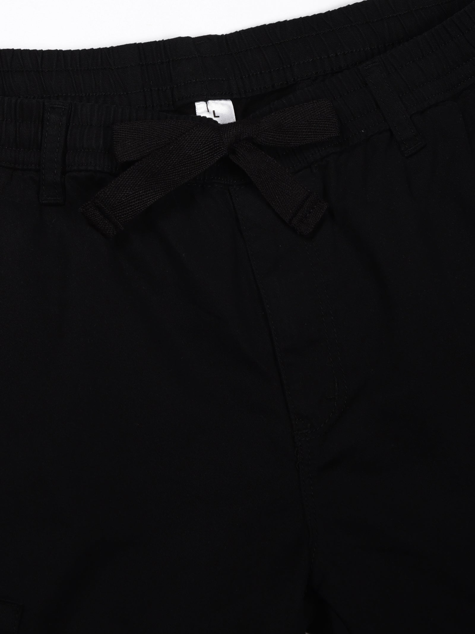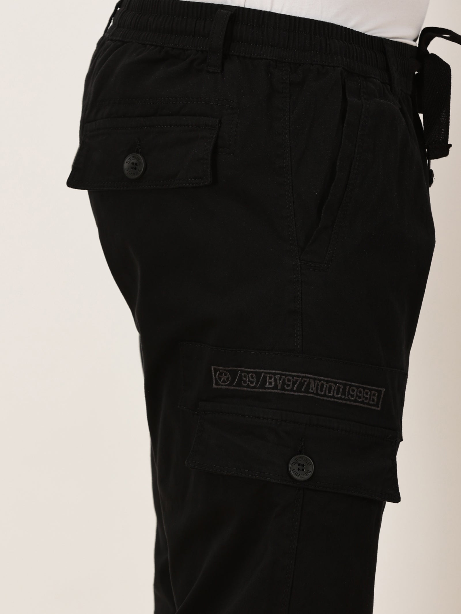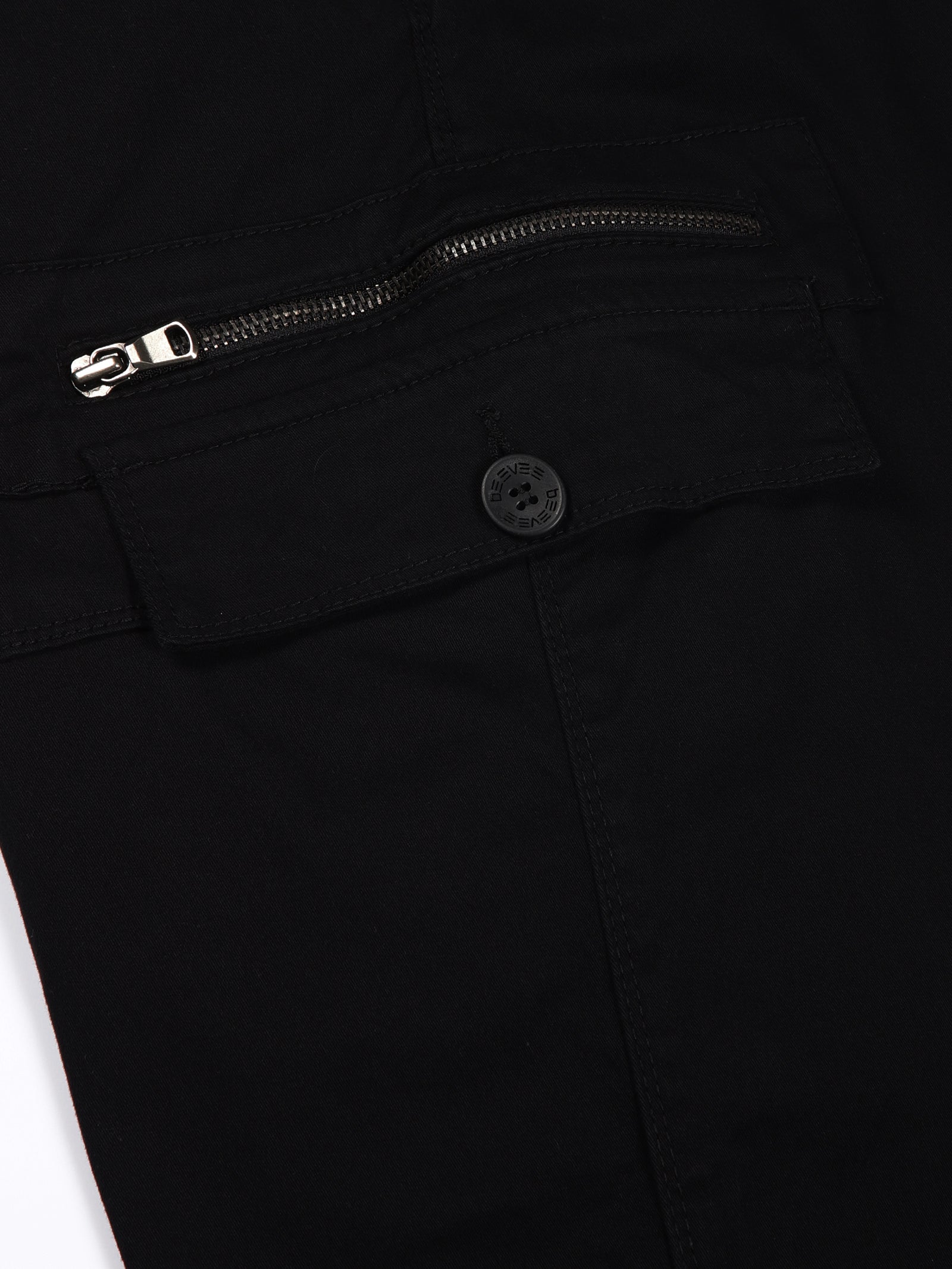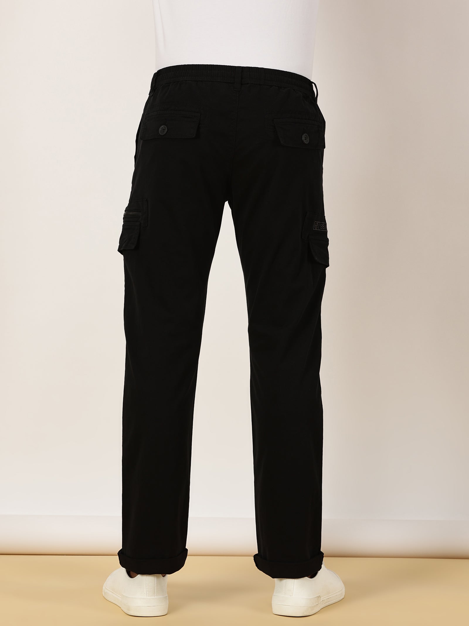 Elasticated Waist Multi Pocket Stretchable Black Cargo