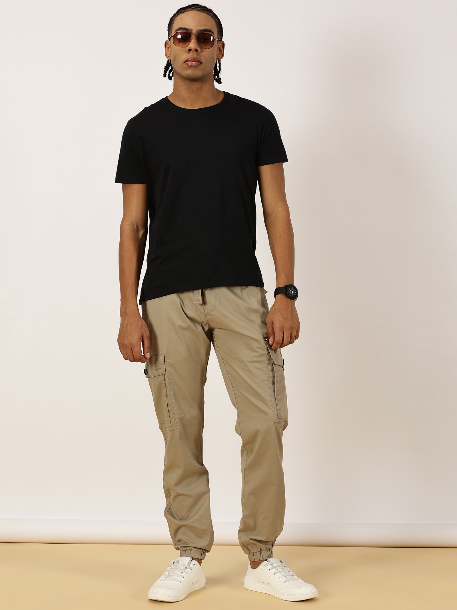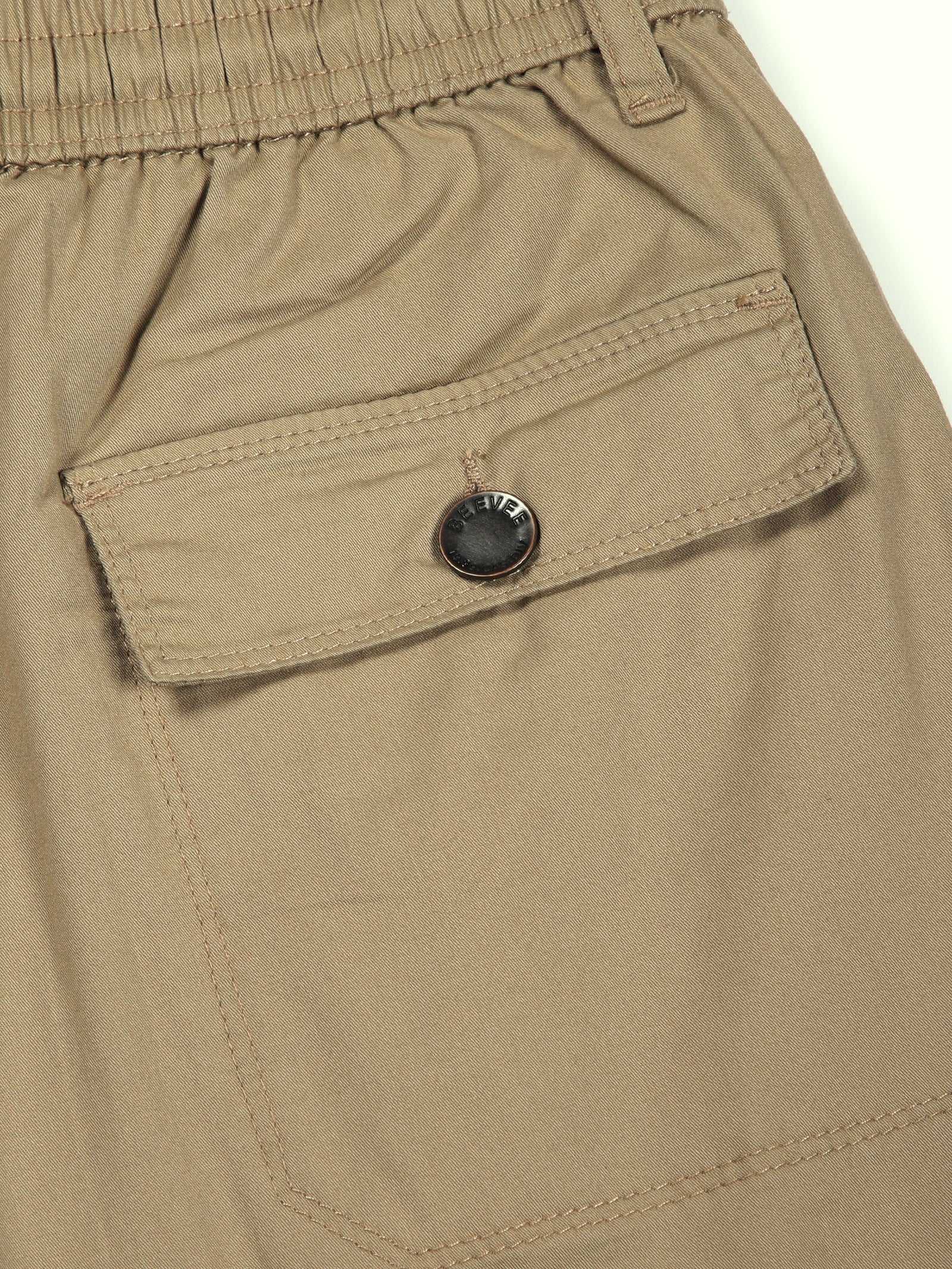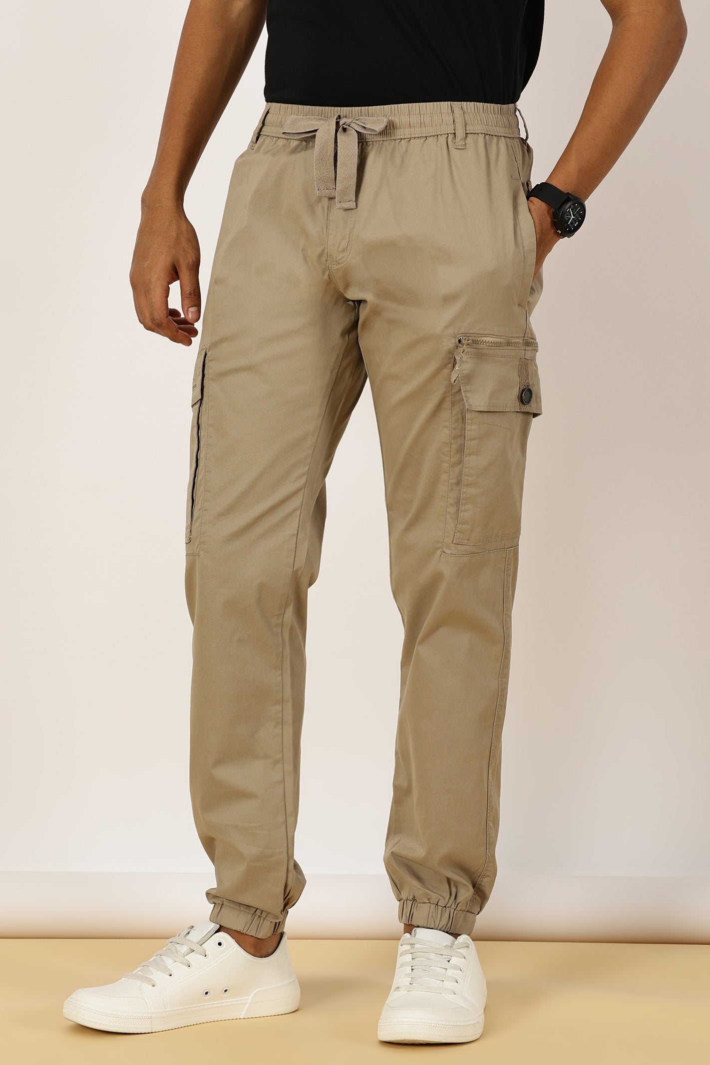 Elasticated Waist Zip Pocket Stretchable Beige Jogger Cargo