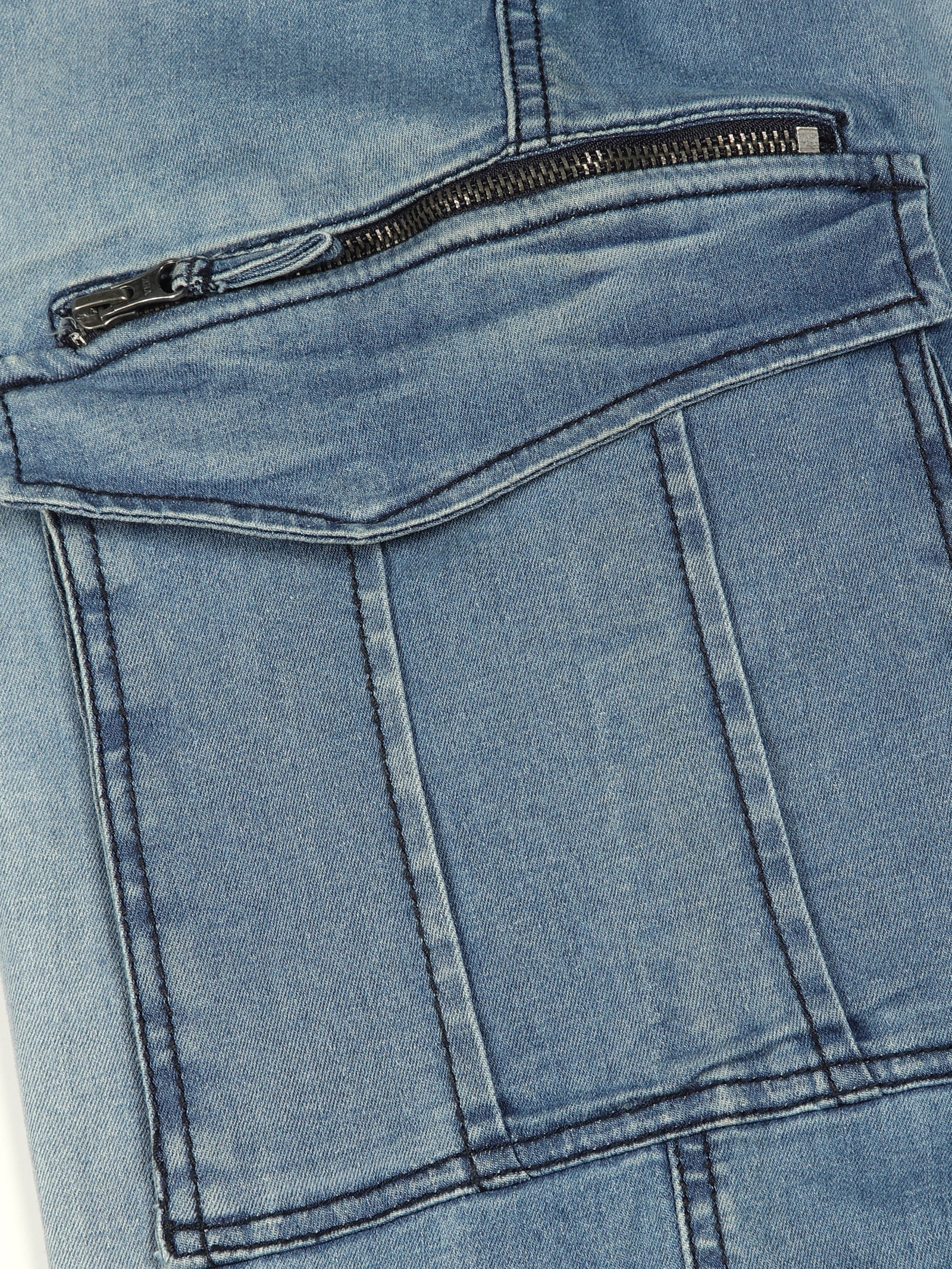 Multi Pocket Stretchable Light Blue Denim Cargo