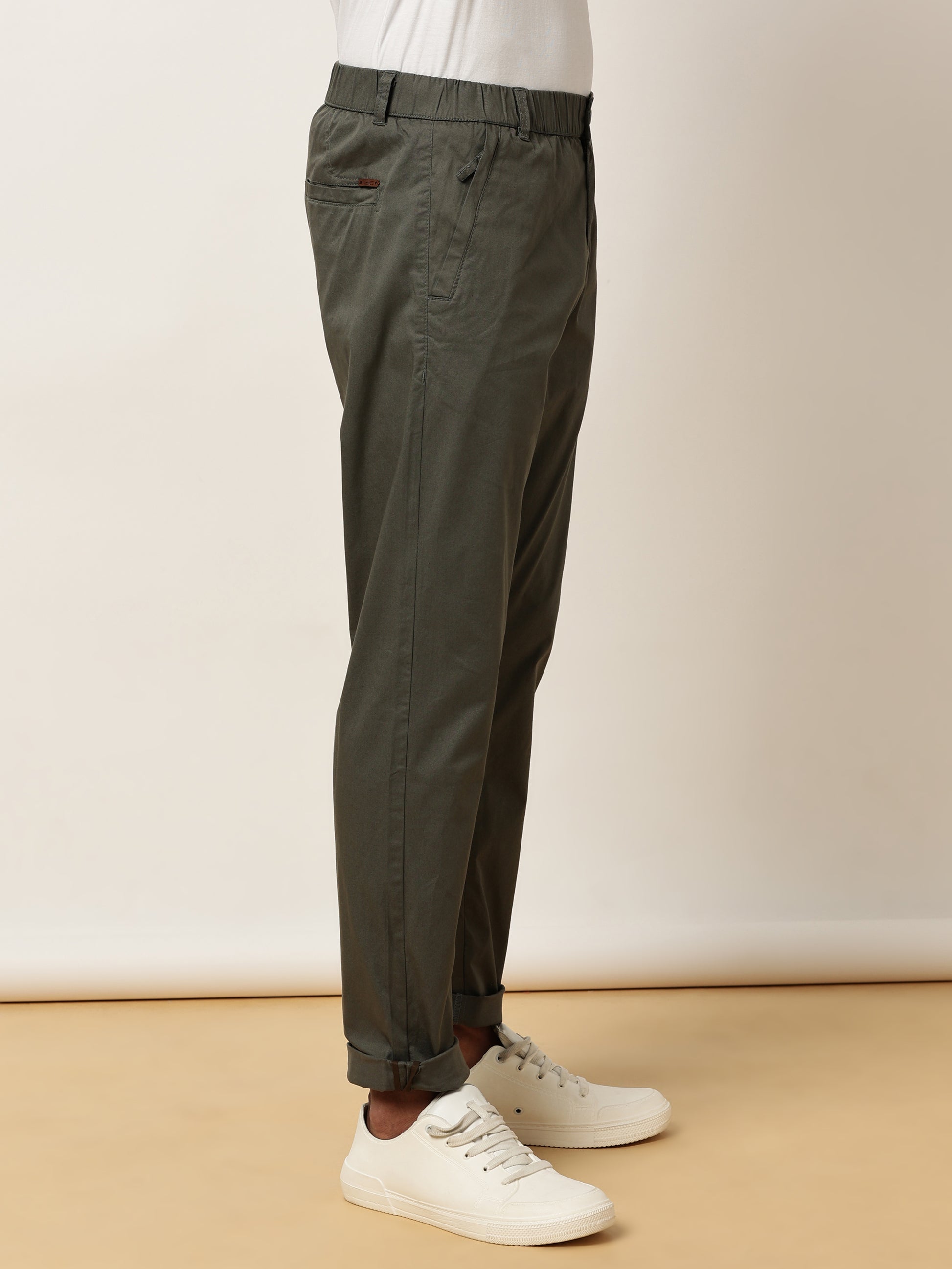 Olive Elasticated Waist Zip Pocket Stretchable Lounge Pants
