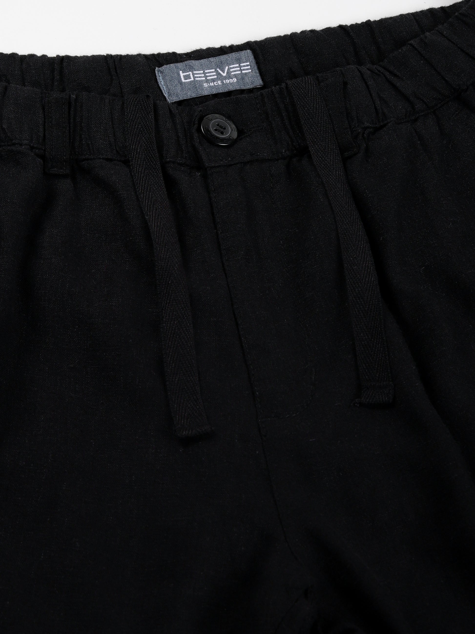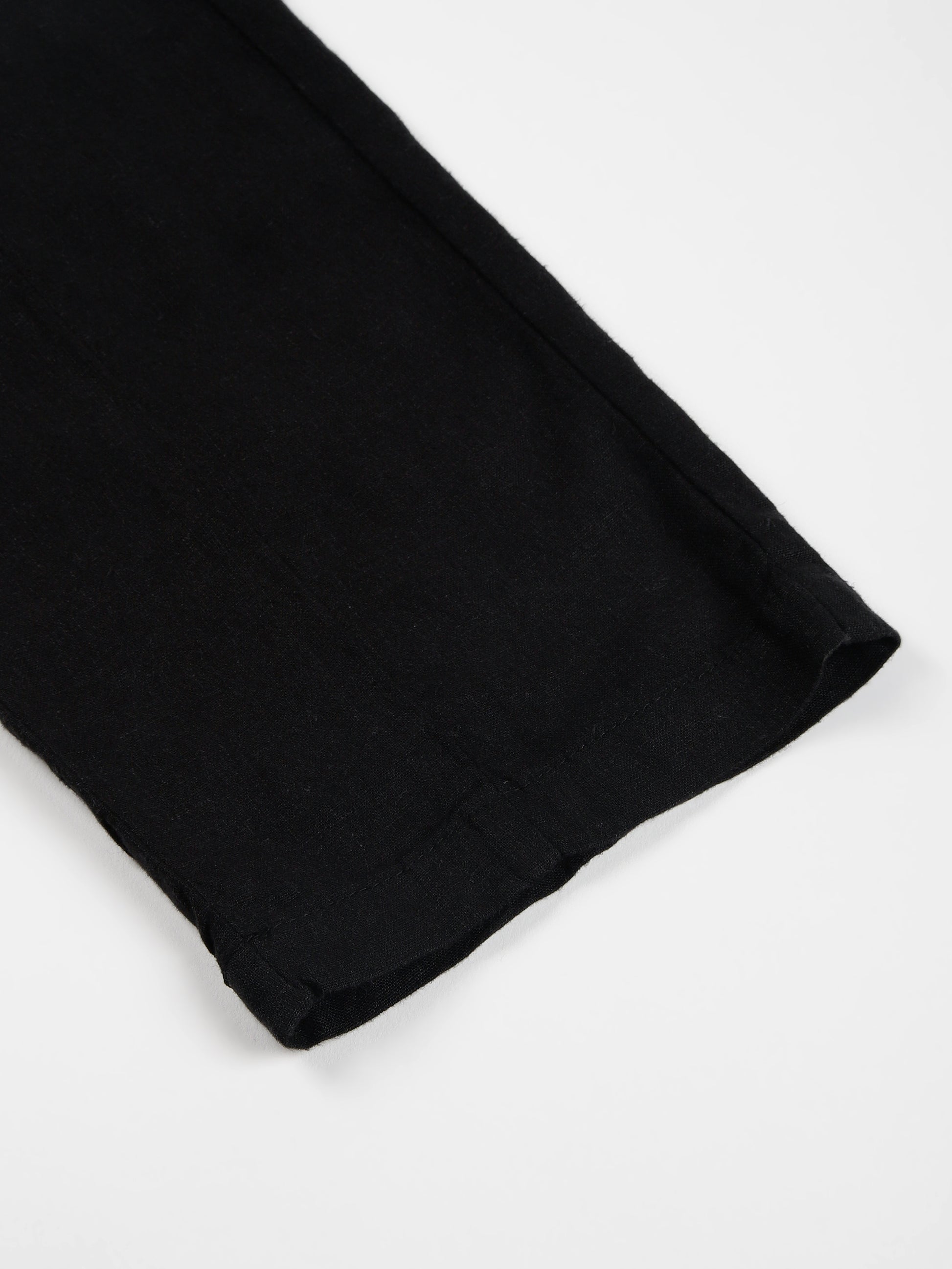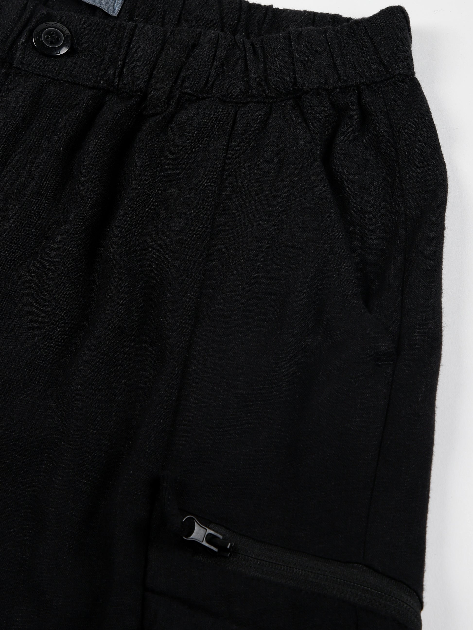 Linen Elasticated Waist Zip Pocket Black Lounge Pants