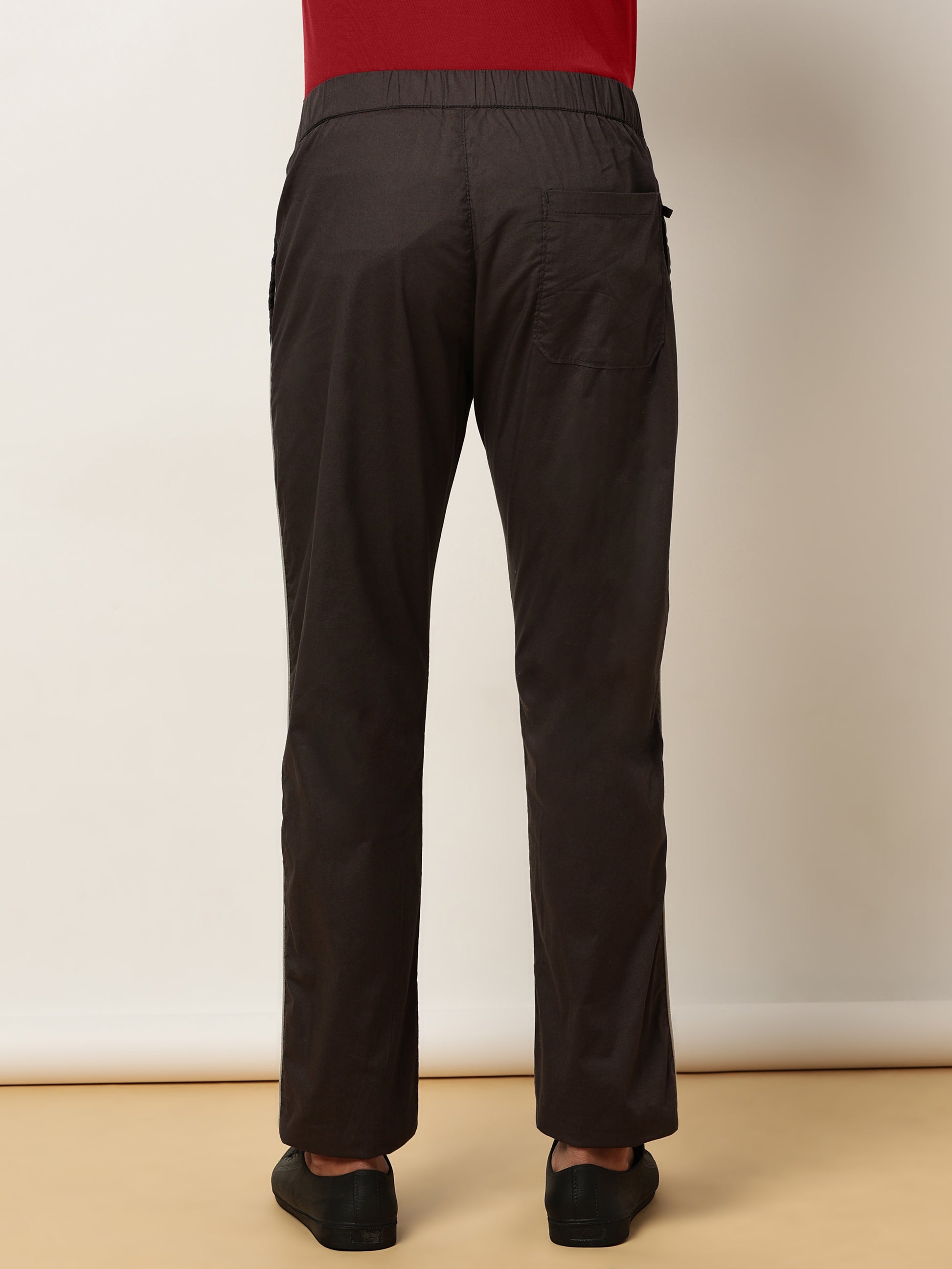Elasticated Waist Zip Pocket Stretchable Grey Lounge Pants with Side Tape