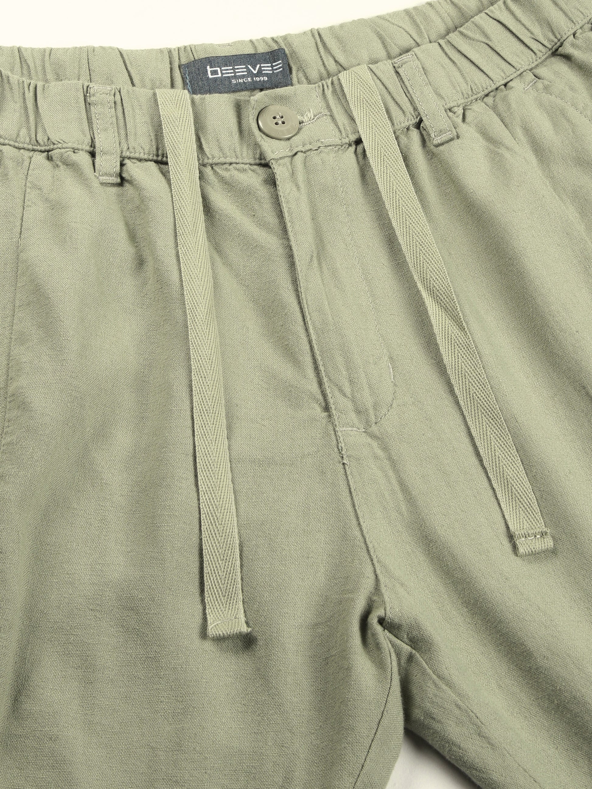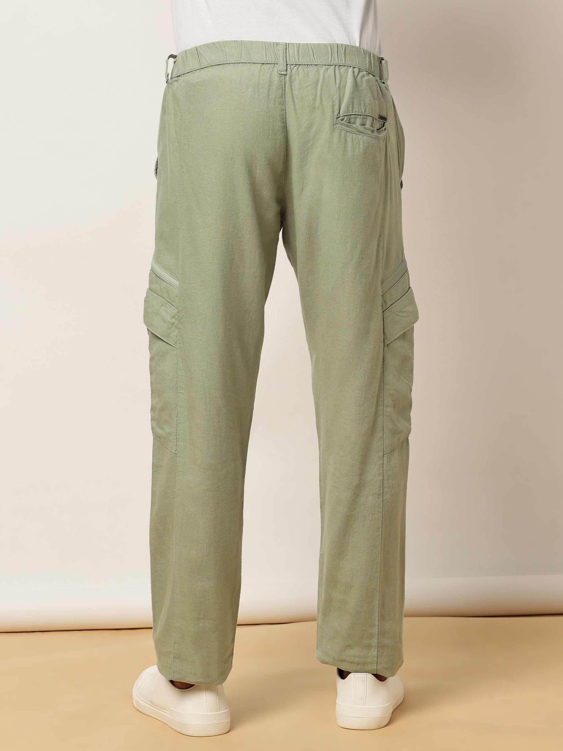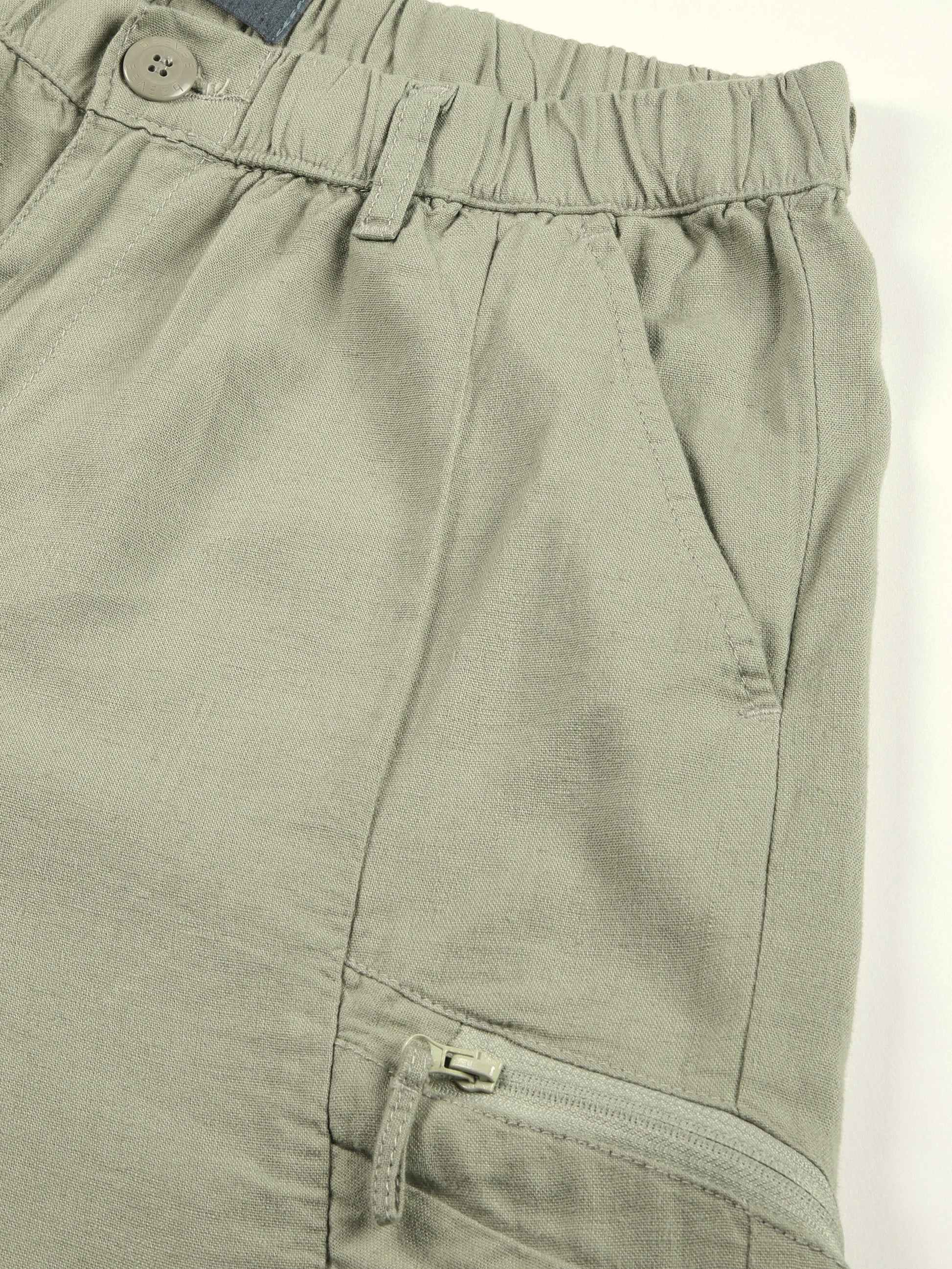 Linen Elasticated Waist Zip Pocket Green Lounge Pants