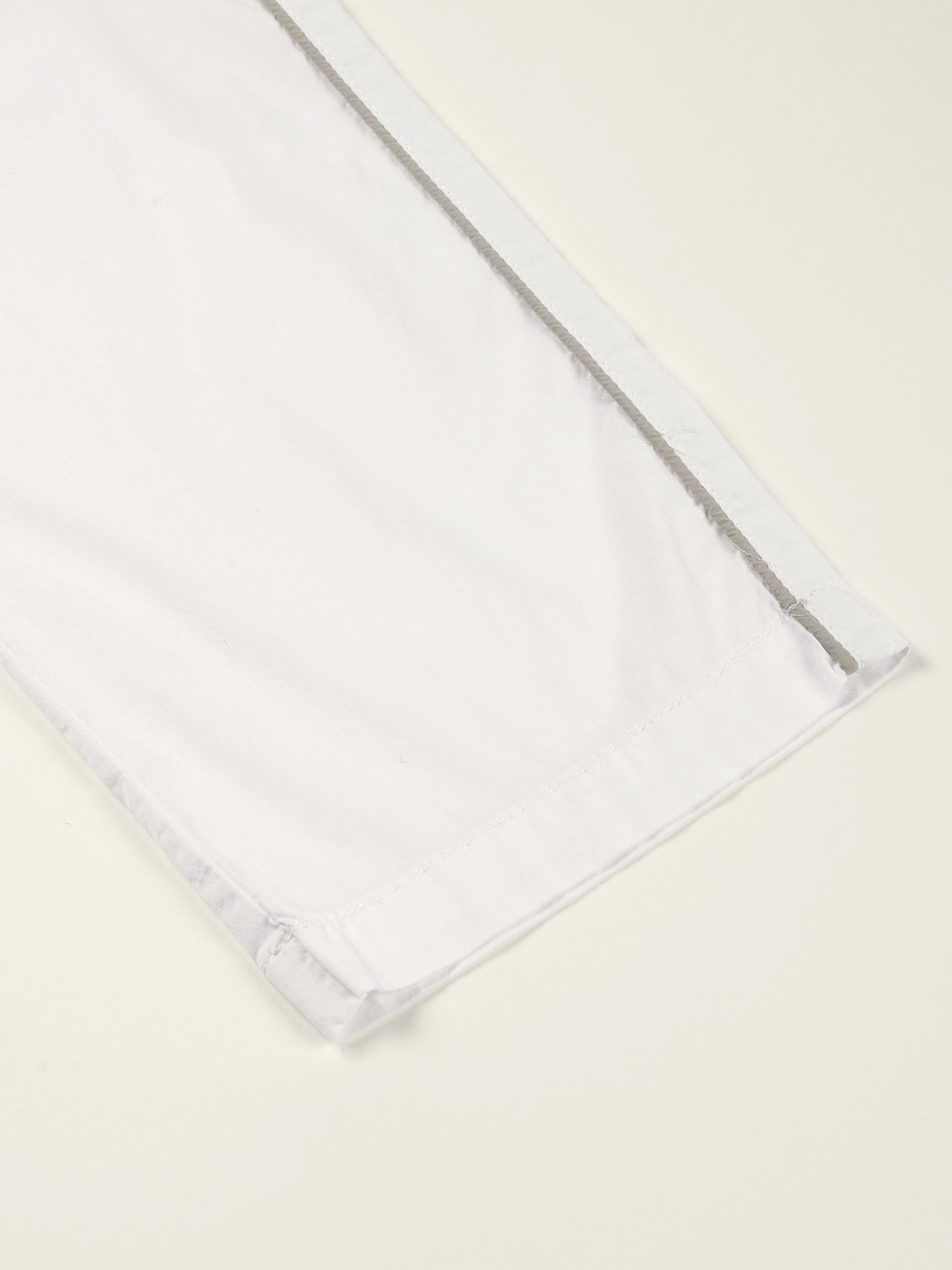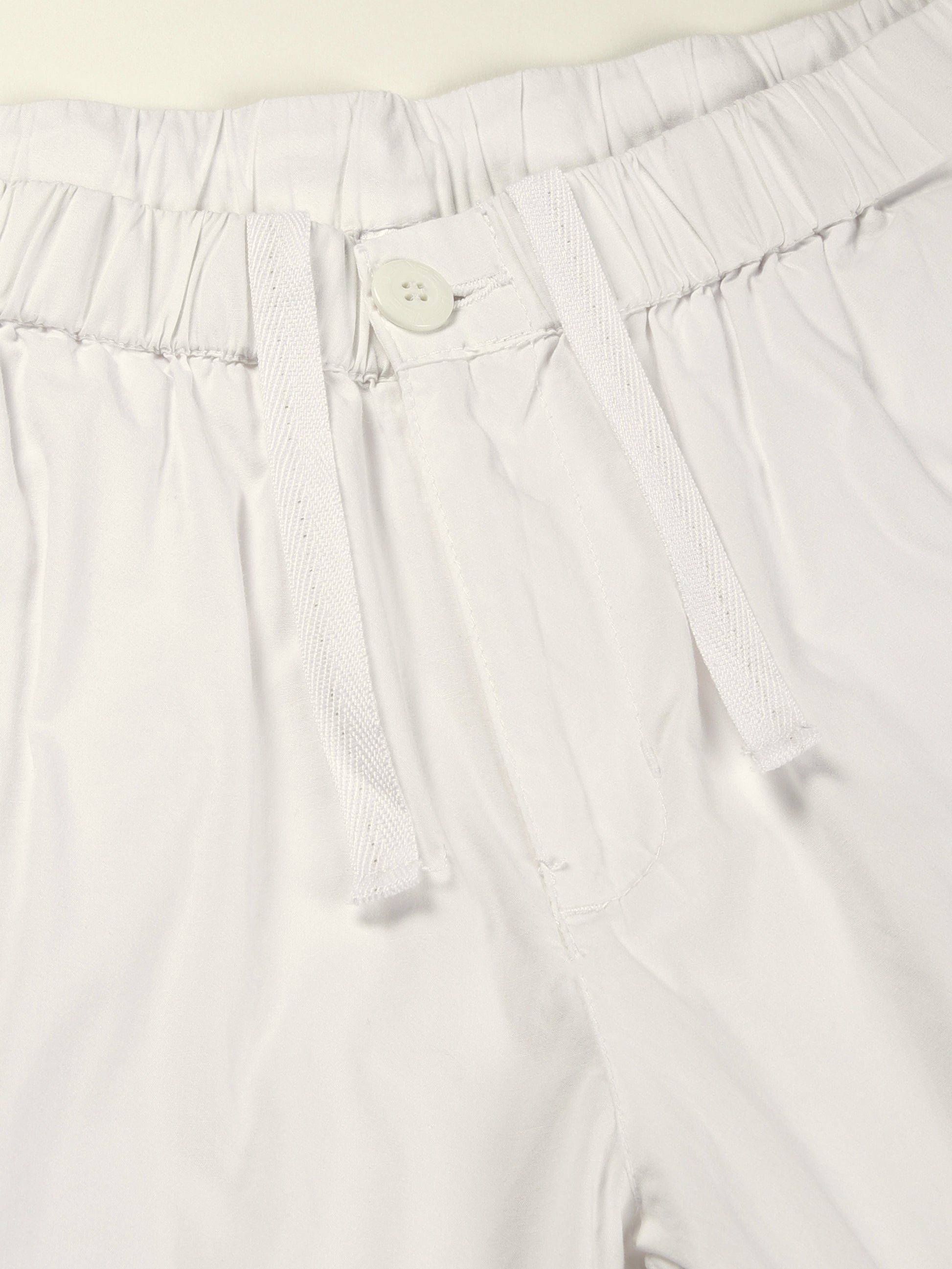 Elasticated Waist Zip Pocket Stretchable White Lounge Pants with Side Tape