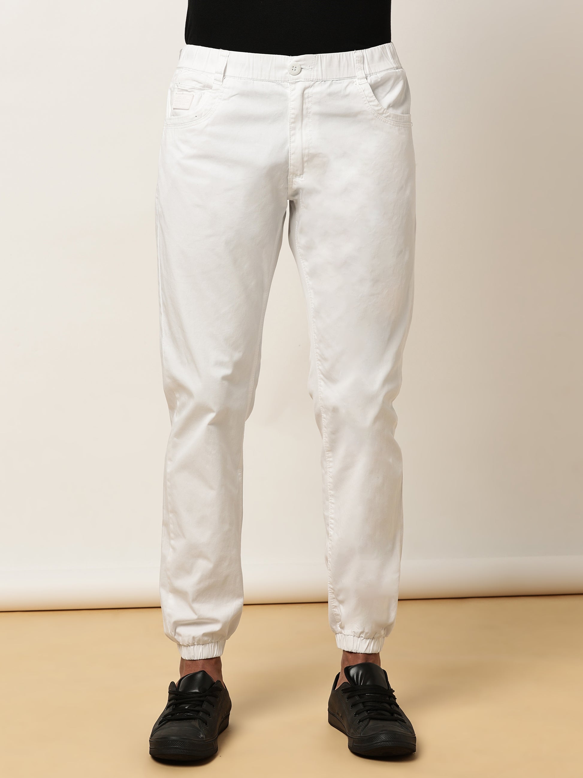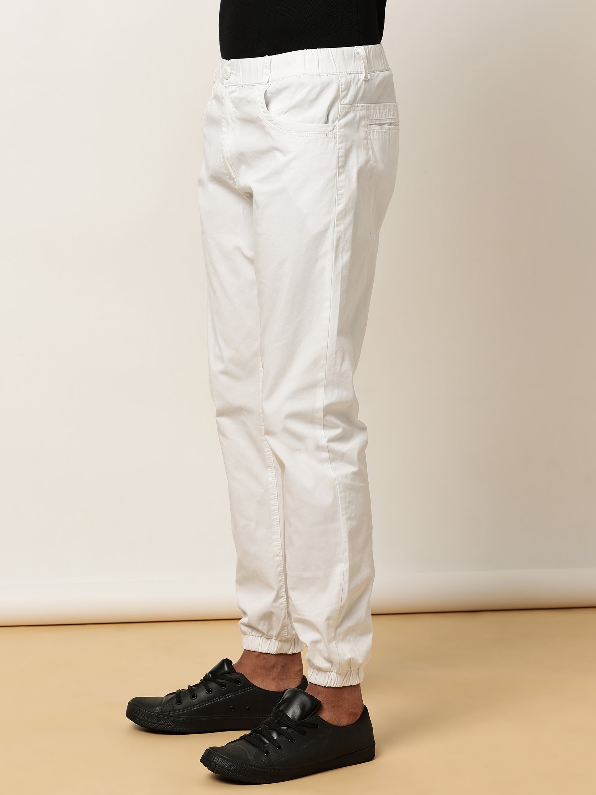 White Elasticated Waist Stretchable Jogger Lounge Pants