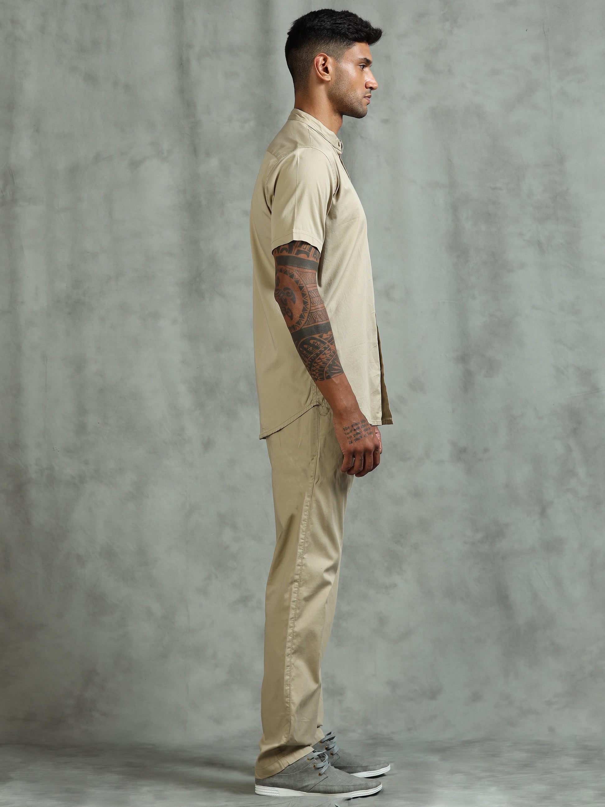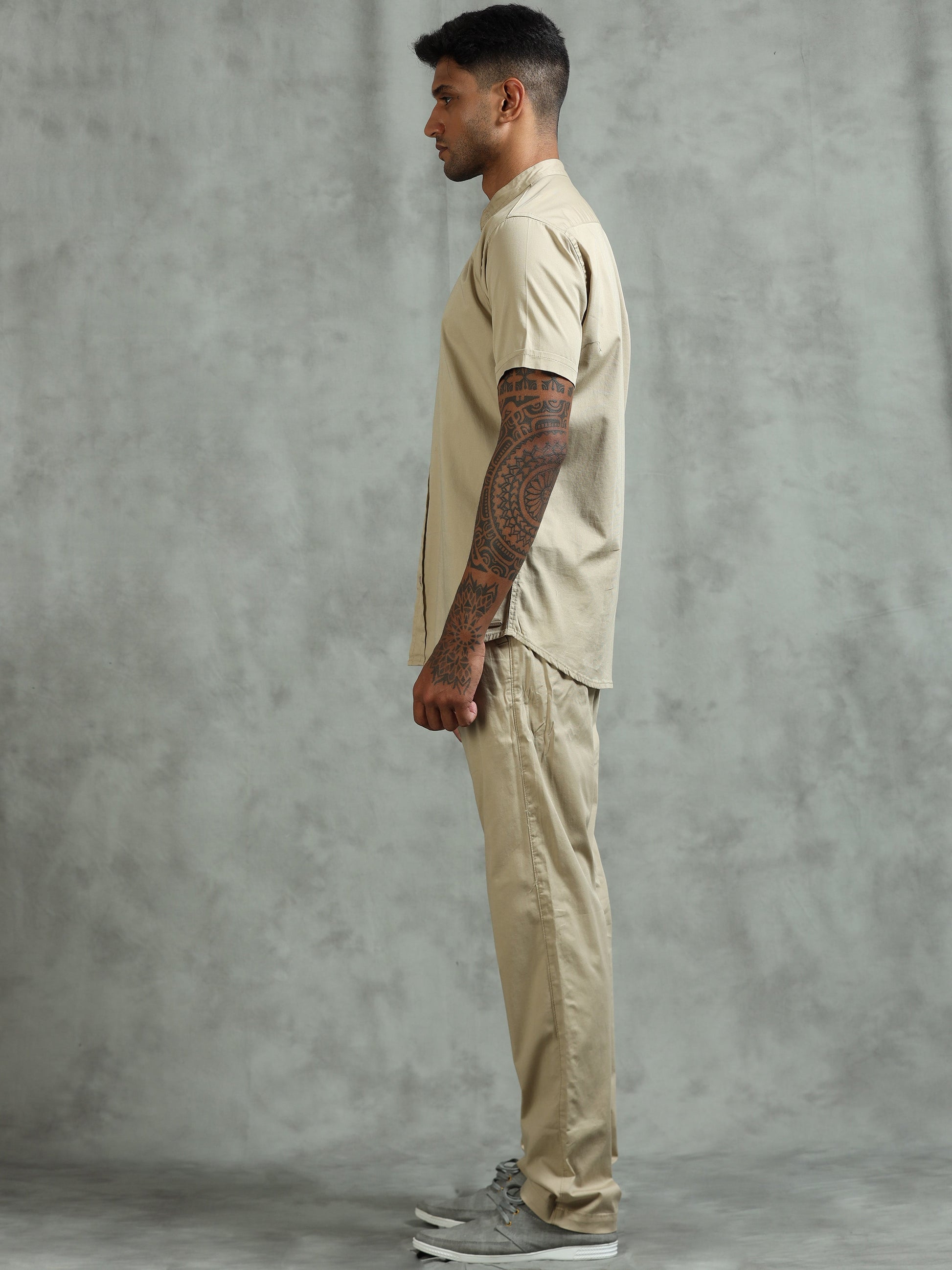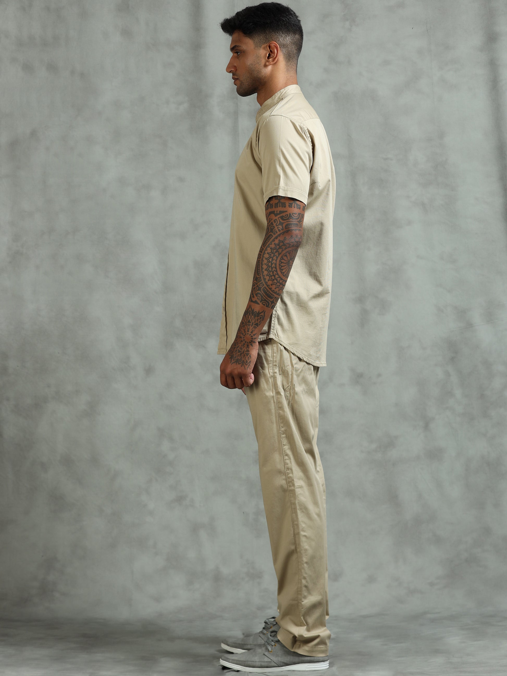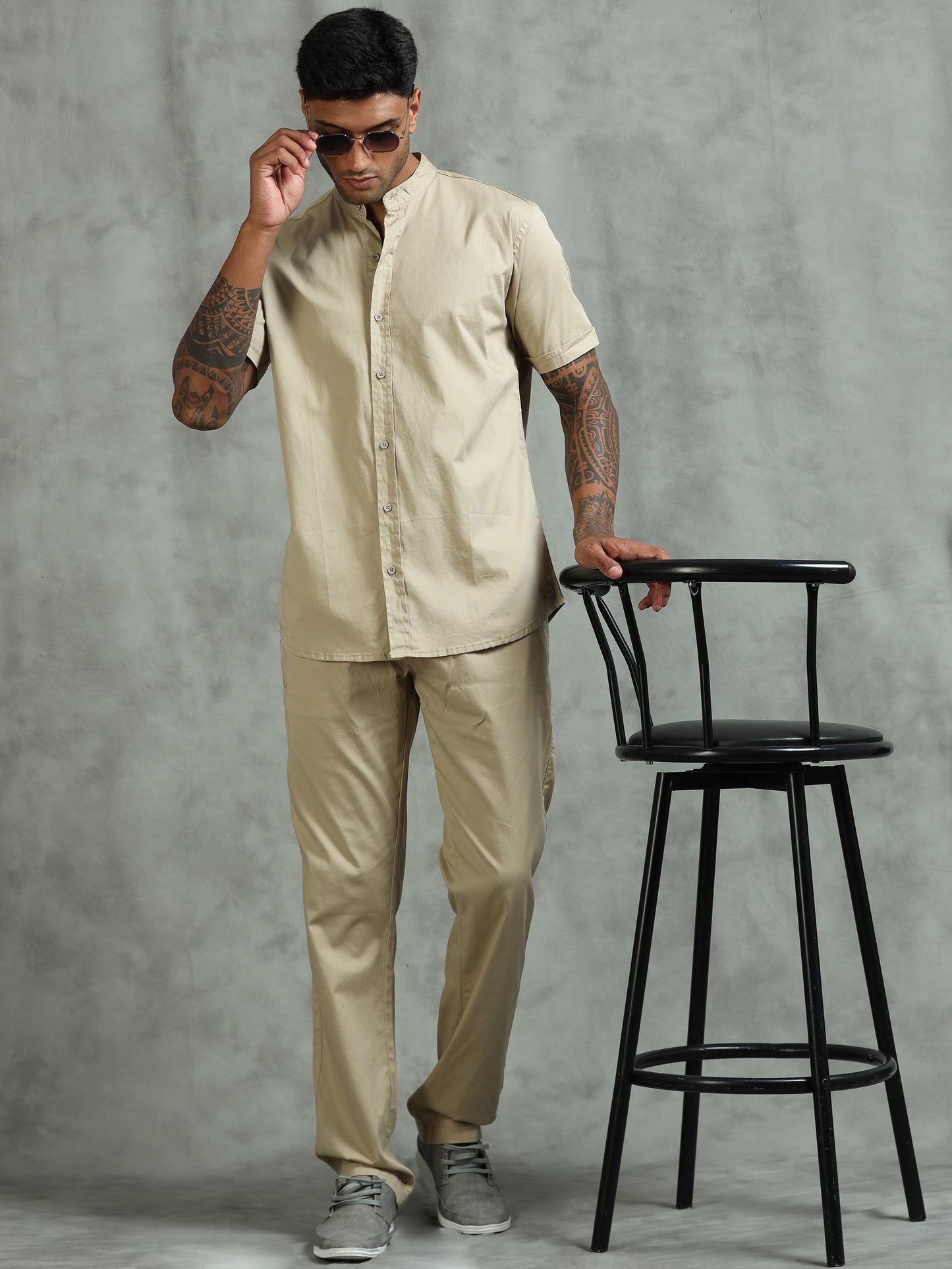 Beige Regular Fit Half Sleeve Solid Casual Co-ord Sets