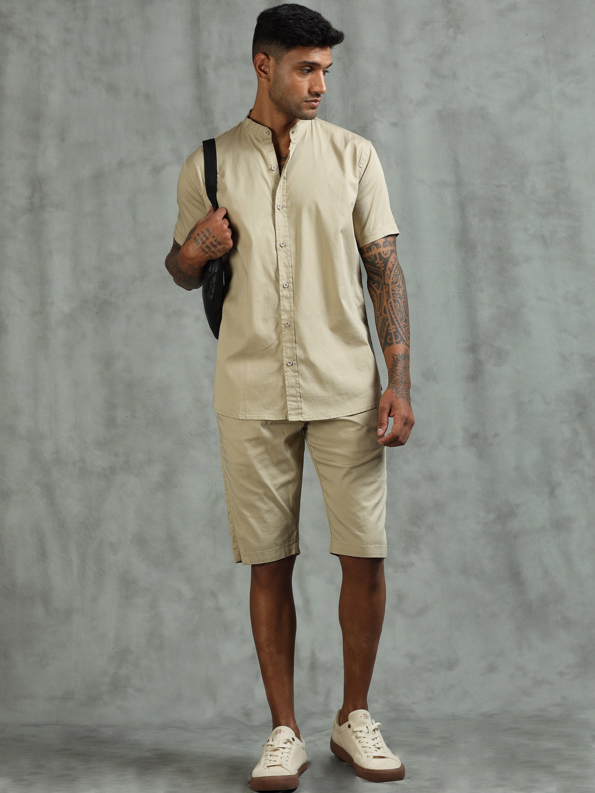 Beige Regular Fit Solid Co-ord Sets