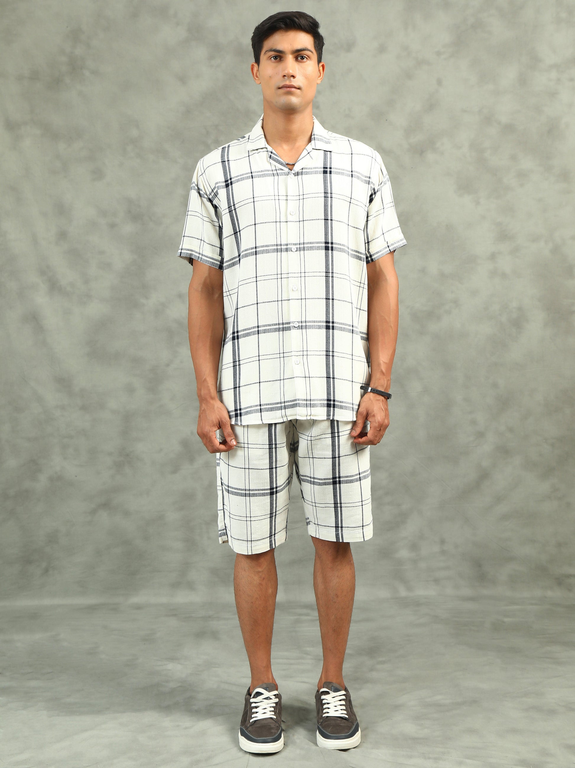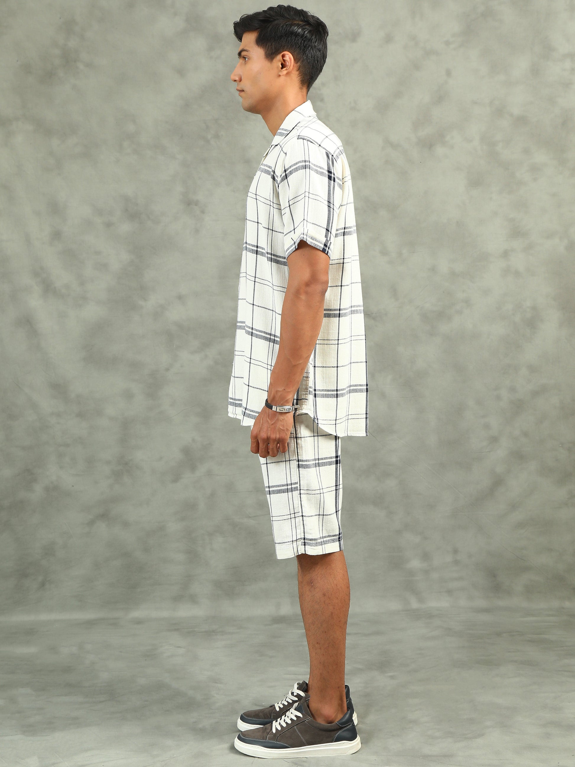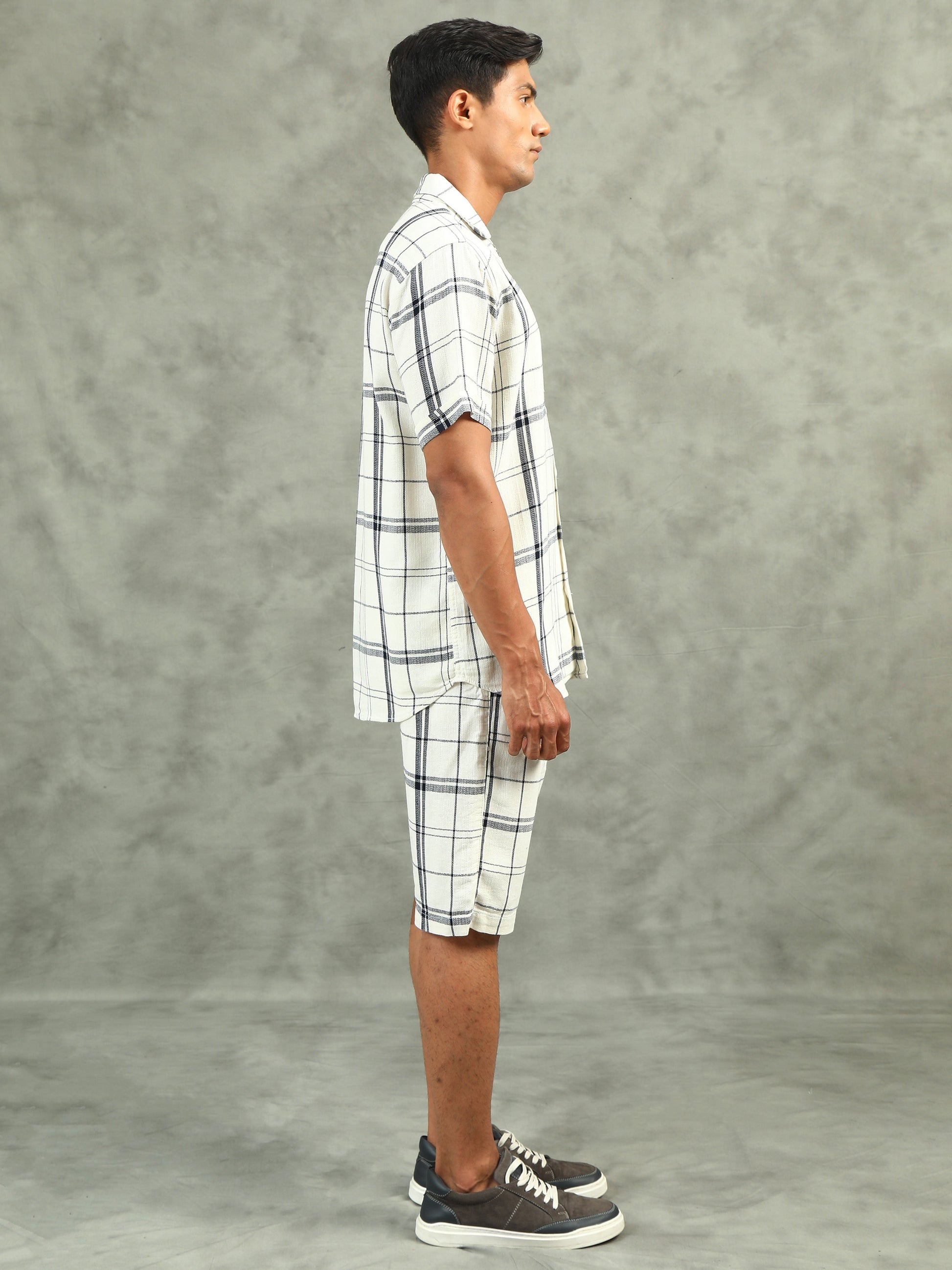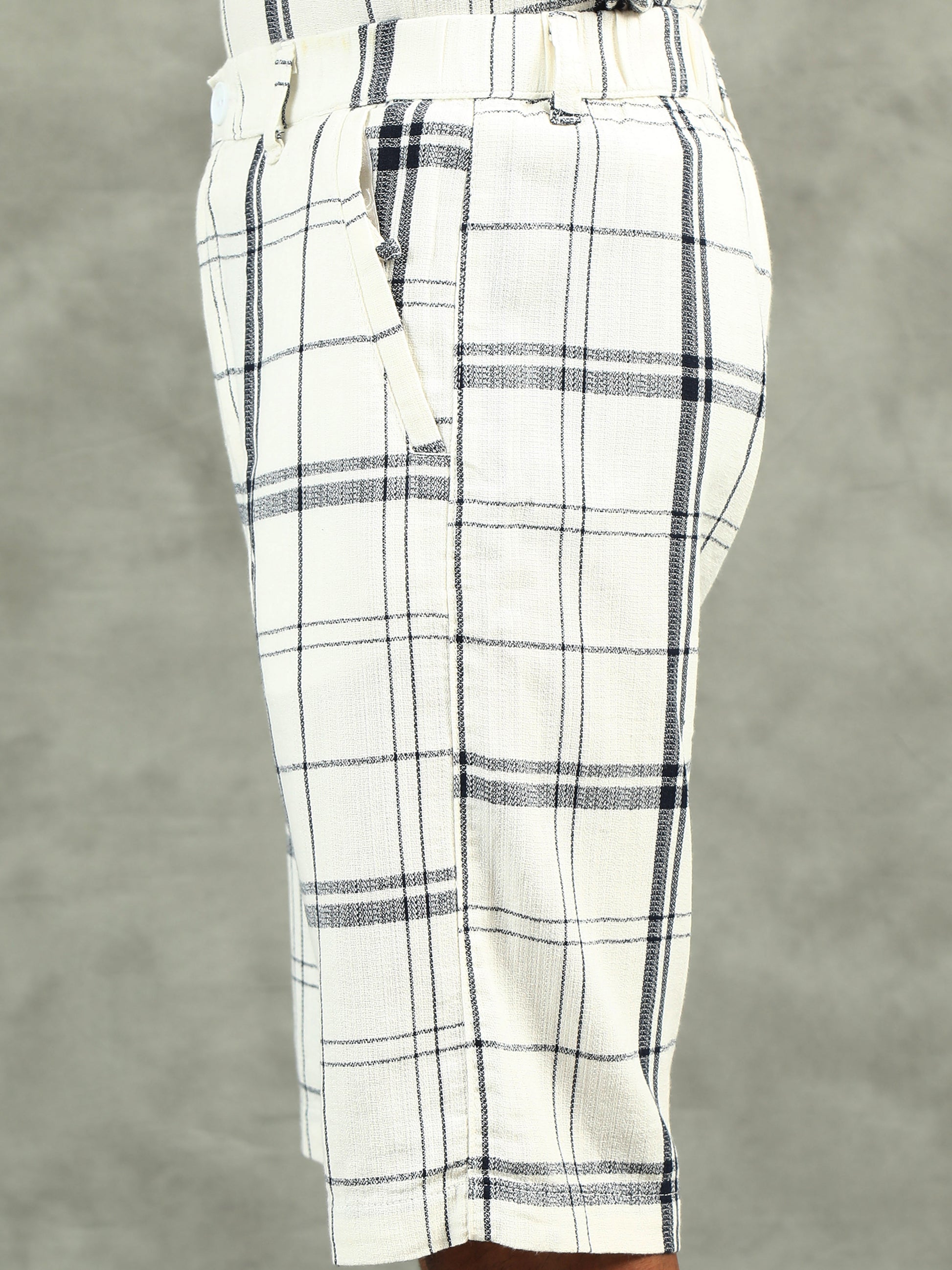 Checkered White Regular Fit Knee-Length Casual Co-ord Set