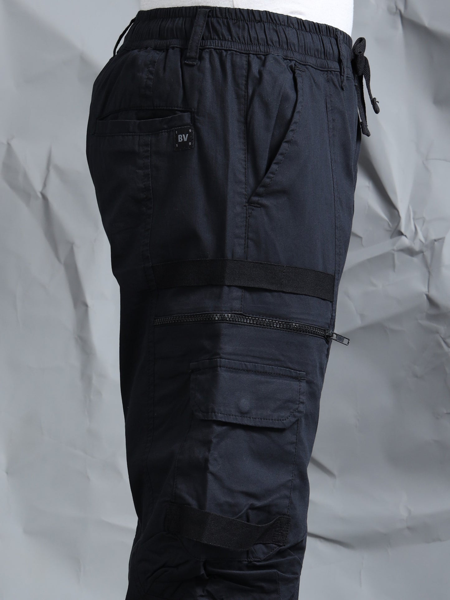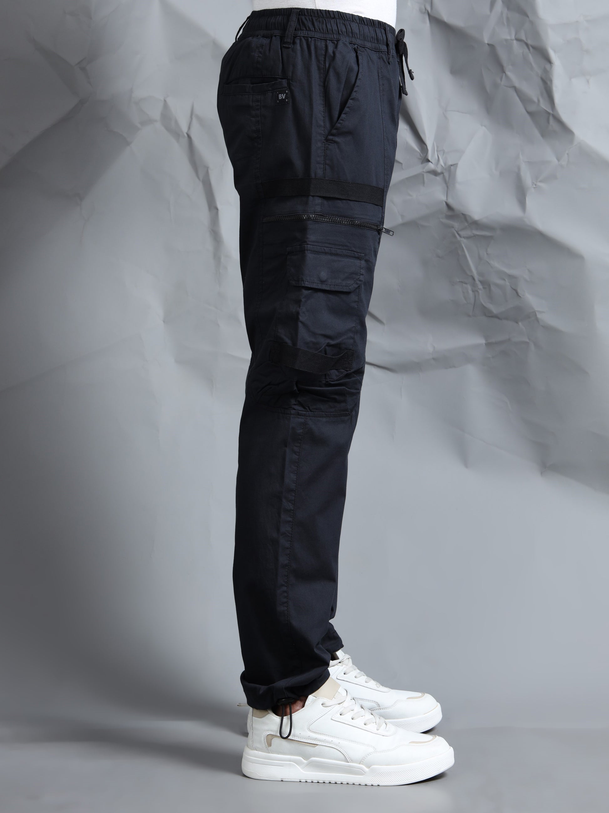 Cotton Blend Black Cargo Pant with 6 Pockets