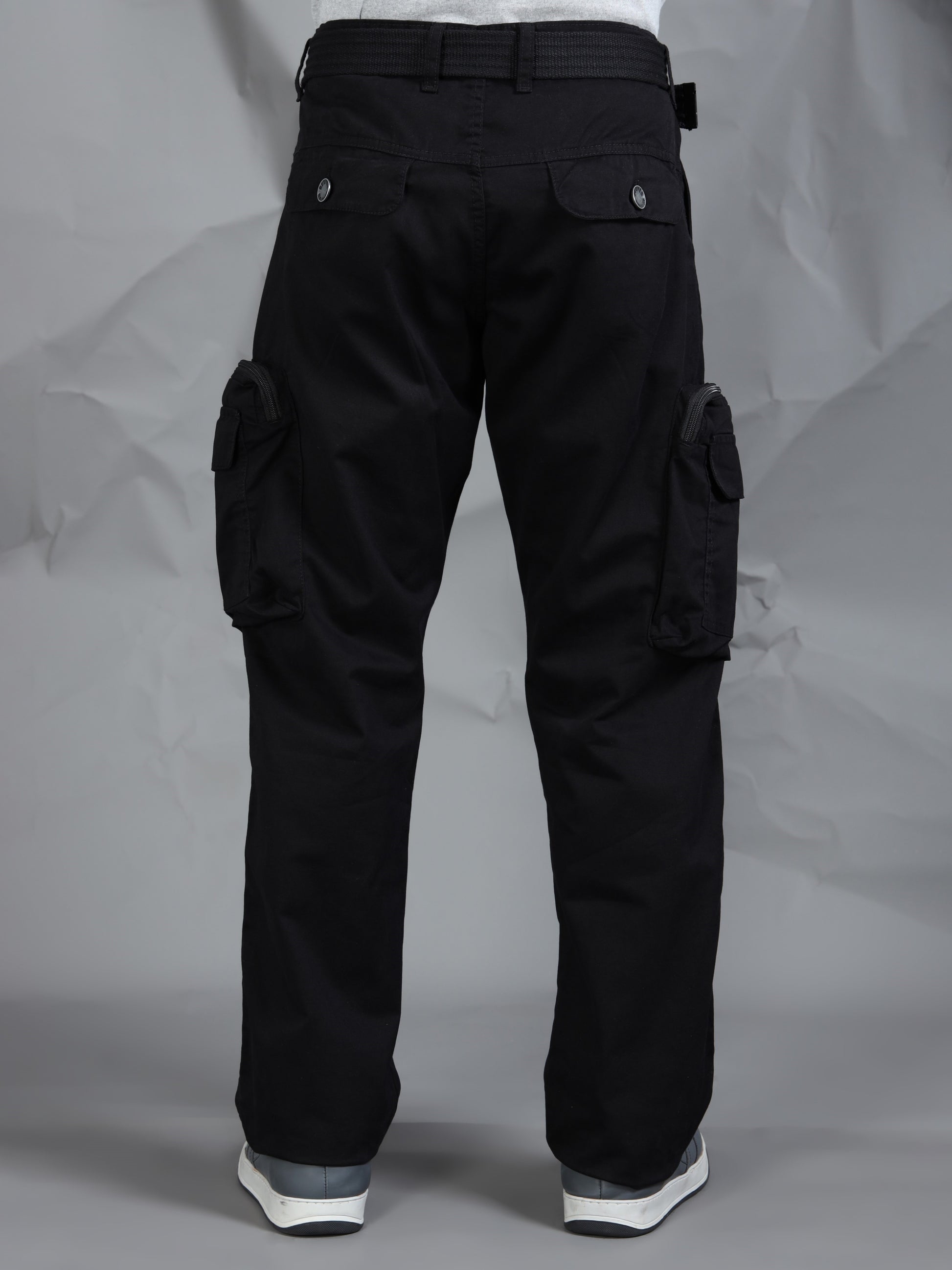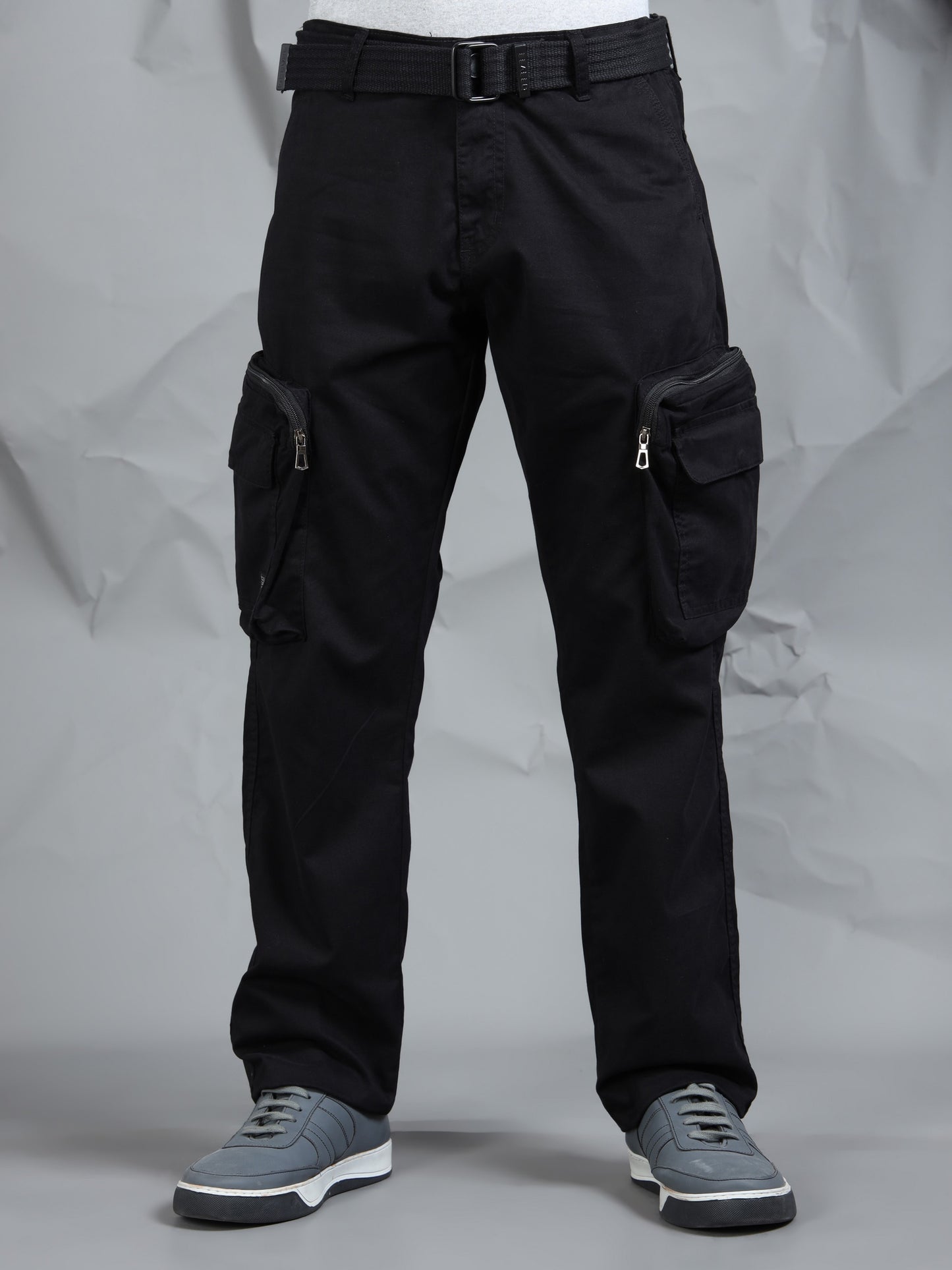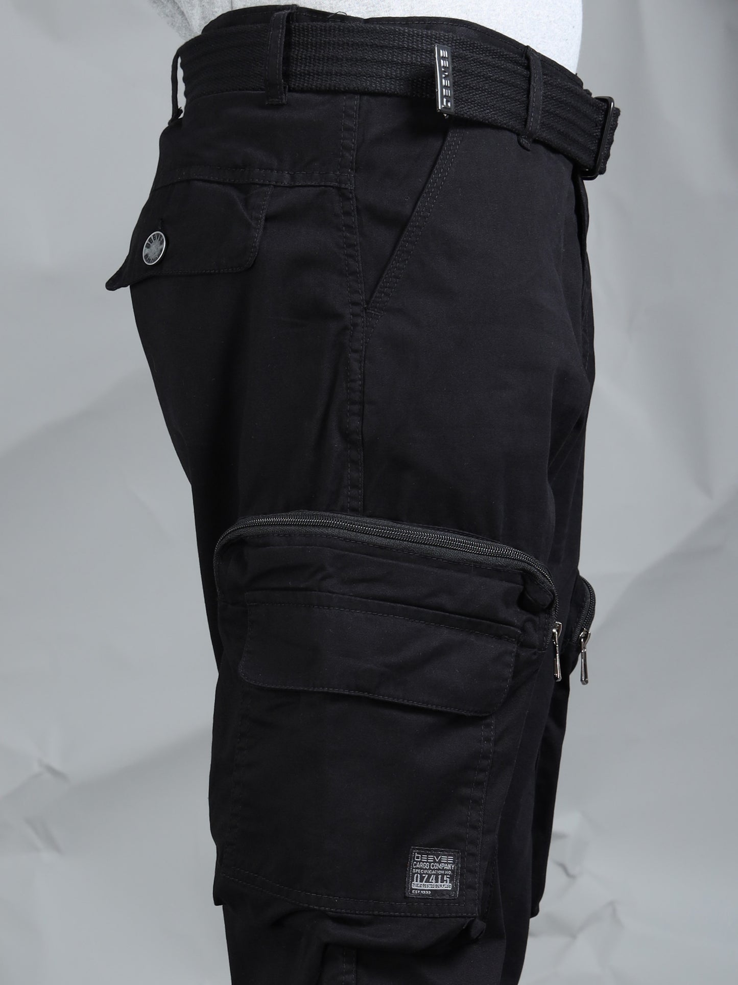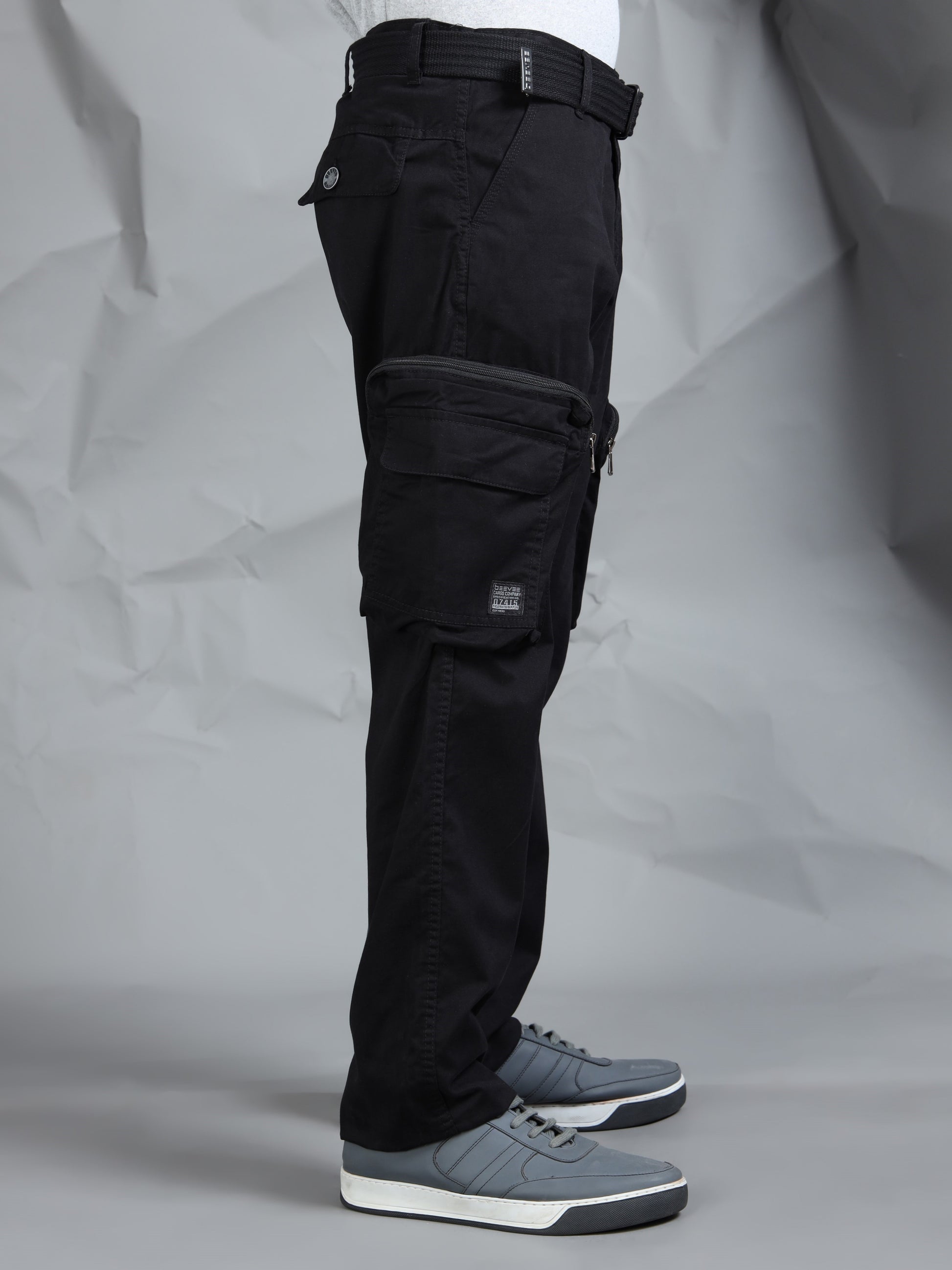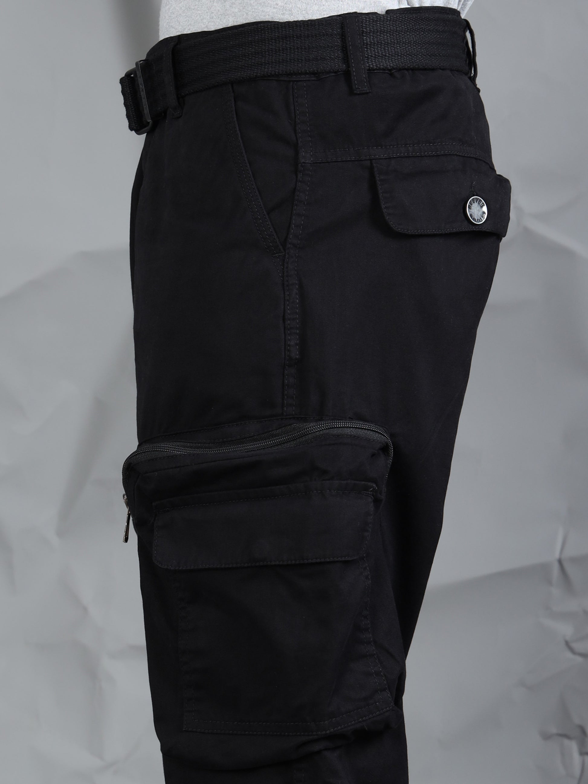 Cotton Lycra Black Mid Rise Cargo Pant with 8 Pockets