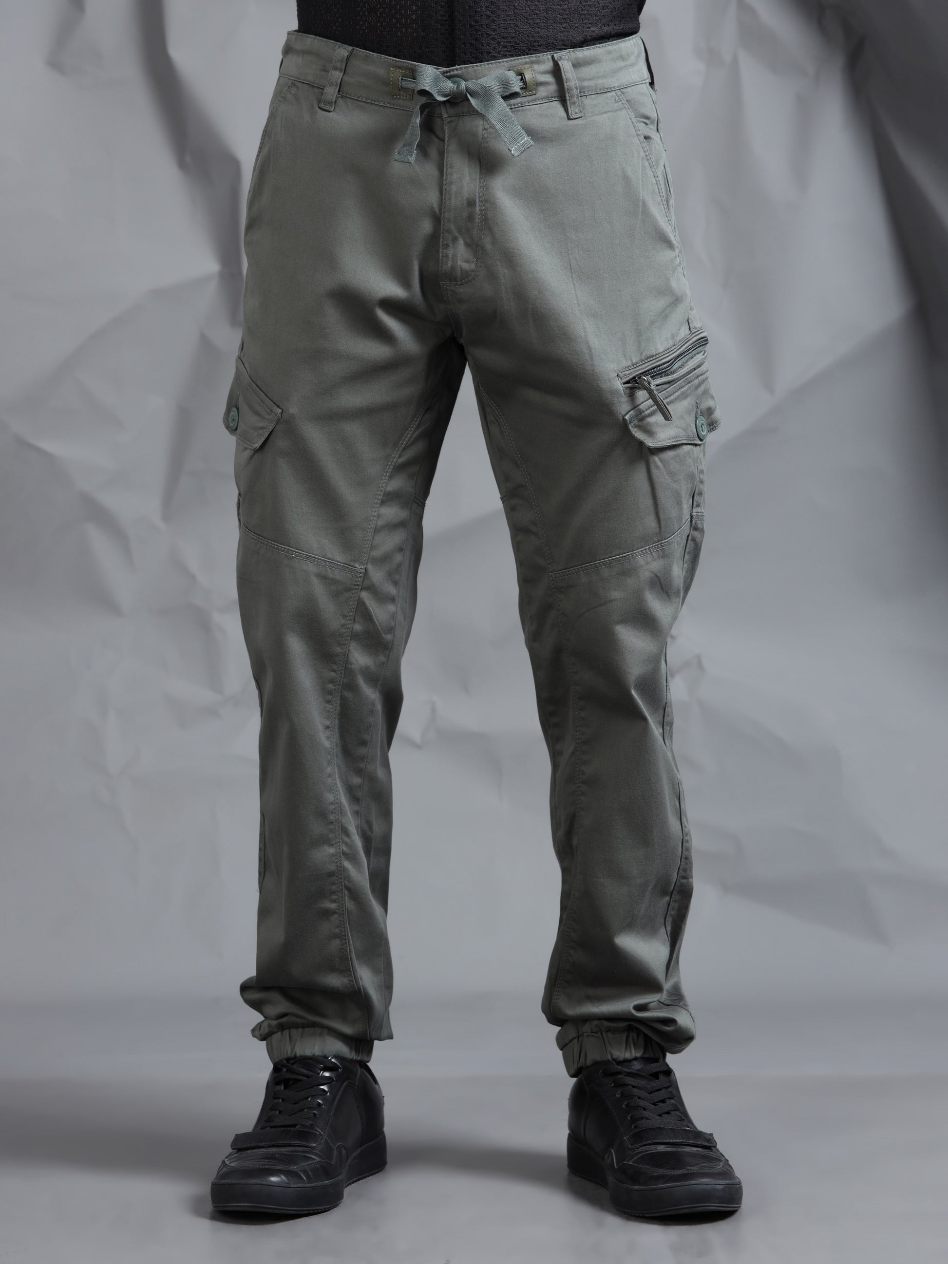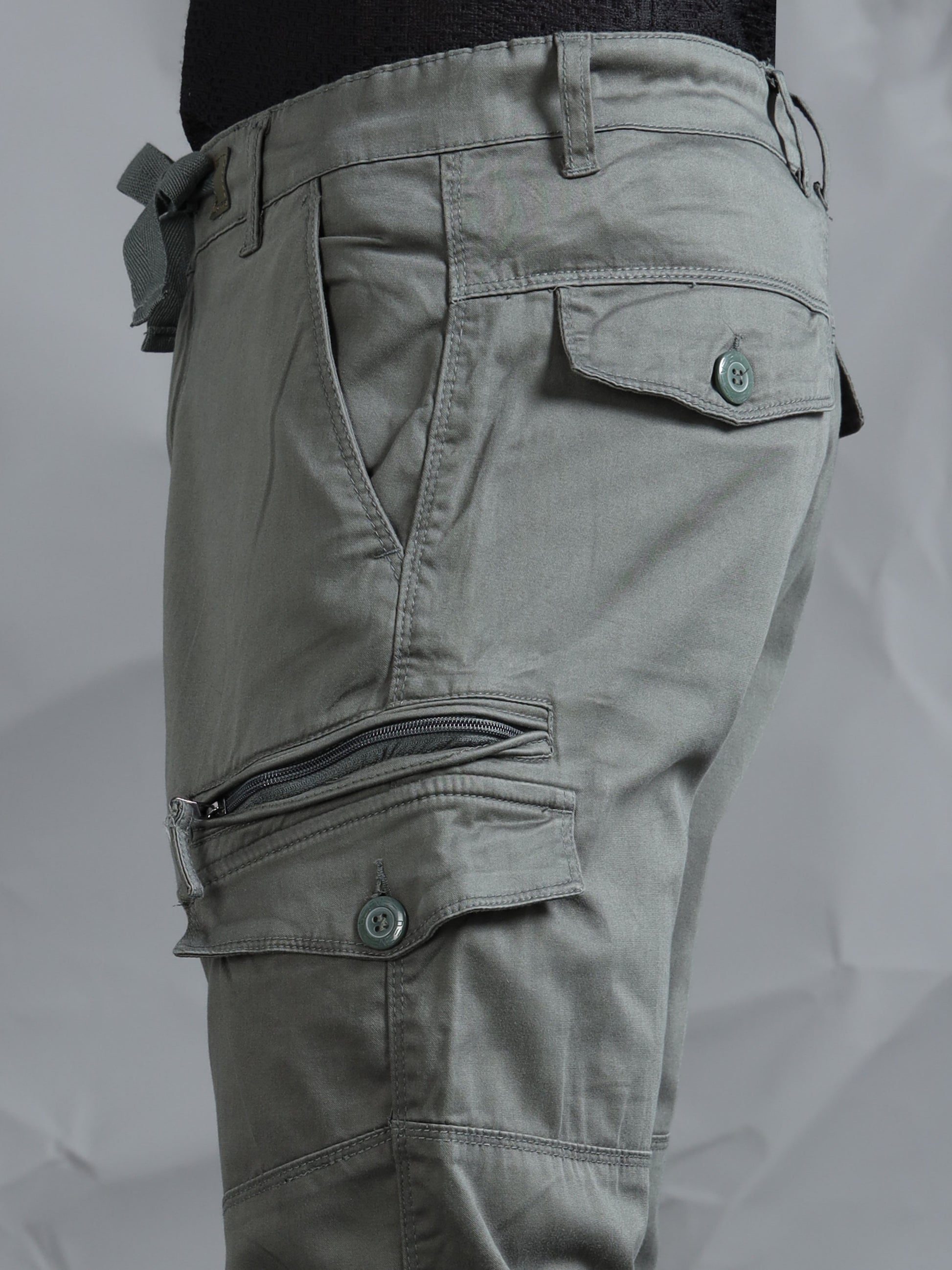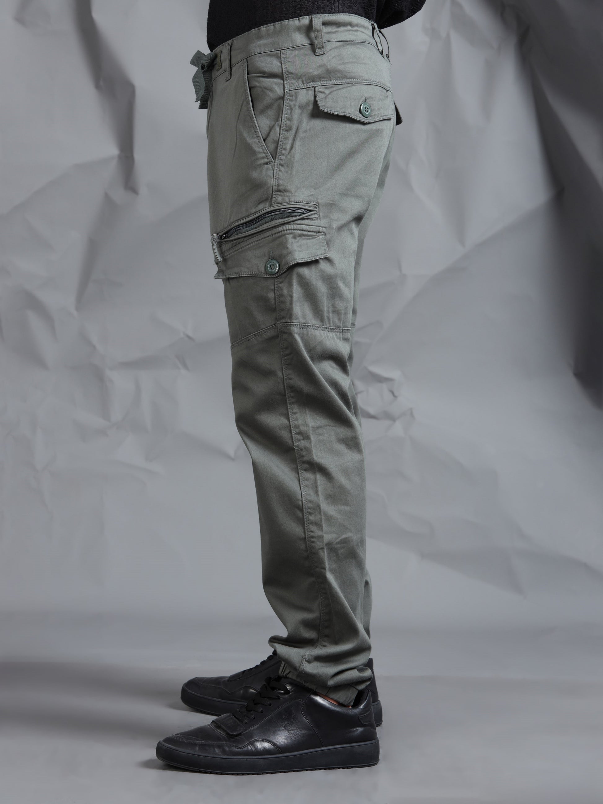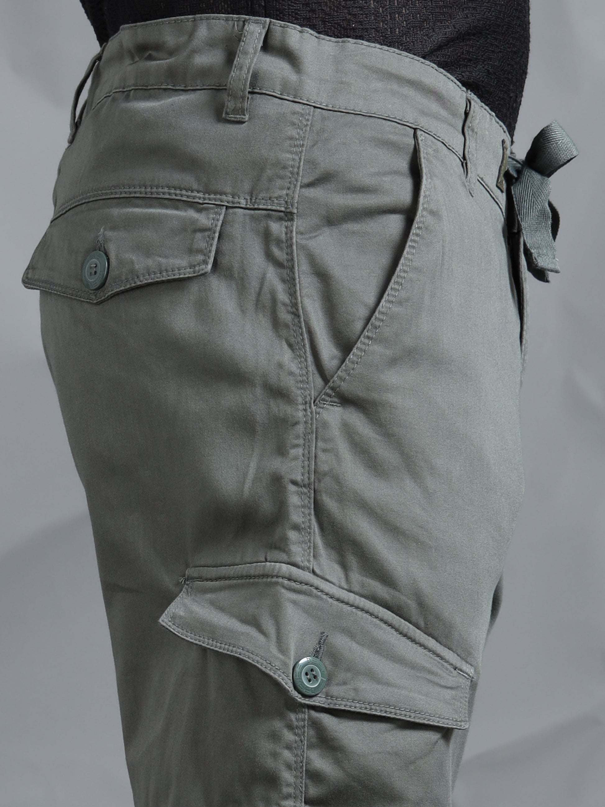 Cotton Lycra Green Cargo Pants with 7 Pockets