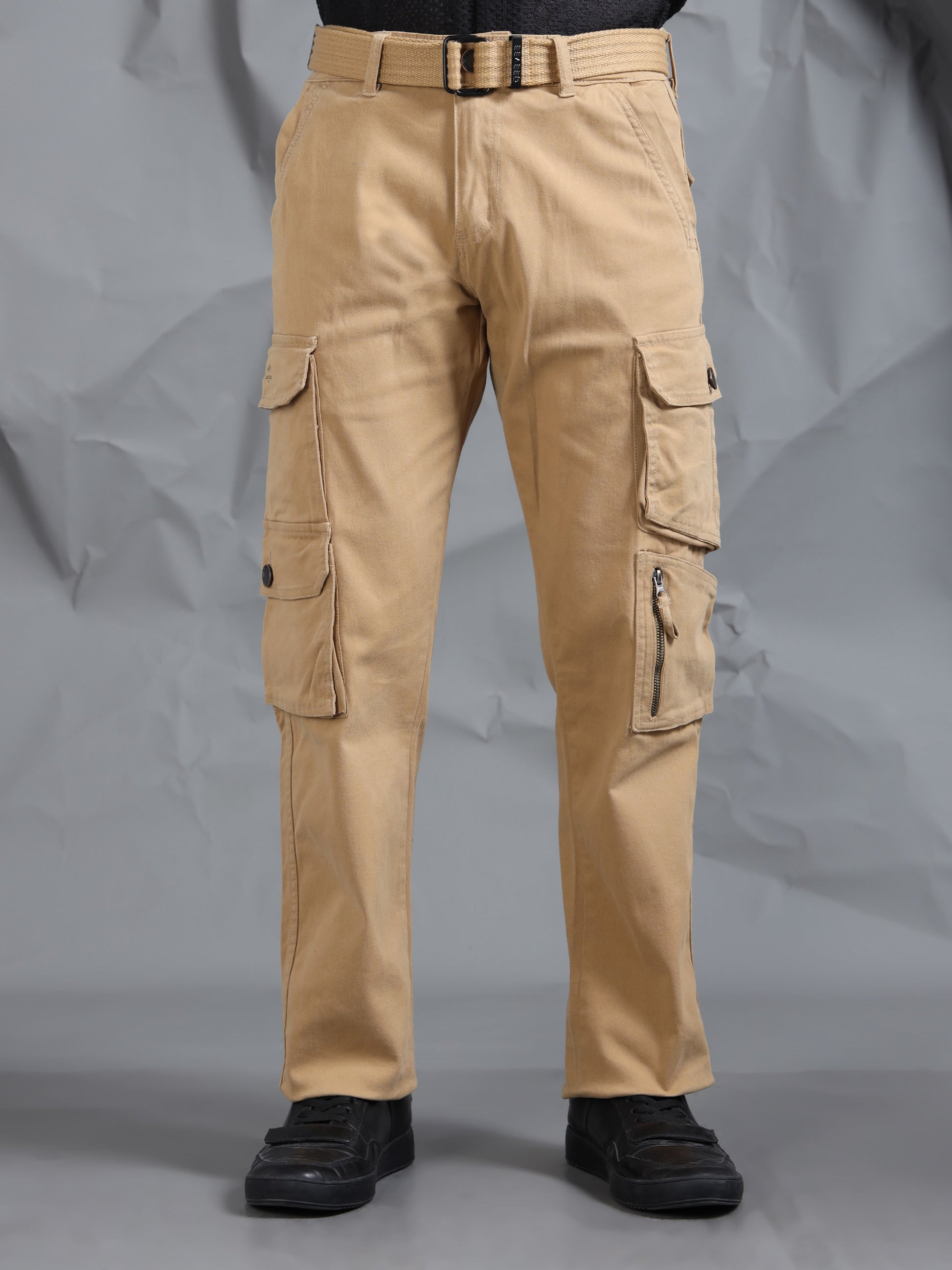 Stay comfortable and stylish with the Beevee Men’s Regular Fit Cotton Lycra Solid Mid Rise Cargo Pant with Canvas Belt. Made from a premium cotton blend with lycra, it offers flexibility, breathability, and long-lasting comfort. Featuring a fixed waistband with a matching canvas belt, it ensures a secure and polished fit. With 8 functional pockets, this cargo pant provides ample storage space while maintaining a smart look. Its regular fit and mid-rise design make it ideal for everyday wear, travel, and casual occasions. The classic solid color adds versatility, allowing easy pairing with your favorite shirts or t-shirts.