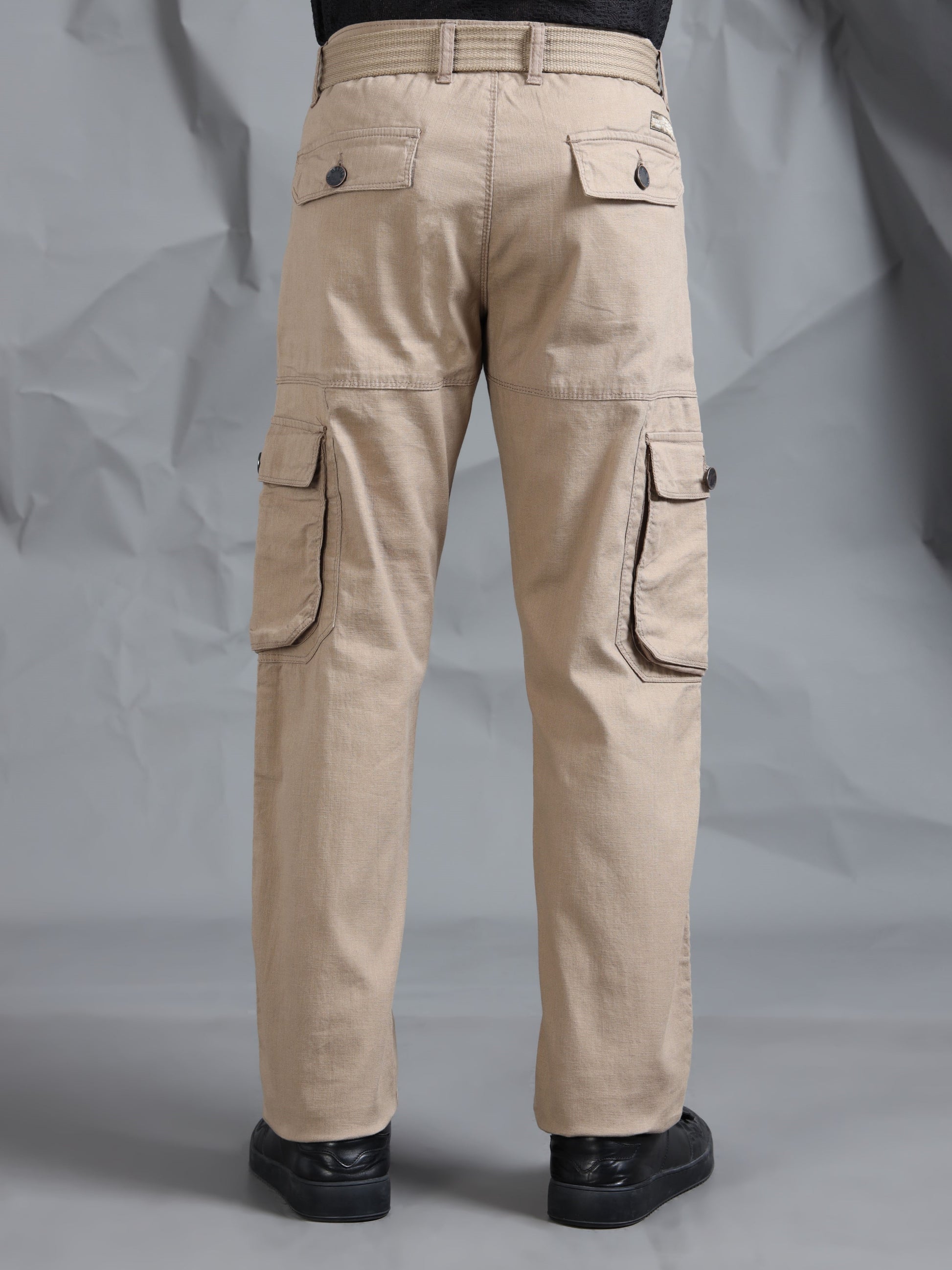 The Beevee Men’s Regular Fit Cotton Lycra Solid Mid Rise Cargo Pant with Canvas Belt is designed for those who value both utility and style. Made from a durable cotton blend with lycra, it offers the right balance of stretch, breathability, and comfort. Equipped with 8 functional pockets, these cargos provide ample storage for essentials, making them practical for casual outings, travel, or outdoor activities. The fixed waistband with a stylish canvas belt ensures a secure fit and adds a fashionable touch. With its regular fit, mid-rise cut, and solid design, this versatile cargo pant pairs effortlessly with t-shirts, polos, or casual shirts for a smart everyday look.