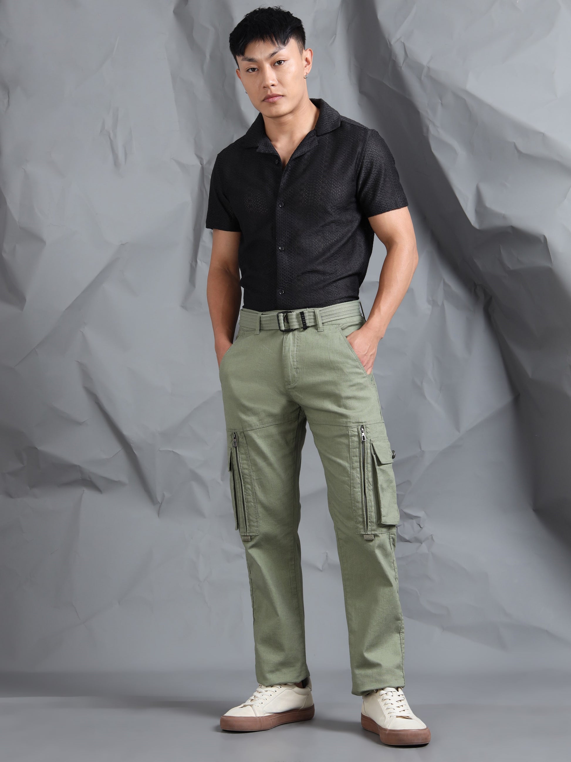 The Beevee Men’s Regular Fit Cotton Lycra Solid Mid Rise Cargo Pant with Canvas Belt is designed for those who value both utility and style. Made from a durable cotton blend with lycra, it offers the right balance of stretch, breathability, and comfort. Equipped with 8 functional pockets, these cargos provide ample storage for essentials, making them practical for casual outings, travel, or outdoor activities. The fixed waistband with a stylish canvas belt ensures a secure fit and adds a fashionable touch. With its regular fit, mid-rise cut, and solid design, this versatile cargo pant pairs effortlessly with t-shirts, polos, or casual shirts for a smart everyday look.