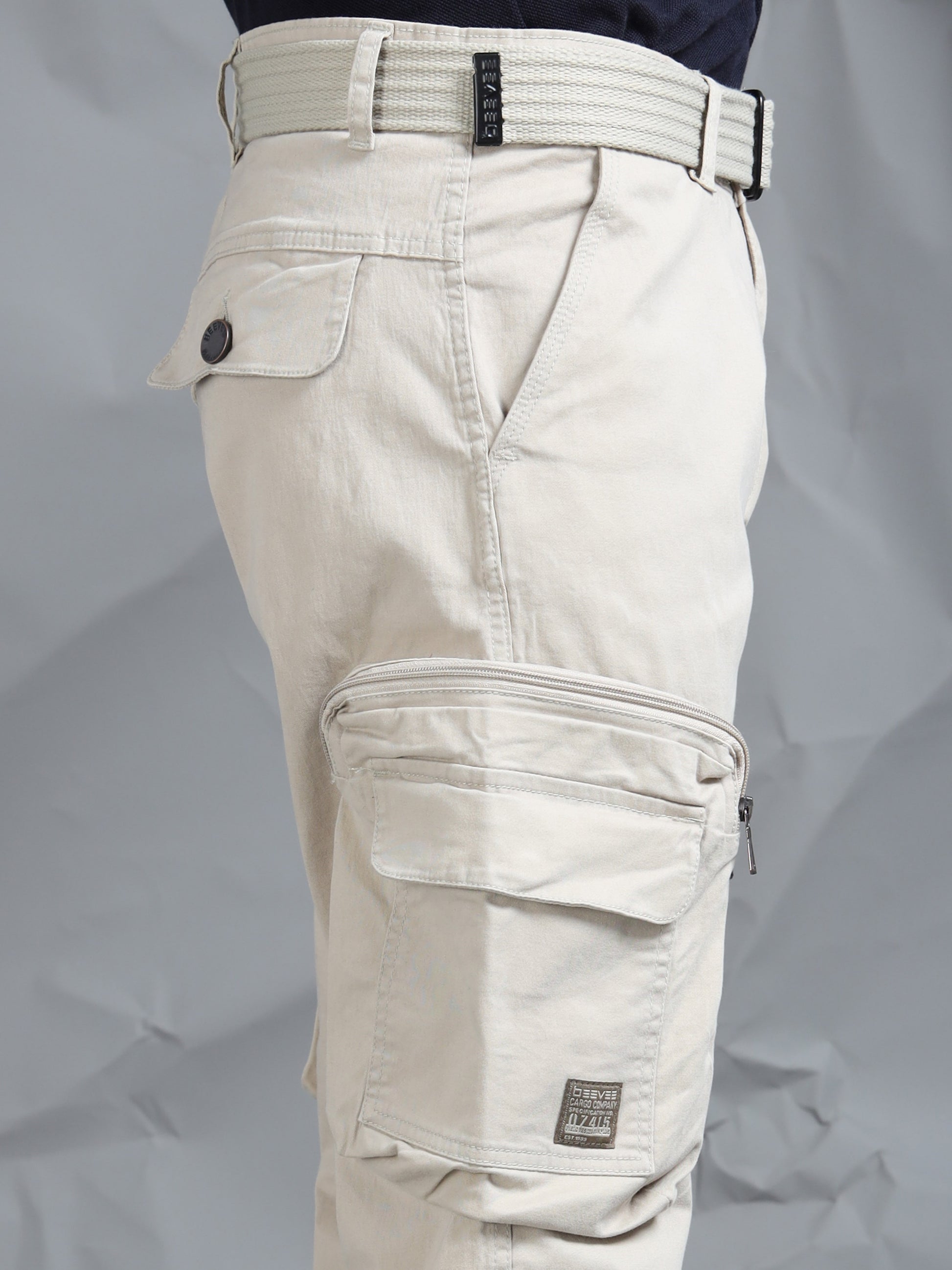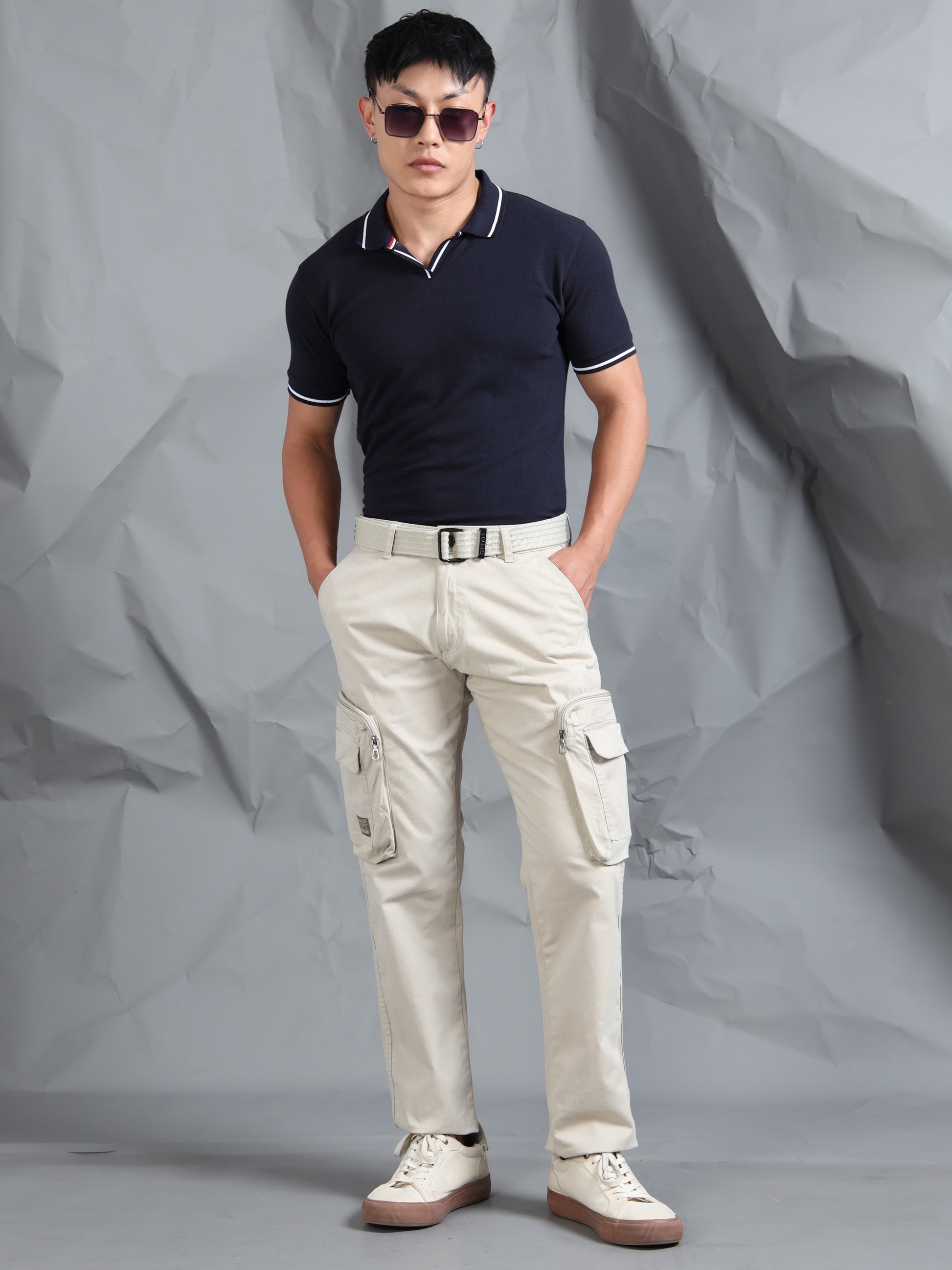 Upgrade your wardrobe with the Beevee Men’s Solid Cotton Lycra Regular Fit Mid Rise Cargo Pant with Belt. Designed for both comfort and functionality, this pant is made from a high-quality cotton lycra blend that ensures breathability and flexibility for daily wear. Featuring 8 spacious cargo pockets, it offers ample storage while maintaining a sleek, stylish look. The pant comes with a matching belt, giving you a secure fit and added style. With its regular fit, mid-rise cut, and solid versatile design, this cargo pant pairs effortlessly with t-shirts, polos, or casual shirts—ideal for travel, outdoor activities, and casual occasions.