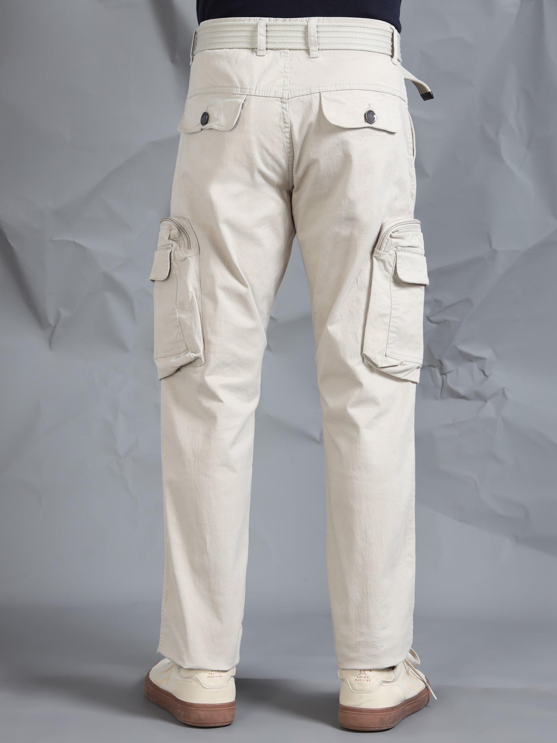 Cotton Lycra Sand Mid Rise Cargo Pant with 8 Pockets