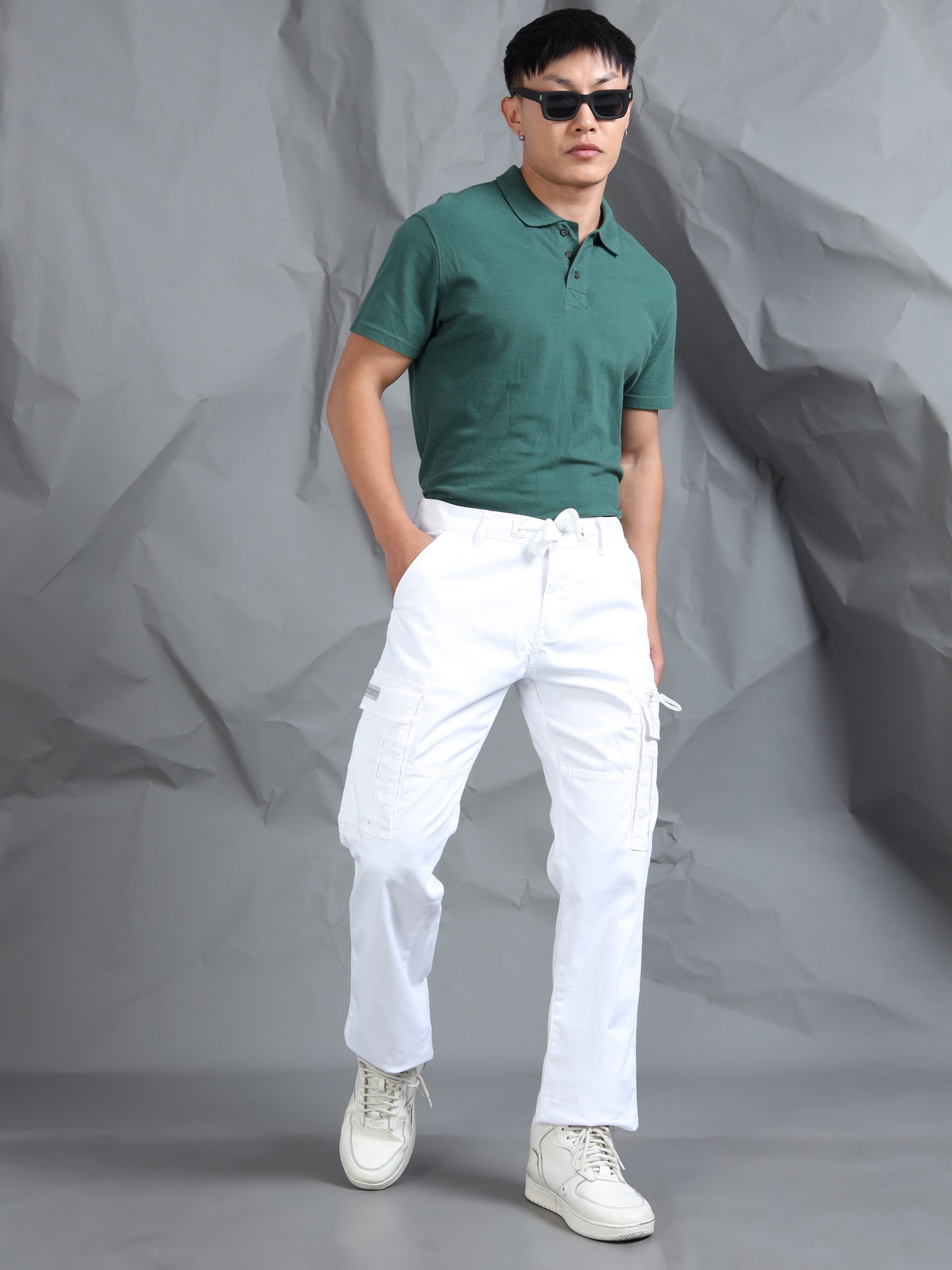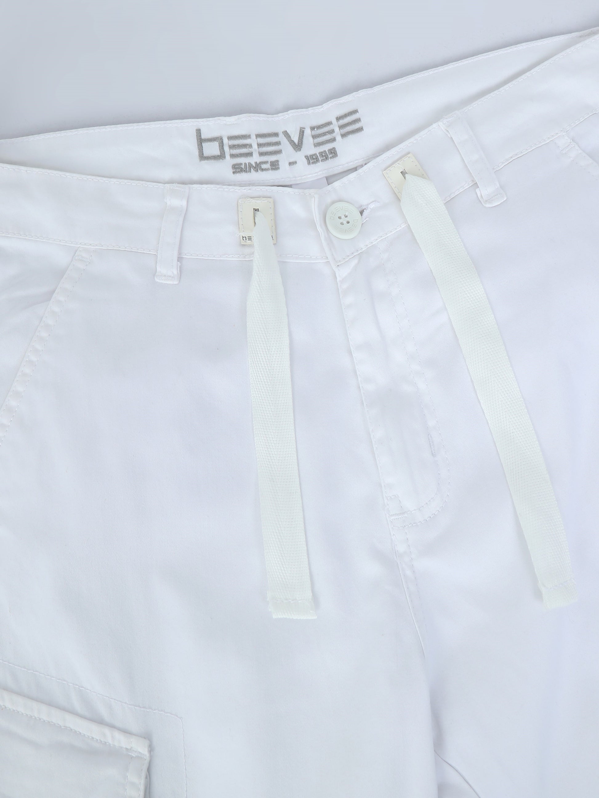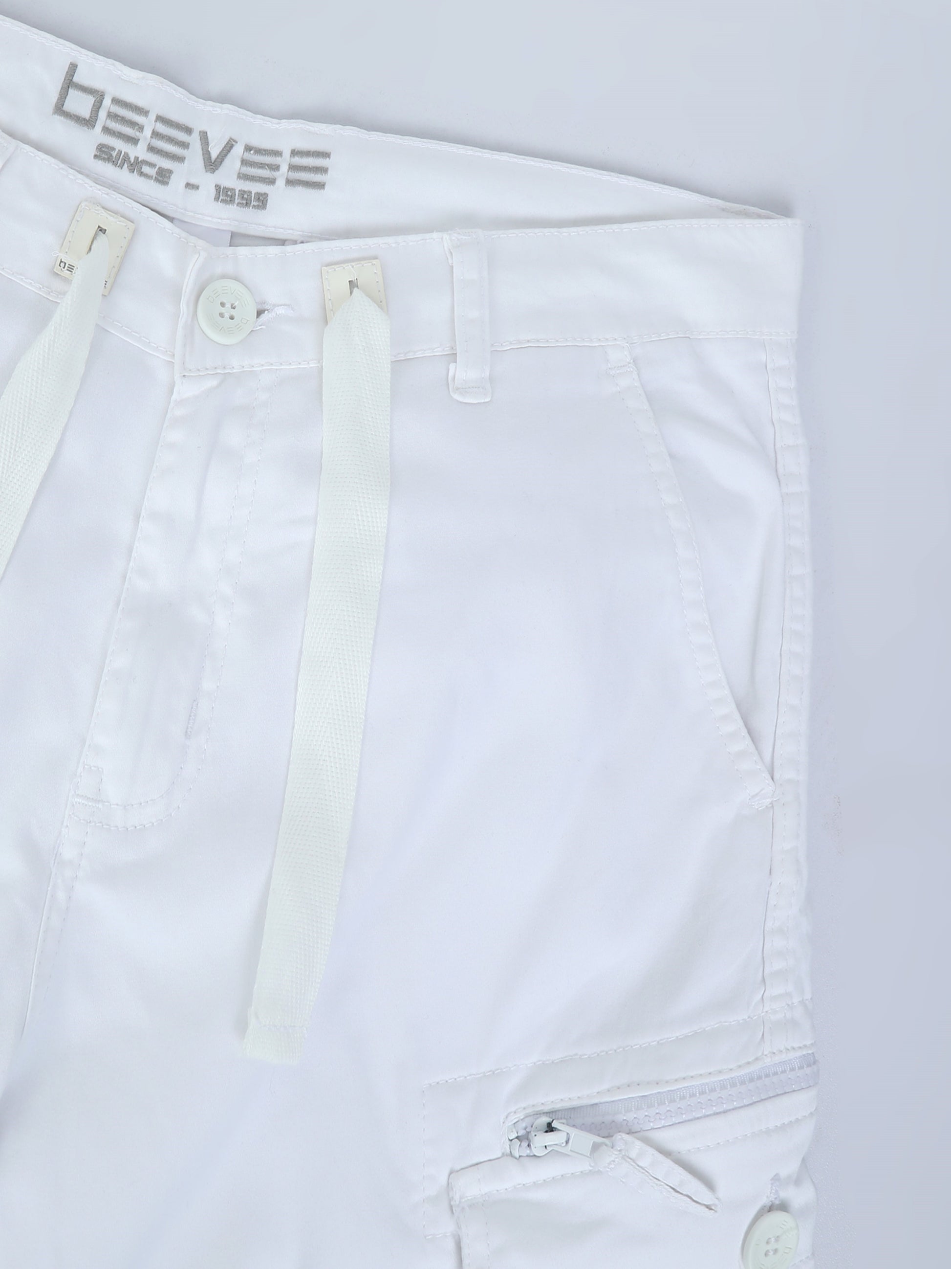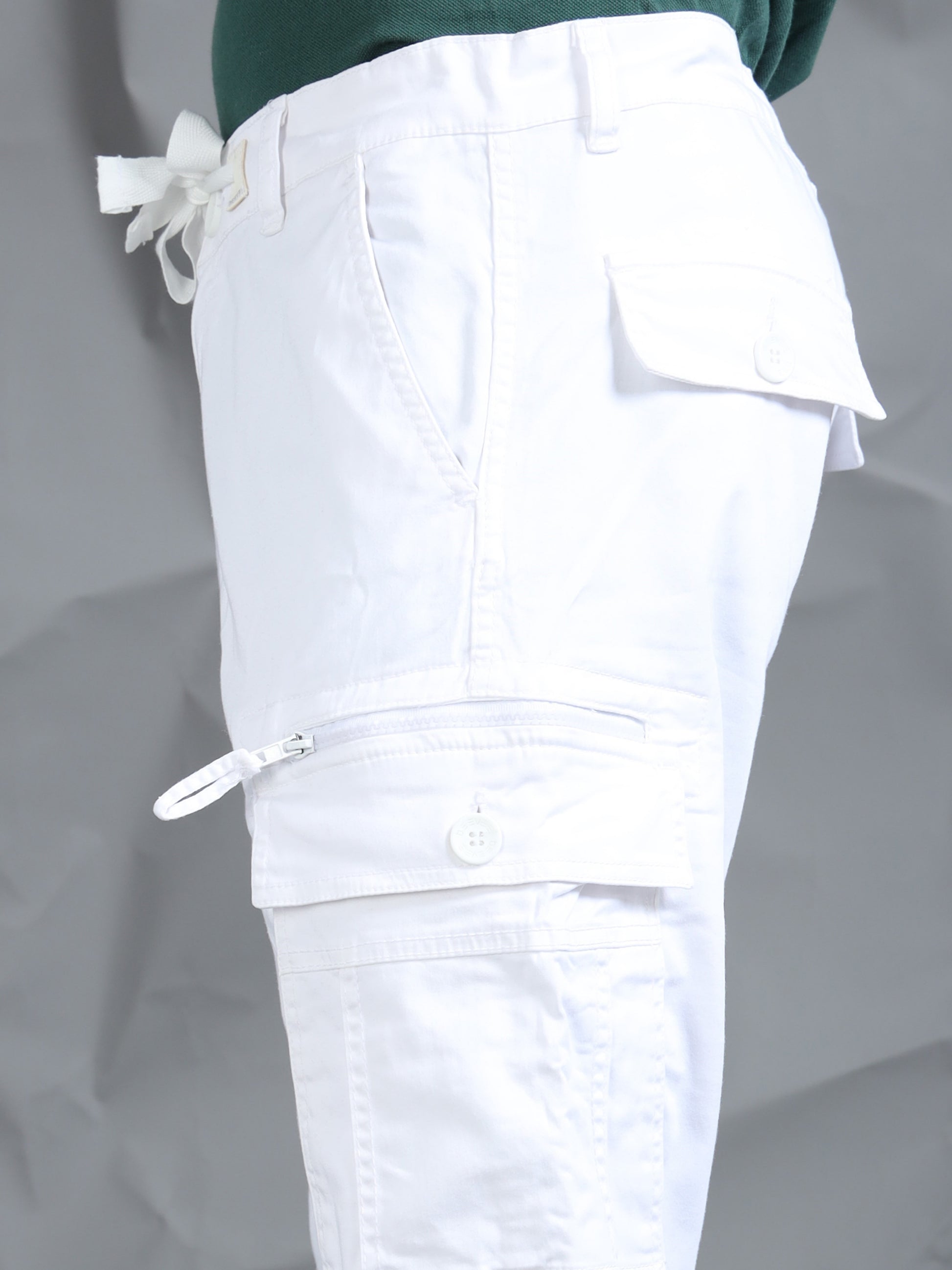 Cotton Lycra White Cargo Pant with 8 Pockets