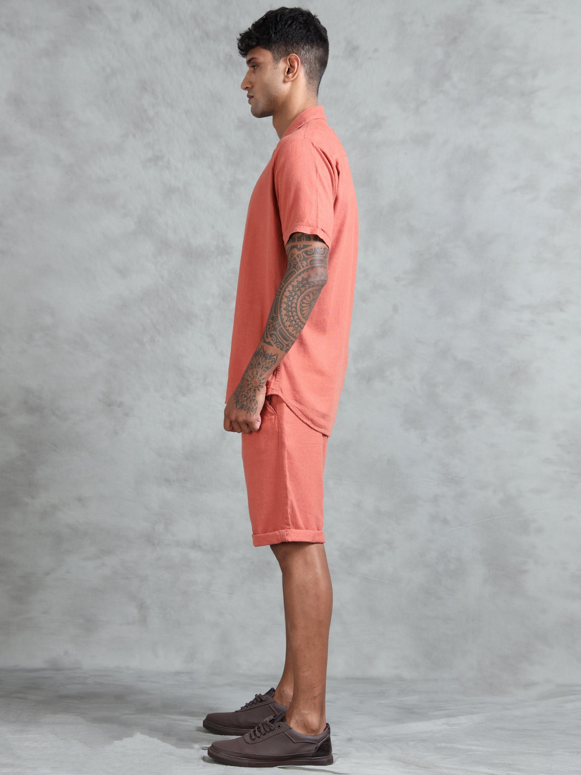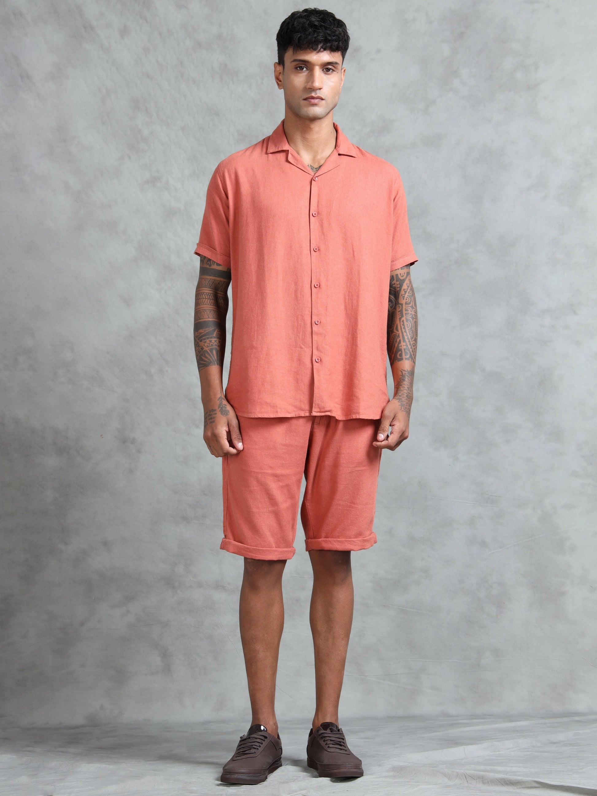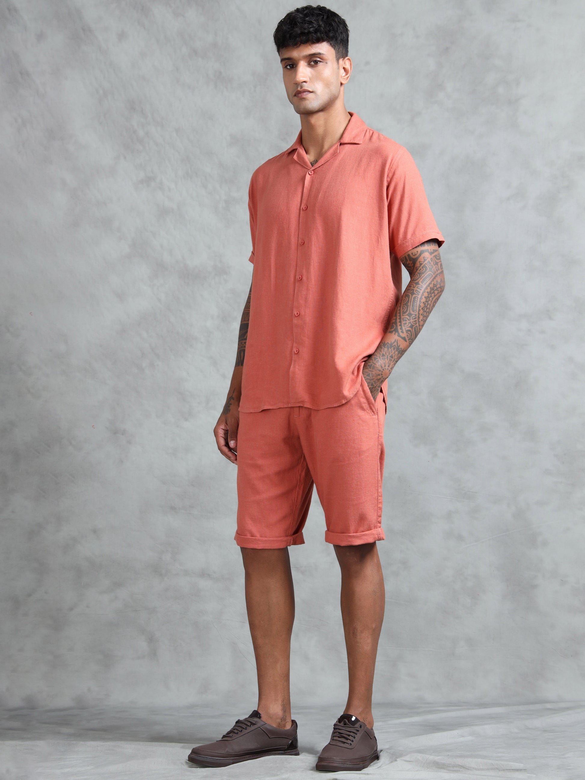 Stay effortlessly stylish with the Beevee Men's Solid Cotton Viscose Linen Blend Cord Set. Crafted from a lightweight cotton viscose linen blend, this set offers a soft touch and breathable comfort, perfect for warm weather. The set includes a collared half sleeve shirt paired with matching shorts in a regular fit for easy movement and relaxed styling. Its solid versatile design allows you to dress it up with accessories or keep it minimal for a laid-back look. Ideal for casual outings, vacations, brunch, or daily wear, this cord set is a must-have addition to every modern woman’s wardrobe.