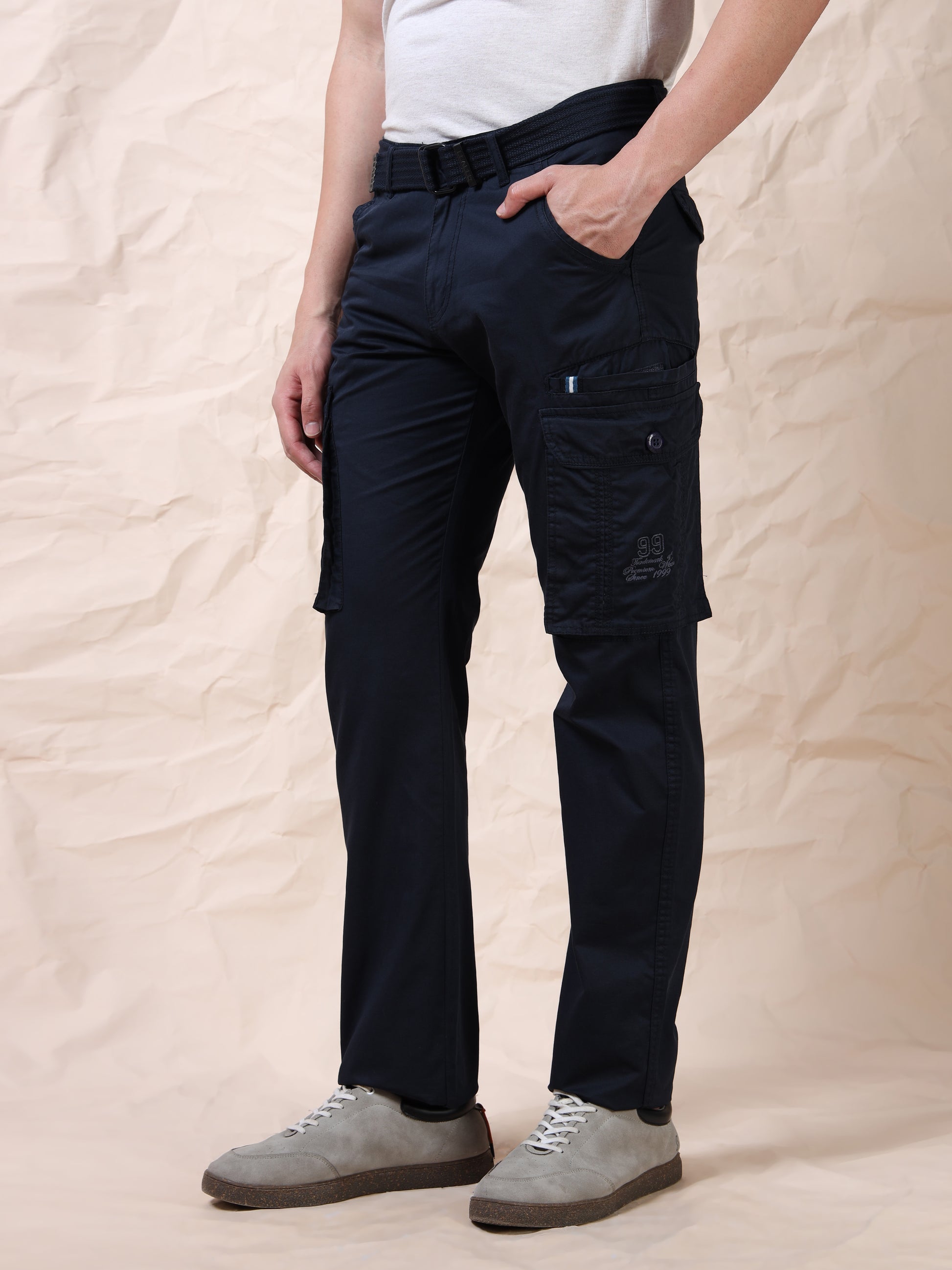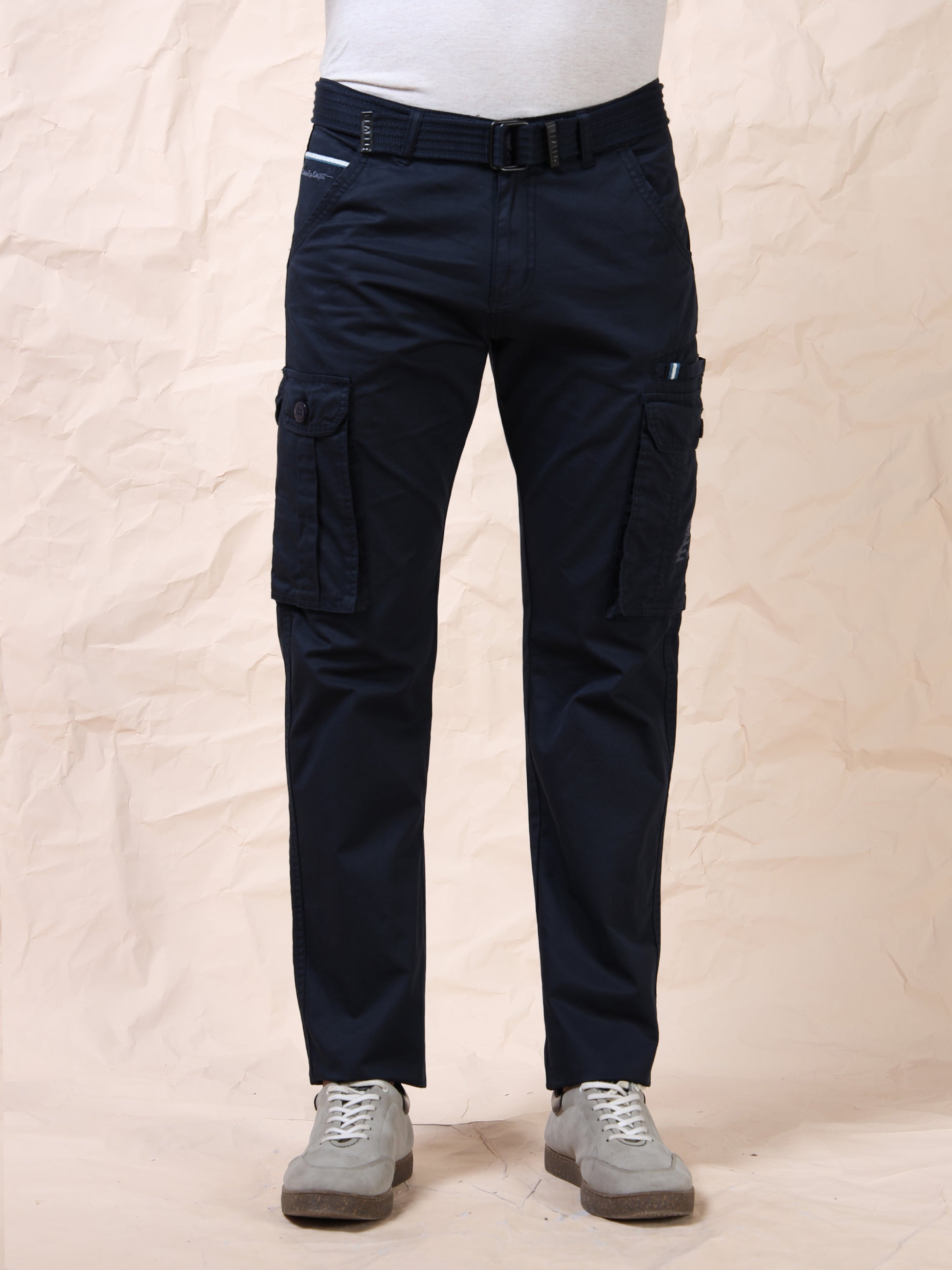 Slim fit cargo pants feature multiple streamlined pockets, offering a sleek look without sacrificing practicality. Spacious side cargo pockets provide ample storage, while additional back and side pockets enhance functionality.